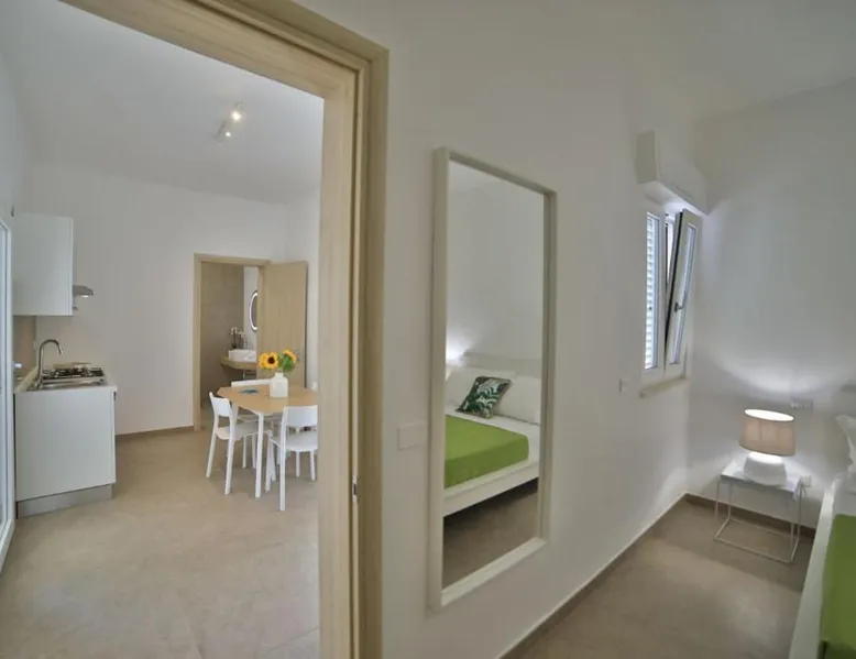 Comfortable Accommodations: GIARO' APARTMENTS in Porto Cesareo offers family rooms with air-conditioning, private bathrooms, and kitchenettes. Each apartment includes a dining area, sofa bed, and free WiFi. Outdoor Spaces: Guests can relax in the garden or on the patio, enjoying garden views and outdoor furniture. The property features an outdoor dining area and a work desk for added convenience. Convenient Facilities: The apartment provides free on-site parking, a washing machine, and a private entrance. Additional amenities include a coffee machine, oven, and stovetop. Prime Location: Located 35 mi from Brindisi Airport, Porto Cesareo Beach is a 3-minute walk away. Nearby attractions include Piazza Mazzini and Sant' Oronzo Square, each 17 mi from the property. Activities and Surroundings: Guests can enjoy scuba diving in the surrounding area. The property is highly rated for room cleanliness, location, and comfort. Boasting a private entrance, this air-conditioned apartment comes with 1 living room, 1 separate bedroom and 1 bathroom with a shower and a bidet. The well-equipped kitchen features a stovetop, a refrigerator, kitchenware and an oven. The apartment has tiled floors, a seating area with a flat-screen TV, a washing machine, a coffee machine as well as garden views. The unit has 2 beds.