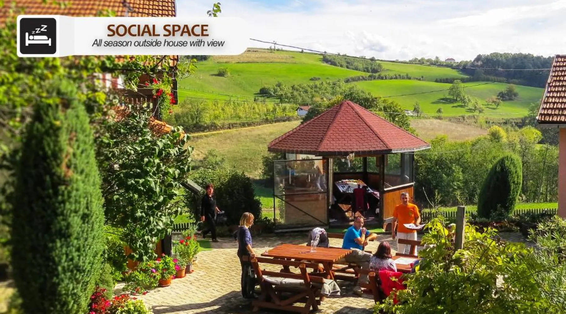 Eco Farm Milanovic in Despotovac: Eco Farm Milanovic offers a country house experience in Despotovac, Serbia. Guests enjoy free WiFi, a garden, terrace, restaurant, and complimentary bicycles. Comfortable Accommodations: The property features family rooms with private bathrooms, balconies, and garden or mountain views. Additional amenities include a lounge, outdoor fireplace, and outdoor dining area. Dining Experience: A continental breakfast is served, with vegetarian and vegan options available. European cuisine is served in the on-site restaurant, complemented by an outdoor seating area. Activities and Location: Guests can participate in walking, bike, hiking, cycling, and horse riding tours. The Morava Airport is 81 mi away, and Aquapark Jagodina is 29 mi from the property. Highly rated for its host and location. The unit offers 9 beds.