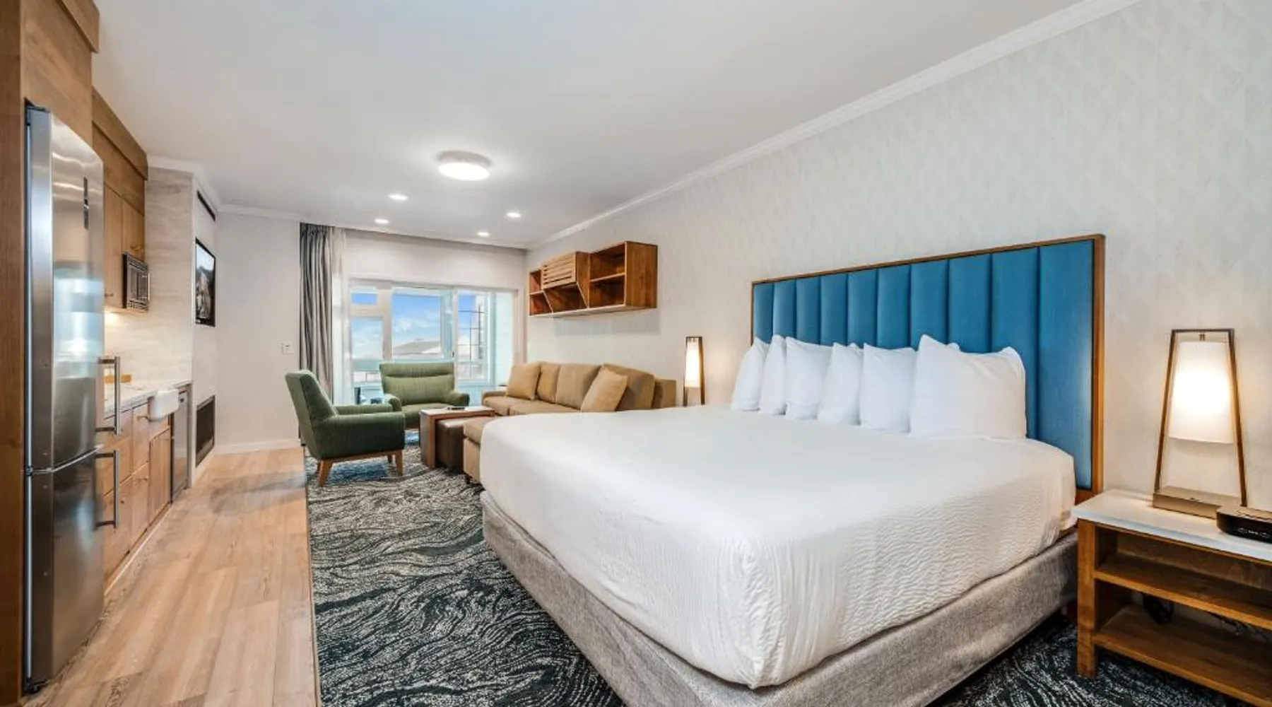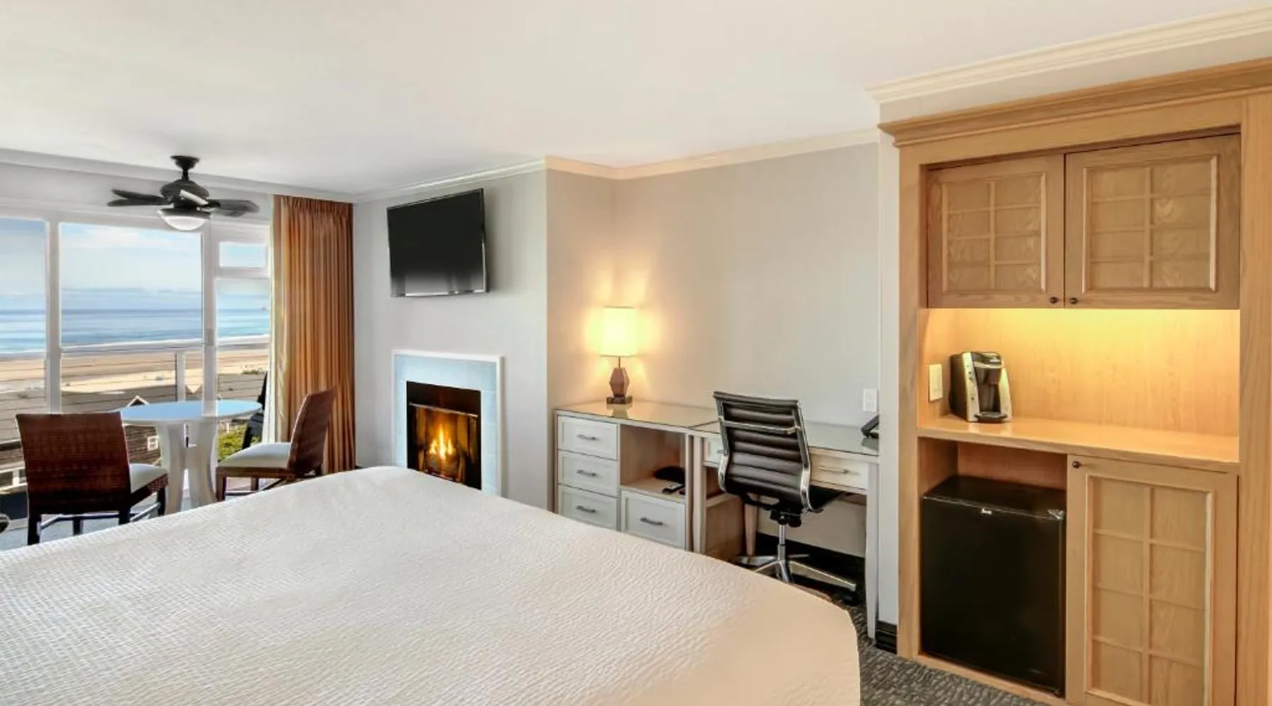 Located directly on the beach with views of Haystack Rock, this Cannon Beach hotel features a spa and wellness center. Many guest rooms include a gas fireplace and free Wi-Fi, and complimentary bicycle rentals are available. All rooms at the Hallmark Resort in Cannon Beach feature a flat-screen cable TV. A microwave, small fridge, and coffee-making facilities are included. Certain rooms include ocean views and a balcony. There are 2 indoor heated saltwater pools, 3 hot tubs and a dry sauna available for guest relaxation at the Cannon Beach Hallmark Resort. A business center and a fitness center are located on site. Guests can enjoy complimentary DVD rentals and free popcorn. Fresh baked cookies are available in the lobby. Therapeutic massage services are available at the on-site day spa Elements by the Sea. Downtown Cannon Beach is less than 10 minutes’ walk from the hotel. Seaside is 15 minutes’ drive away. Tillamook Cheese Factory is 1 hours’ drive from the property. Admire the views while lounging in the suite by your cozy gas fireplace, or from your spectacular walkout balcony facing the ocean. Make dinner in your full galley-style kitchen, then retire to your king bed in the separate bedroom and the innovatively-designed Sico® wall bed in the living area. This 530 square-foot room has every convenience you'll need for a family getaway, including a TV and DVD player in both rooms! Please note: this unit does not allow pets. Rooms are not equipped with A/C units. (4AK)