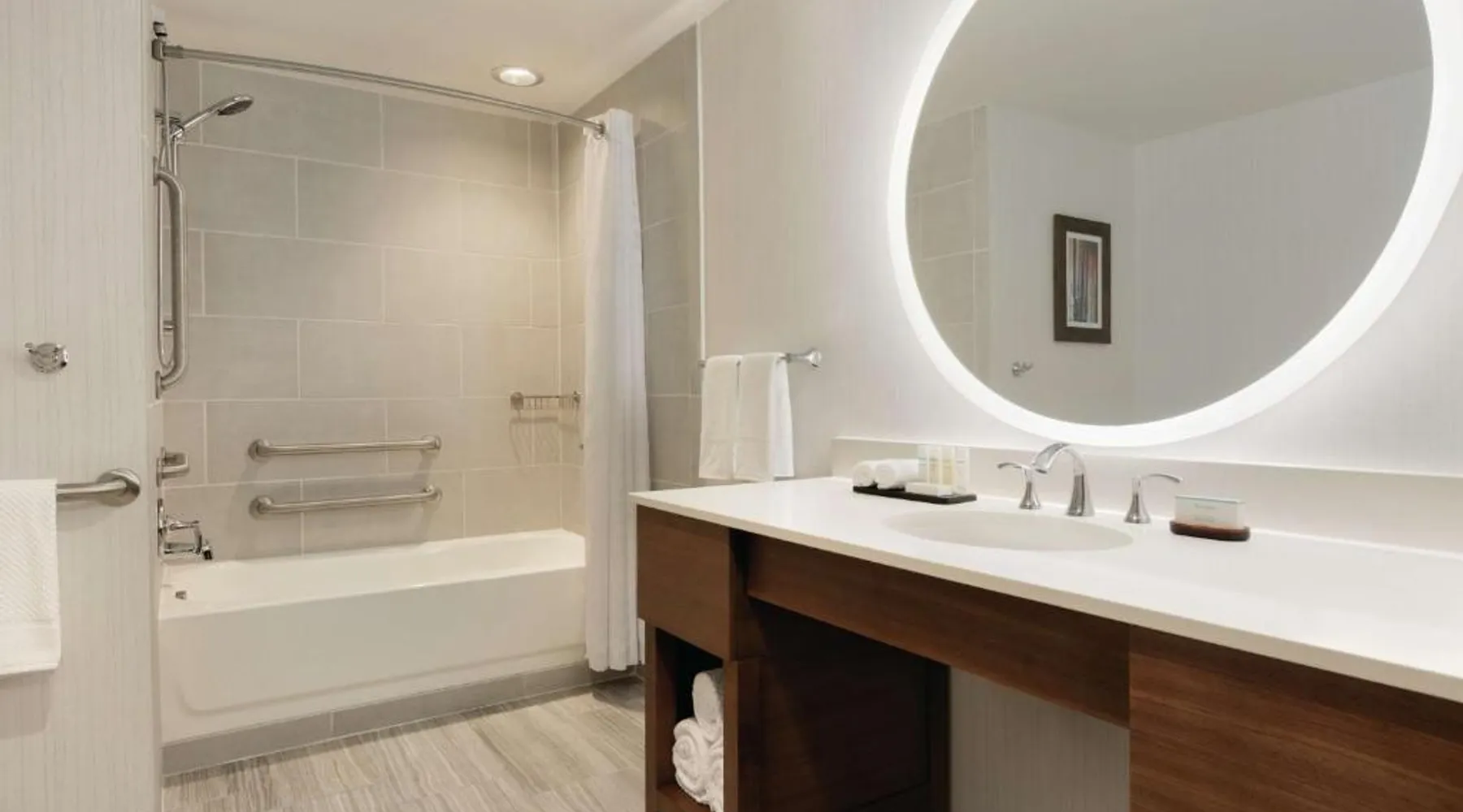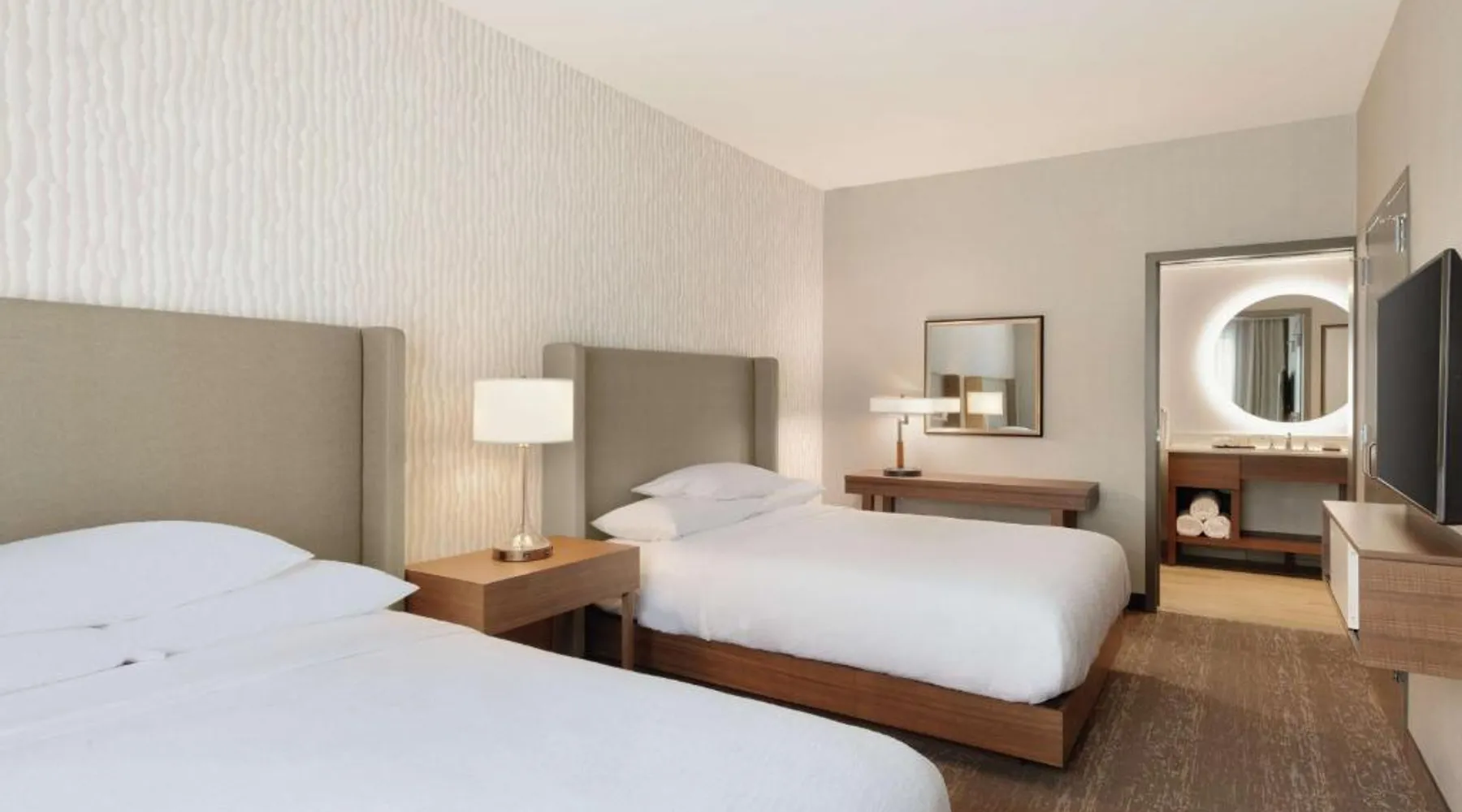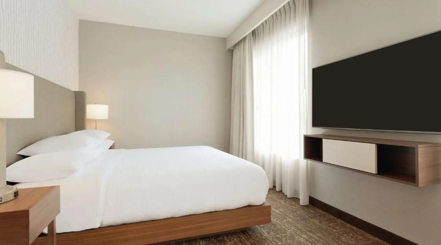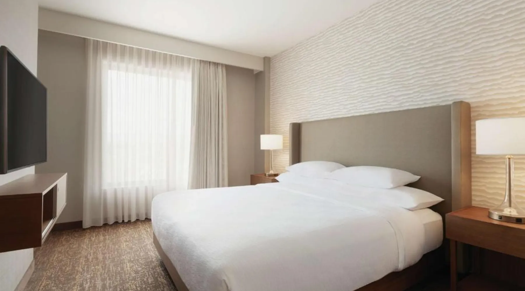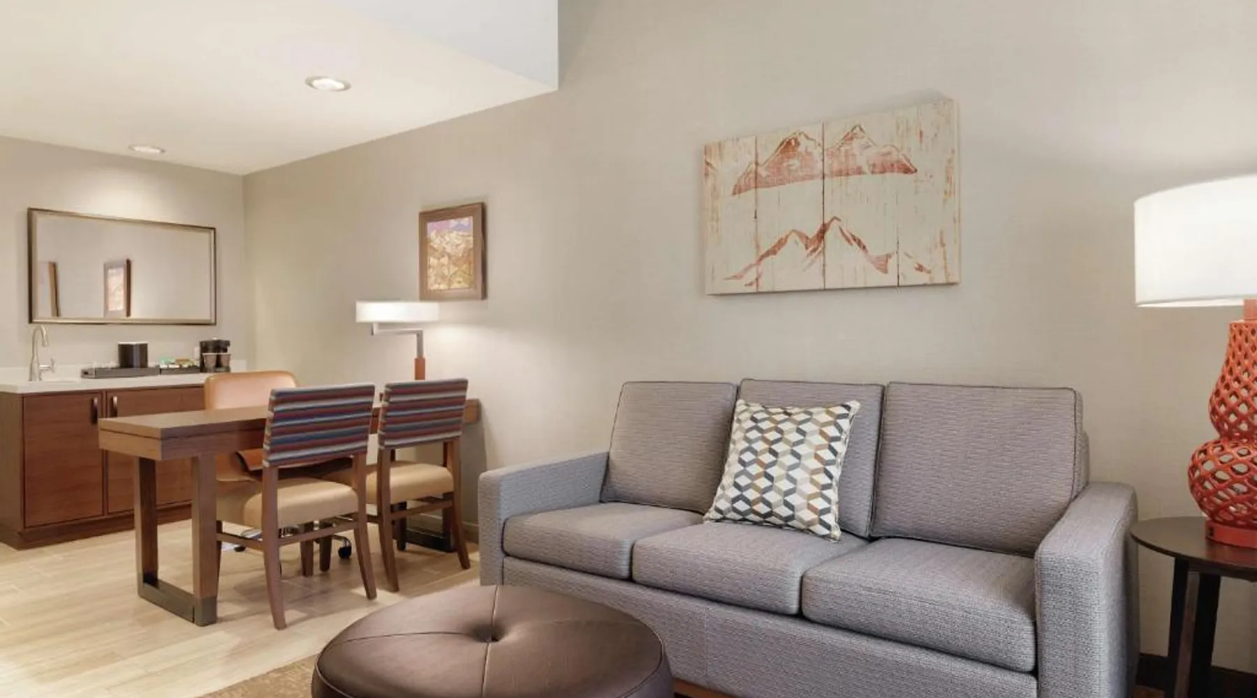 Comfortable Accommodations: Embassy Suites By Hilton South Jordan Salt Lake City in South Jordan offers family rooms with air-conditioning, free WiFi, and modern amenities. Each room includes a sofa bed, work desk, and free toiletries. Dining and Leisure: The hotel features a family-friendly restaurant serving American, pizza, and barbecue grill. Guests can also enjoy a bar, indoor swimming pool, fitness center, and outdoor fireplace. Convenient Location: Located 18 mi from Salt Lake City International Airport, the hotel is near attractions such as Salt Palace and Temple Square. Free on-site private parking is available. Guest Satisfaction: Highly rated for its breakfast, room comfort, and cleanliness, the property ensures a pleasant stay for all visitors. This suite has air conditioning, a seating area and a flat-screen TV with cable channels. The unit has 1 bed.