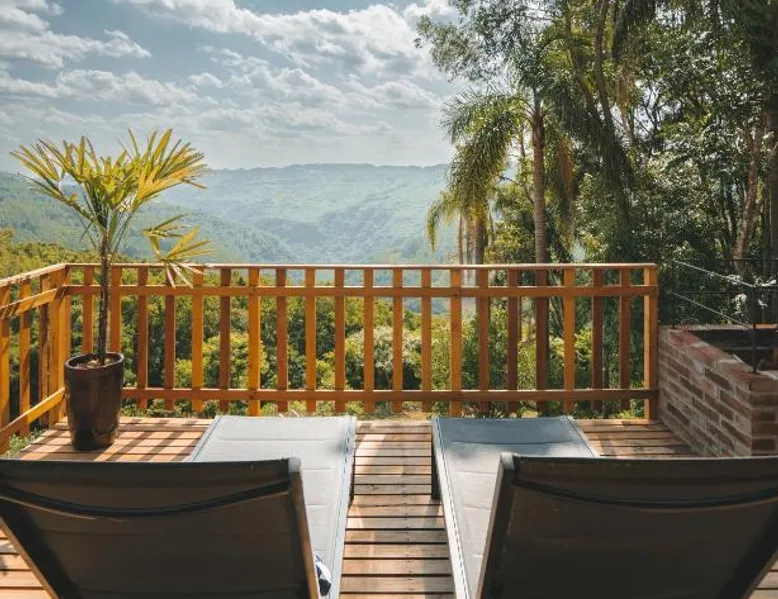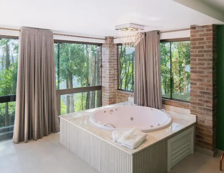 Elegant Accommodations: Vovô Emílio Chalés in Nova Petrópolis offers a lodge with a garden and free WiFi. Guests enjoy an outdoor fireplace, coffee shop, and barbecue facilities. Comfortable Amenities: The property features air-conditioning, private bathrooms, bathrobes, and a terrace. Additional amenities include a pool with a view, kitchenette, balcony, and spa bath. Delicious Breakfast: A breakfast buffet with American options is served in-room, including juice, cheese, and fruits. Convenient Location: Located 24 mi from Hugo Cantergiani Regional Airport, the lodge is near attractions such as Imigrant Valley Park (4.3 mi) and Malakoff Mount (11 mi). Guests appreciate the scenic views and proximity to nature. The fireplace is the standout feature of this chalet. This air-conditioned chalet comes with 1 living room, 1 separate bedroom and 1 bathroom with a bath. Guests will find a stovetop, a refrigerator, kitchenware and an oven in the well-equipped kitchen. The chalet also includes a barbecue. This chalet has a mini-bar, flat-screen TV, garden views, as well as wine/champagne for guests. The unit has 1 bed.