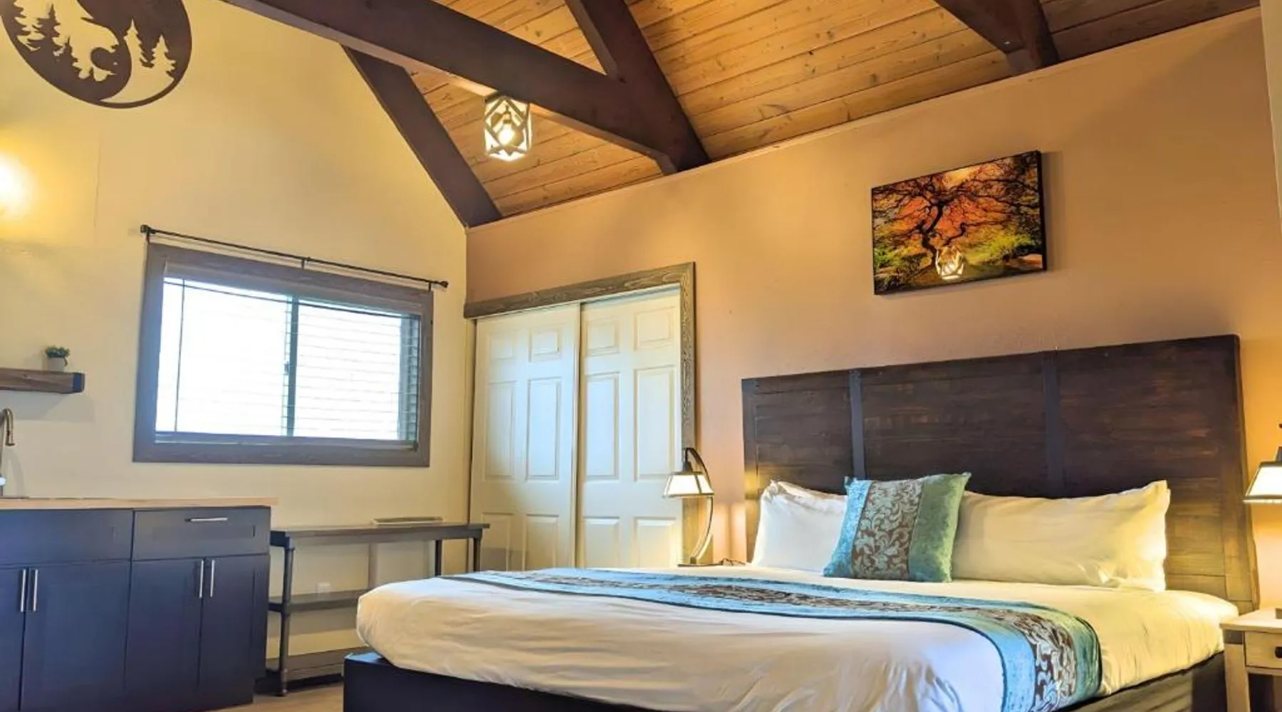 Comfortable Accommodations: Wanderlust Inn in Ocean Shores offers private check-in and check-out services, ensuring a seamless arrival and departure experience. Guests enjoy free WiFi throughout the property, enhancing their stay with connectivity. Modern Amenities: Each room features a private bathroom with free toiletries, a tea and coffee maker, hairdryer, and a refrigerator. Additional amenities include a balcony, washing machine, patio, kitchen, fireplace, and city views. Prime Location: Located a 4-minute walk from Chance A La Mer State Park and 1.4 mi from Ocean Shores Beach, the inn provides easy access to local attractions. Nearby points of interest include Fusions Gallery (0.7 mi) and Gallery Of Ocean Shores (14-minute walk). Guest Satisfaction: Highly rated for room cleanliness, convenient location, and beach access, Wanderlust Inn ensures a comfortable and enjoyable stay for all visitors. This spacious suite consists of 1 living room, 1 separate bedroom and 1 bathroom with a bath and free toiletries. The suite provides a private entrance, a tea and coffee maker, a dining area, a wardrobe and a flat-screen TV with cable channels. The unit offers 3 beds.