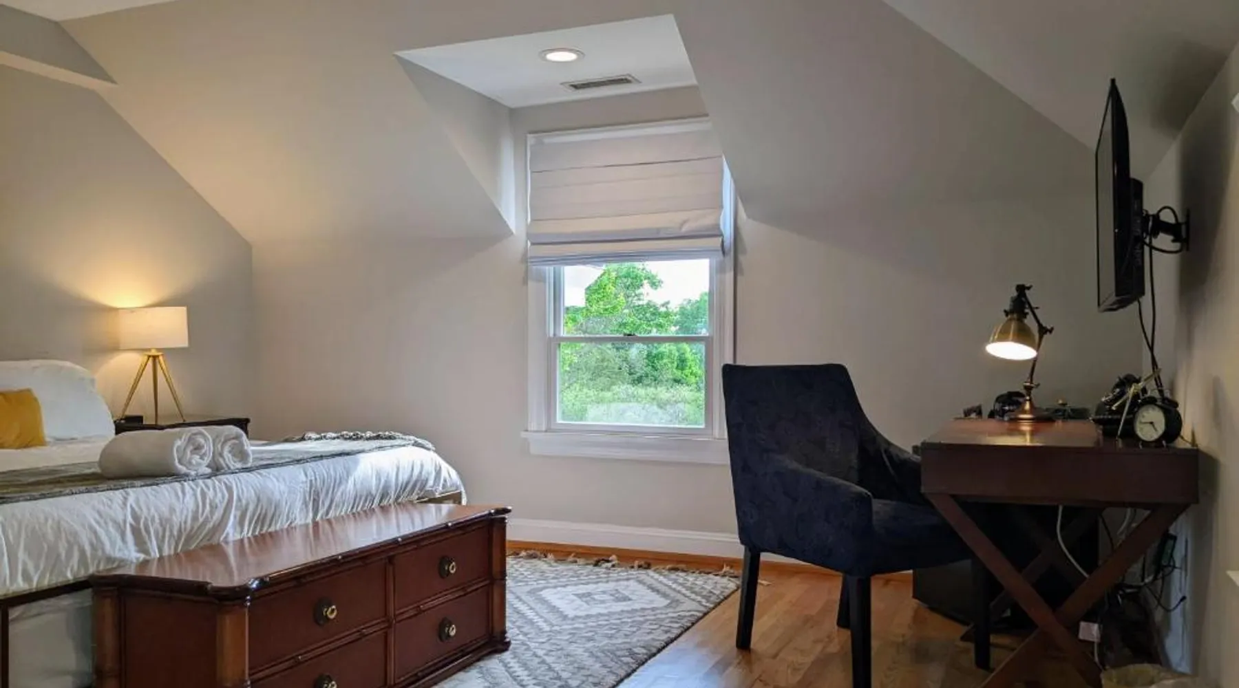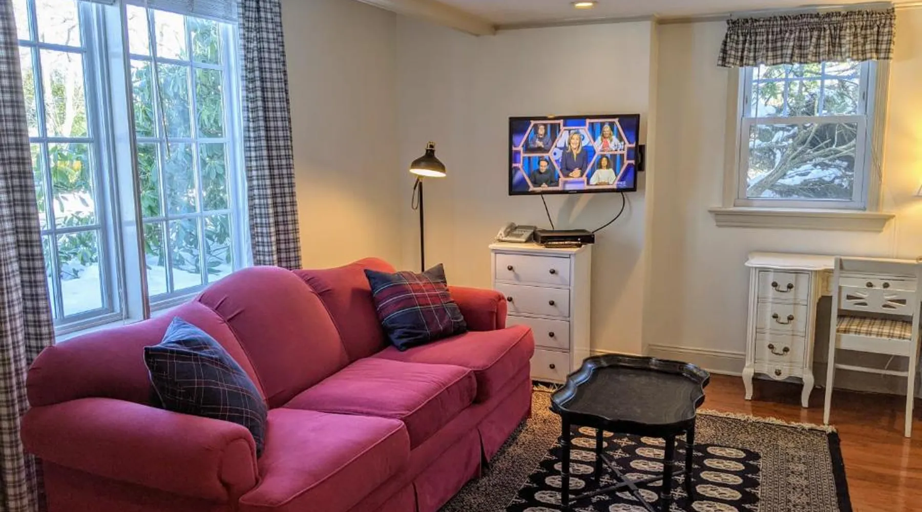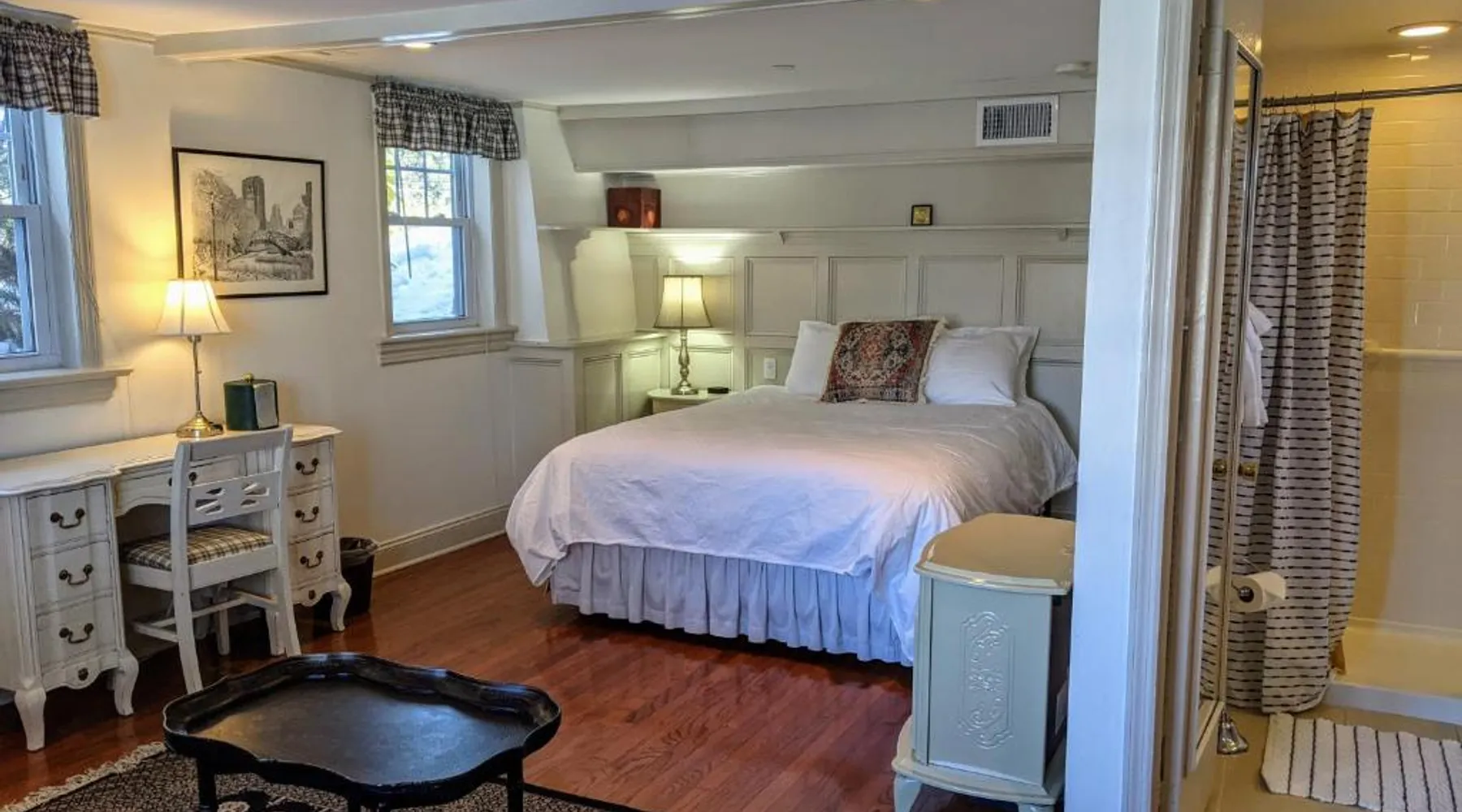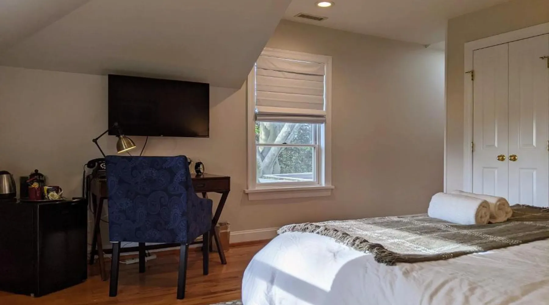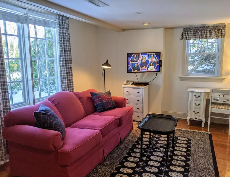 Historic Charm: Stanton House Inn in Greenwich offers a 3-star inn experience within a historic building. Guests enjoy a sun terrace, garden, and a seasonal outdoor swimming pool. Free WiFi is available throughout the property. Comfortable Accommodations: Rooms feature air-conditioning, private bathrooms, and modern amenities such as flat-screen TVs and work desks. Additional facilities include a lounge, concierge service, and free on-site private parking. Delicious Breakfast: A variety of breakfast options are available, including continental, buffet, and à la carte. Guests can savor warm dishes, fresh pastries, fruits, and juices each morning. Prime Location: Located 6.2 mi from Westchester County Airport and near attractions like the Bronx Zoo (21 mi) and Yankee Stadium (24 mi). Highly rated by guests for its excellent service and comfortable accommodations. This double room has a flat-screen TV and air conditioning. Please note, this room is only accessible by stairs.