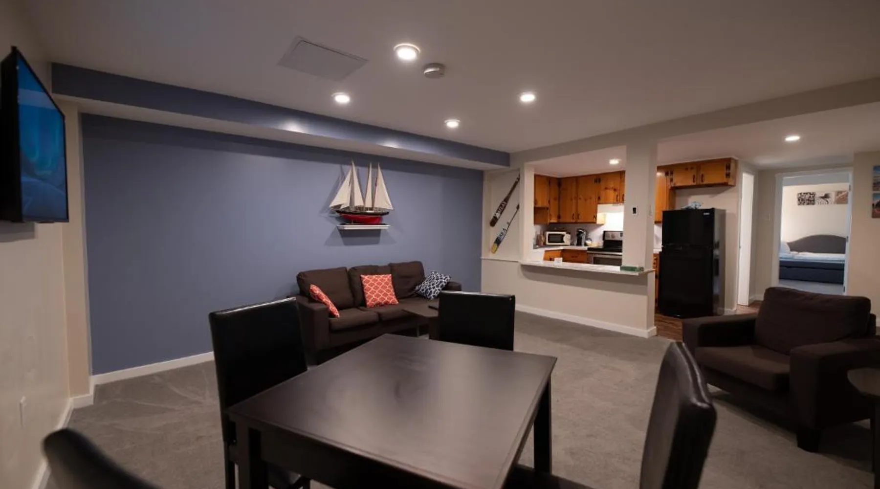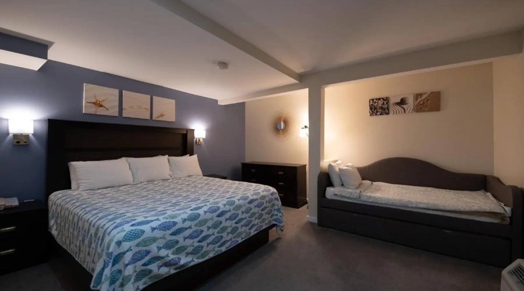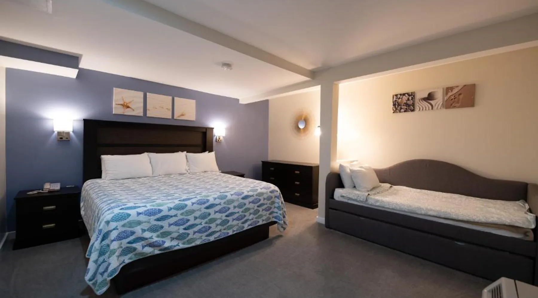Perched above the shores of Clam Cove and the Atlantic Ocean, this Rockport motel features guest rooms with views of the surrounding sea. A seasonal outdoor pool is featured on site. Free WiFi and a cable TV are offered in each room at Ledges By the Bay. A small refrigerator is also provided in every guest room. Guests can relax and lounge on the motel’s lawn overlooking the cove. Rockport city center and the Rockport Golf Course are within 3 miles of this motel. Samoset Golf course and Rockland city center are less than 5 minutes’ drive away. This family room features a pool with a view and a fireplace. Featuring free toiletries, this family room includes a private bathroom with a bath, a shower and a hairdryer. Guests can make meals in the kitchen that has a stovetop, a refrigerator, kitchenware and an oven. The spacious air-conditioned family room features a flat-screen TV with cable channels, a private entrance, soundproof walls, a tea and coffee maker as well as sea views. The unit has 2 beds.
