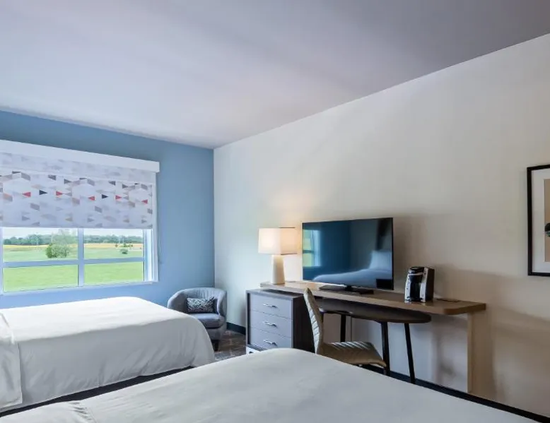 Comfortable Accommodations: Holiday Inn - Clarksville Northeast by IHG in Clarksville offers air-conditioned rooms with private bathrooms, tea and coffee makers, and free WiFi. Each room includes a work desk, TV, and wardrobe. Leisure Facilities: Guests can enjoy a saltwater swimming pool, indoor pool, fitness center, sun terrace, and outdoor fireplace. The property also features a restaurant, bar, and outdoor seating area. Dining Options: The family-friendly restaurant serves American cuisine with vegetarian options. Breakfast includes fresh pastries and fruits, while dinner is available for all guests. Convenient Location: Located 50 mi from Nashville International Airport, the hotel is near attractions such as Dunbar Cave (5.6 mi) and Customs House Museum (7.5 mi). Guests appreciate the room cleanliness, attentive staff, and convenient location. Featuring free toiletries, this double room includes a private bathroom with a shower and a hairdryer. The air-conditioned double room features a flat-screen TV with satellite channels, a tea and coffee maker, a seating area and a wardrobe. The unit has 2 beds.