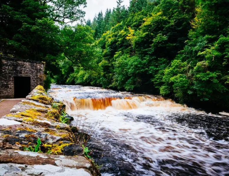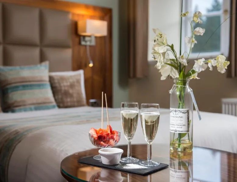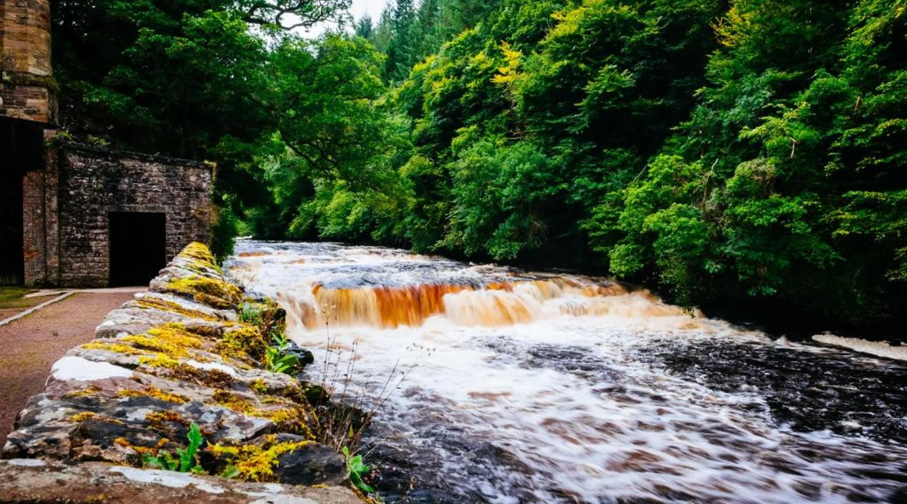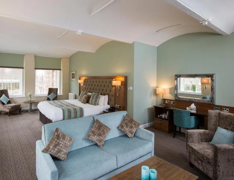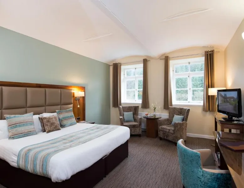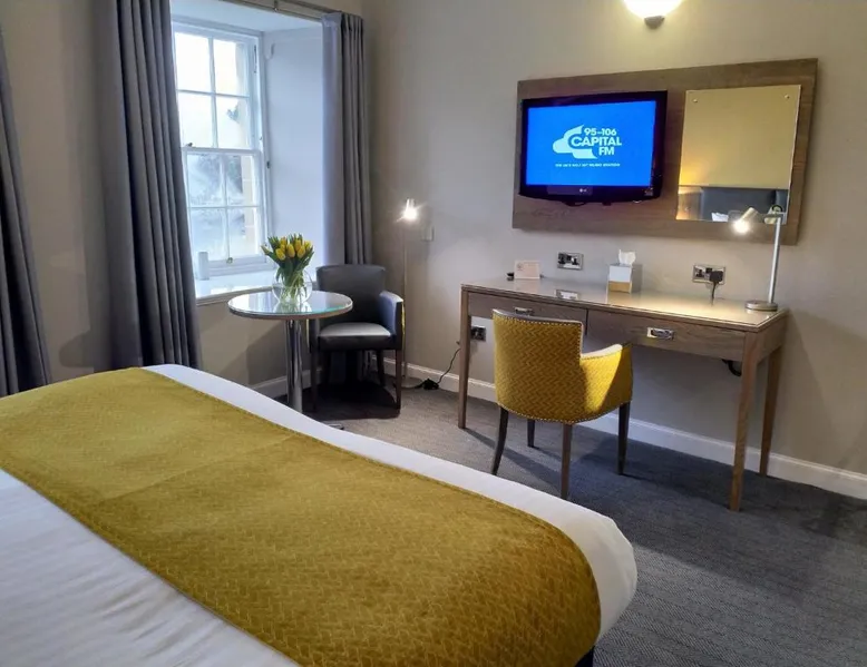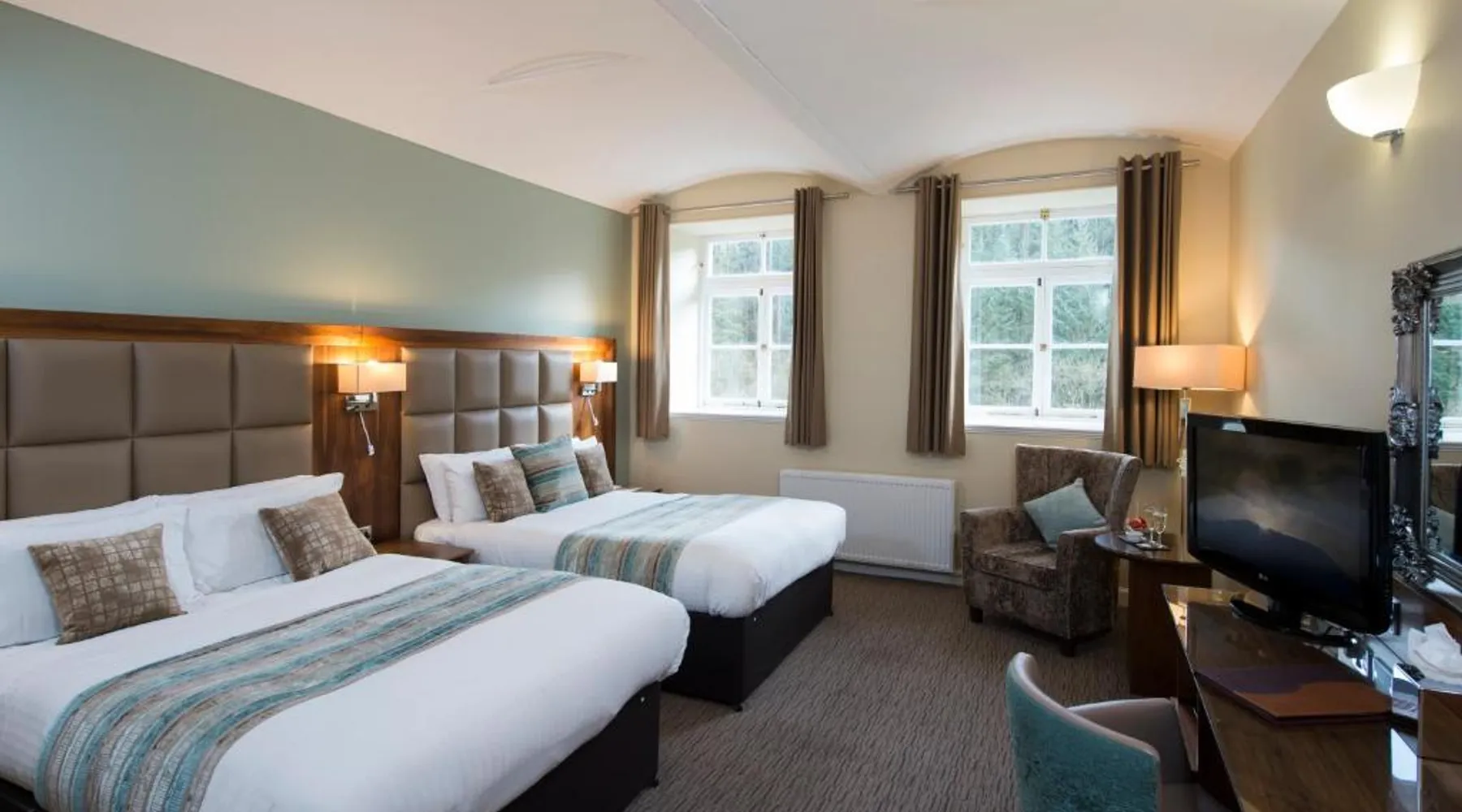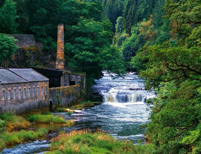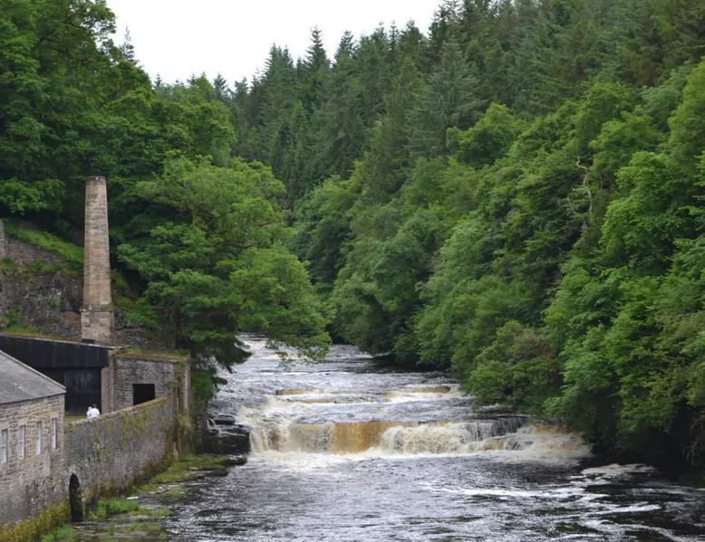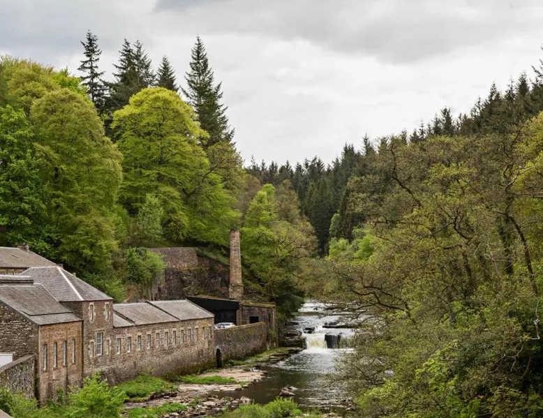 The New Lanark Mill Hotel is part of UNESCO World Heritage Site. The hotel has spacious rooms with attached bathroom, a restaurant, bar and swimming pool. New Lanark is a small 18th century village, designed as a model industrial center. Today, the mill buildings, school and workers’ homes have been converted into shops, museums and the New Lanark Mill Hotel. The rooms and the rooftop garden both offer stunning views of the river and the surrounding Conservation Area. The restaurant overlooks the River Clyde and offers traditional Scottish dishes from a cooked breakfast to afternoon tea. As well as the 52 foot swimming pool, there is a modern gym, sauna and steam room. The hotel has received awards for its environmental policies and disabled access. The village is an hour’s drive from Glasgow or Edinburgh and the Mill Hotel is just 1.4 miles from Lanark Railway Station. This bright room comes with an en suite, TV and desk.