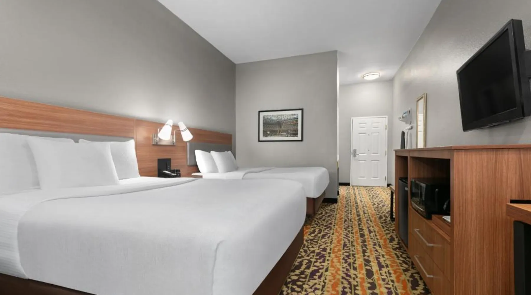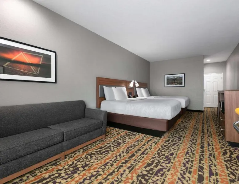 Comfortable Accommodations: La Quinta by Wyndham Belton - Temple South in Belton offers air-conditioned rooms with private bathrooms, baths, hairdryers, coffee machines, sofa beds, refrigerators, work desks, microwaves, and TVs. Exceptional Facilities: Guests enjoy a saltwater swimming pool, fitness center, and free WiFi. Additional amenities include a hot tub, elevator, 24-hour front desk, daily housekeeping service, and free on-site parking. Convenient Location: Located 25 mi from Killeen-Fort Hood Regional Airport and near attractions such as Griffith Fine Art and Thomas Kinkade Stagecoach Gallery (7.5 mi), Miller Park (12 mi), and Killeen Mall (17 mi). Guest Satisfaction: Highly rated for its attentive staff, room cleanliness, and breakfast provided by the property. The suite includes a private bathroom fitted with a bath.