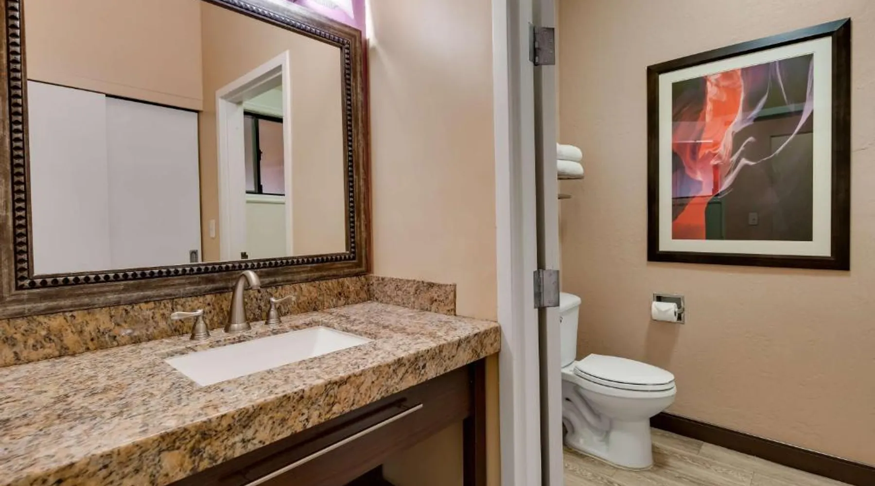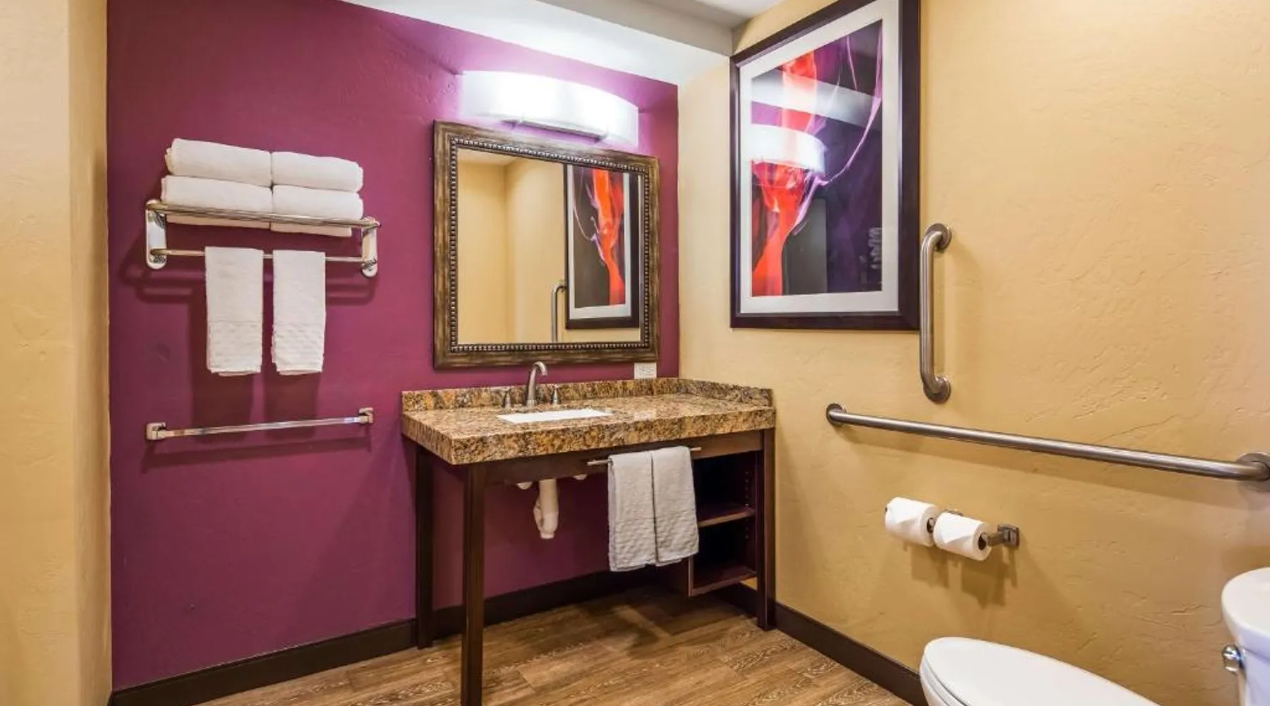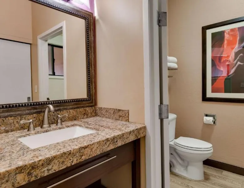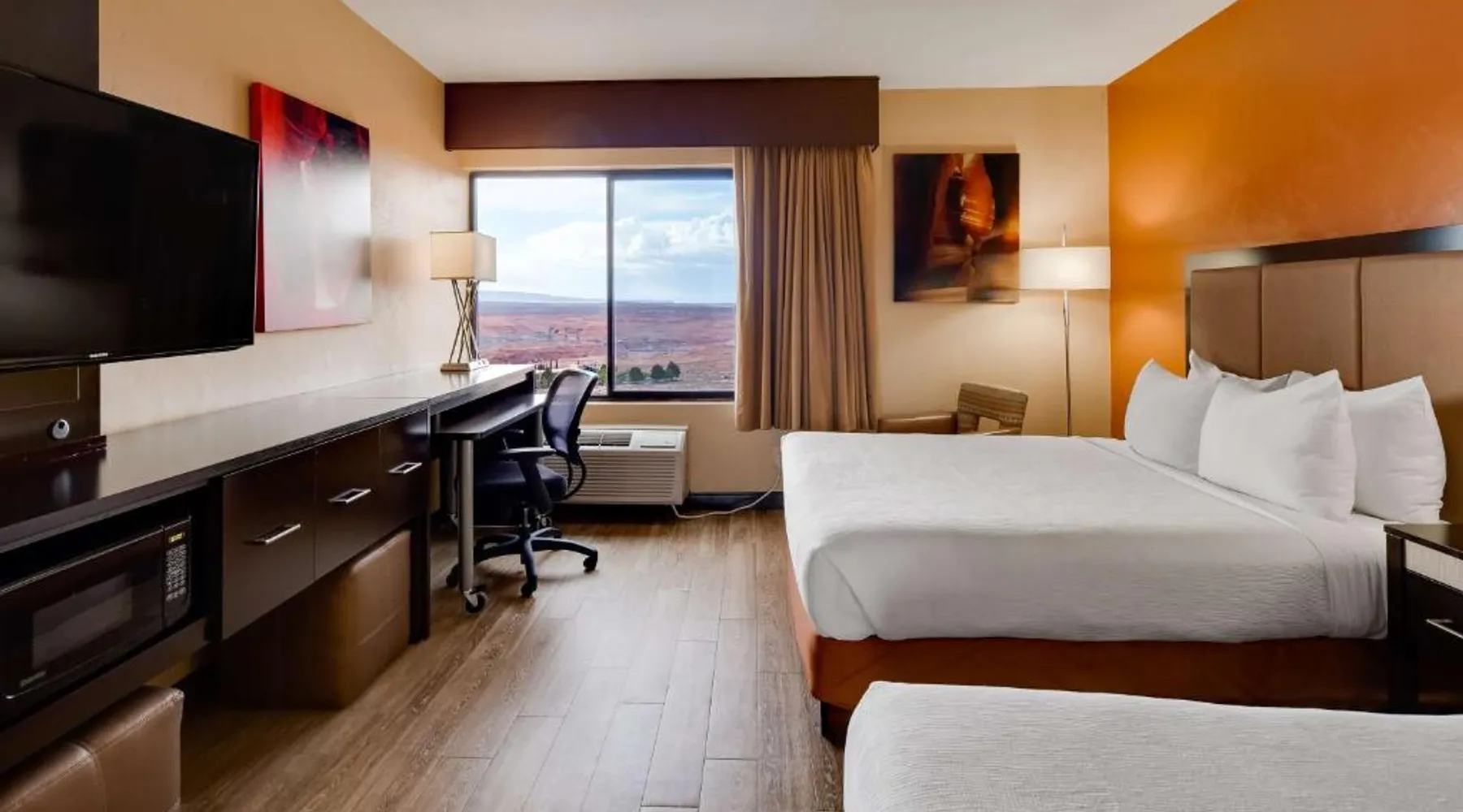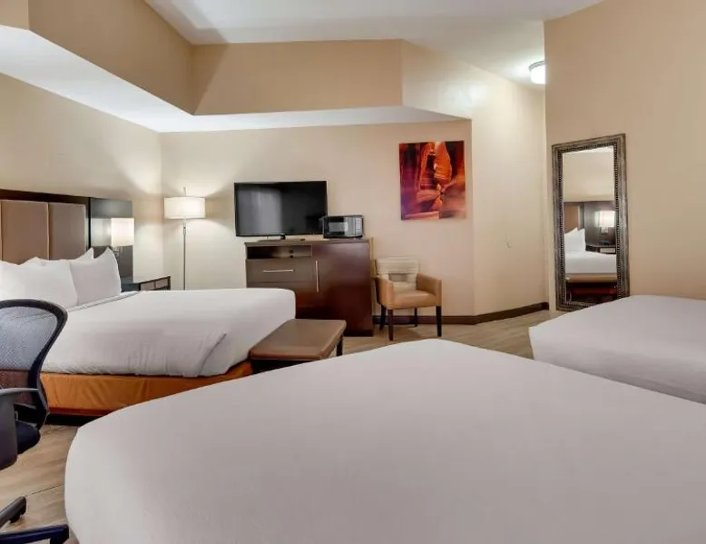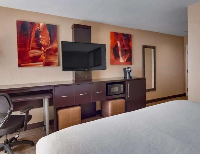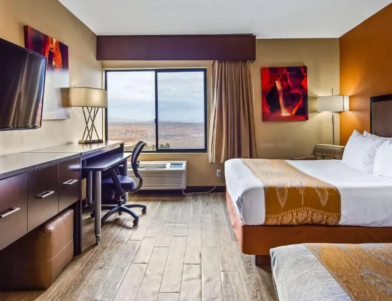 Surrounded by views of the Glen Canyon Rim, Best Western View of Lake Powell Hotel serves a free hot breakfast buffet daily. Lake Powell Marina is 15 minutes' drive from the hotel. There is a seasonal outdoor pool and a hot tub available. Free WiFi and 46-inch flat-screen cable TV are featured in all of the spacious guest rooms at Best Western View of Lake Powell Hotel. For convenience, each air conditioned room includes tea and coffee-making facilities. A 24-hour reception is offered at Best Western View of Lake Powell. Fax and photocopying services are available. The concierge desk provides assistance with private guides to local attractions. Within 10 minutes’ drive of this hotel guests will find Antelope Marina and Upper and Lower Antelope Canyon. Horseshoe Bend is 10 minutes' drive from the hotel. Featuring free toiletries, this quadruple room includes a private bathroom with a shower and a hairdryer. The quadruple room has parquet floors, a seating area with a flat-screen TV with streaming services, air conditioning, a tea and coffee maker, as well as a wardrobe. The unit has 2 beds.