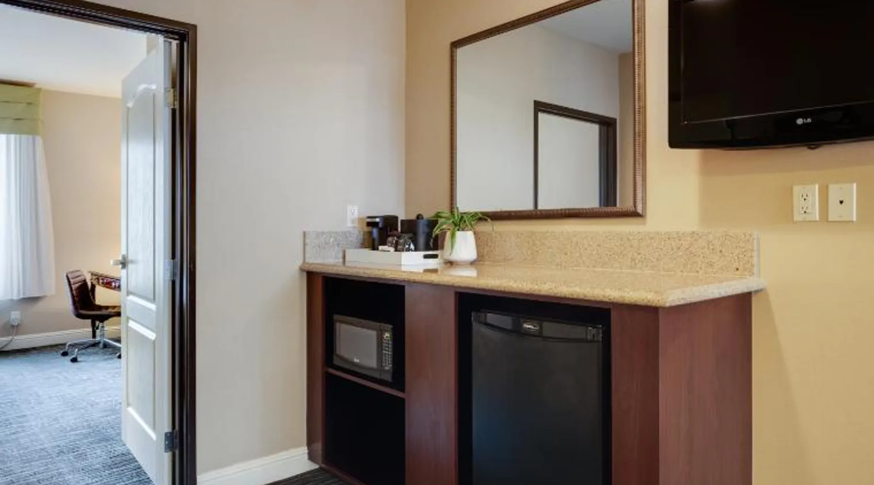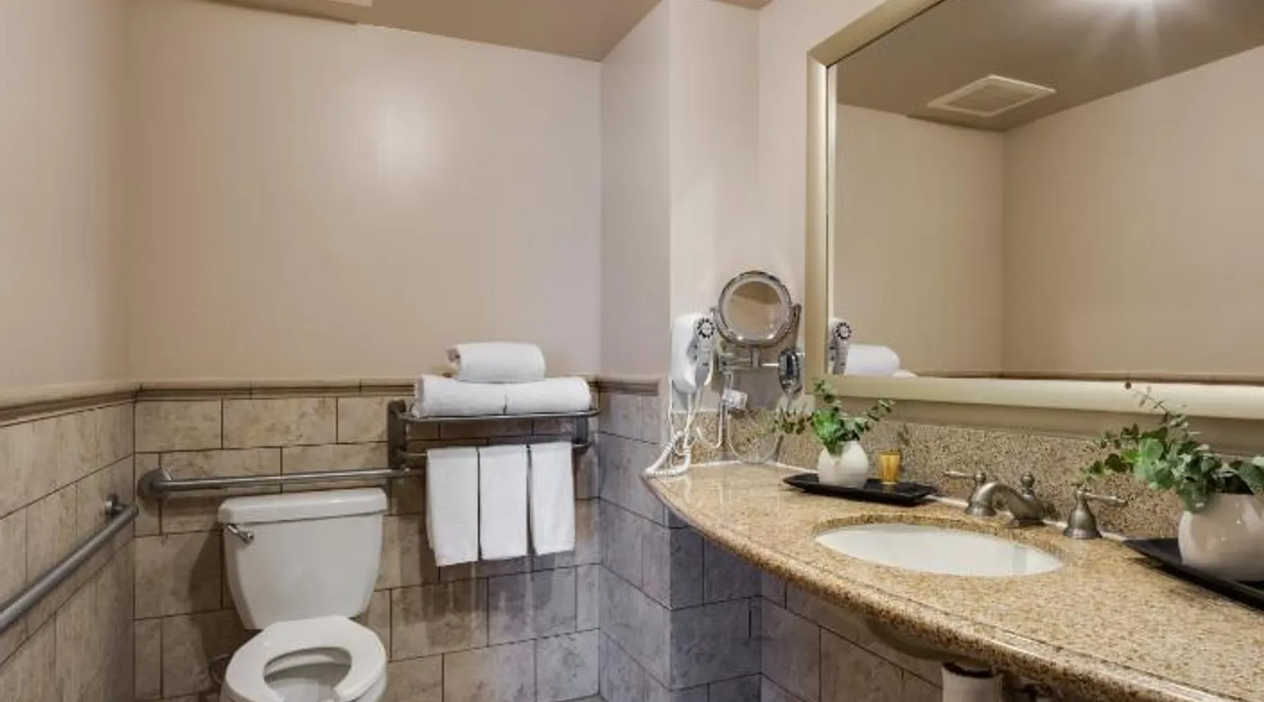 Offering an outdoor pool and a full-service spa, Ayres Hotel & Spa Mission Viejo is a boutique-style hotel. Free WiFi access is available. Disneyland is 27 minutes’ drive from this hotel. A 32-inch screen TV with cable is provided in each room at Mission Viejo Ayres Hotel & Spa. There is a microwave and a refrigerator. The bathroom includes a shower and hairdryer. Guests will enjoy a free full breakfast. The hotel also offers a full-service bar and restaurant. Other facilities offered at the property include a fitness center, dry cleaning, and laundry services. Los Angeles International Airport is 49 mi away. This ADA room features a bath tub with grab bars, touch lights in bedroom area, visual alarms, visual communication devices, 36-inch doorways and closet bar mounted at 48 inches. All doors open out with no spring hinges and less than 5 pounds of pull. There is a 36 inch accessibility on at least 1 side of the bed.