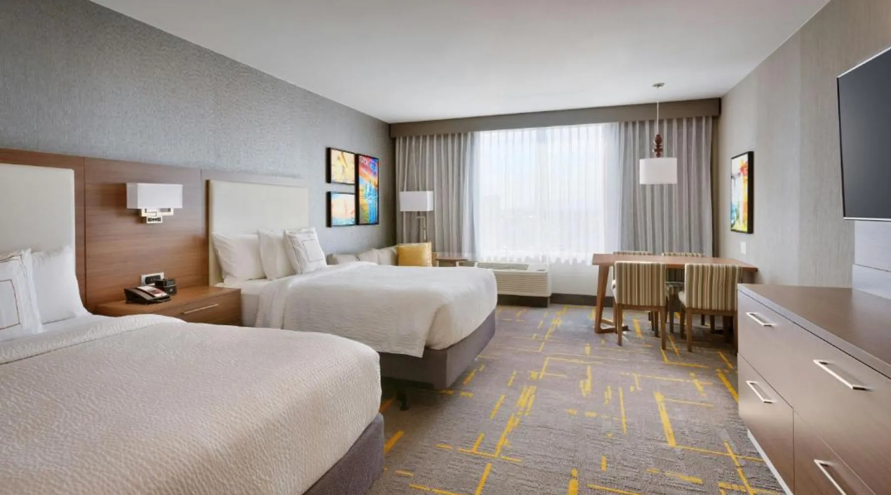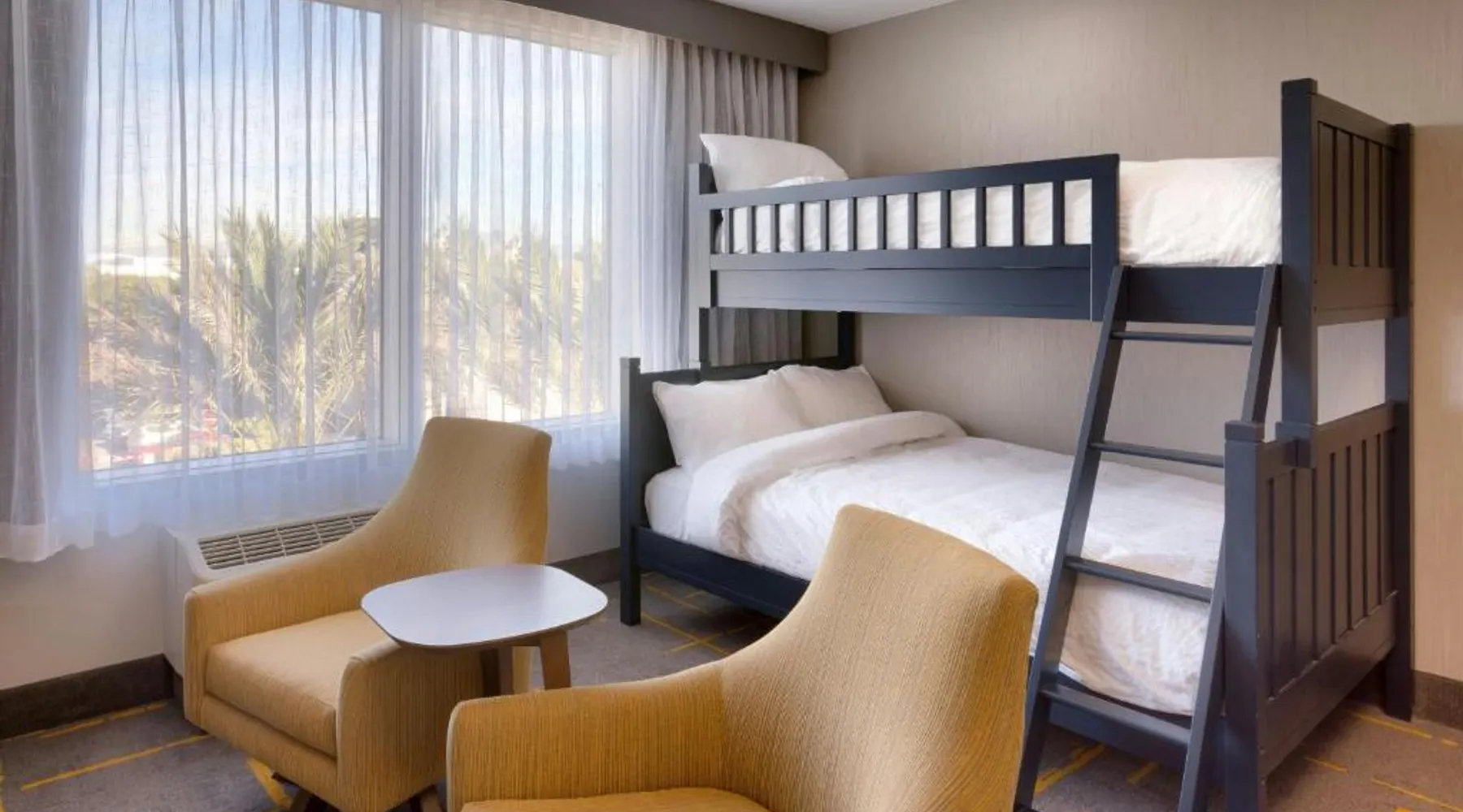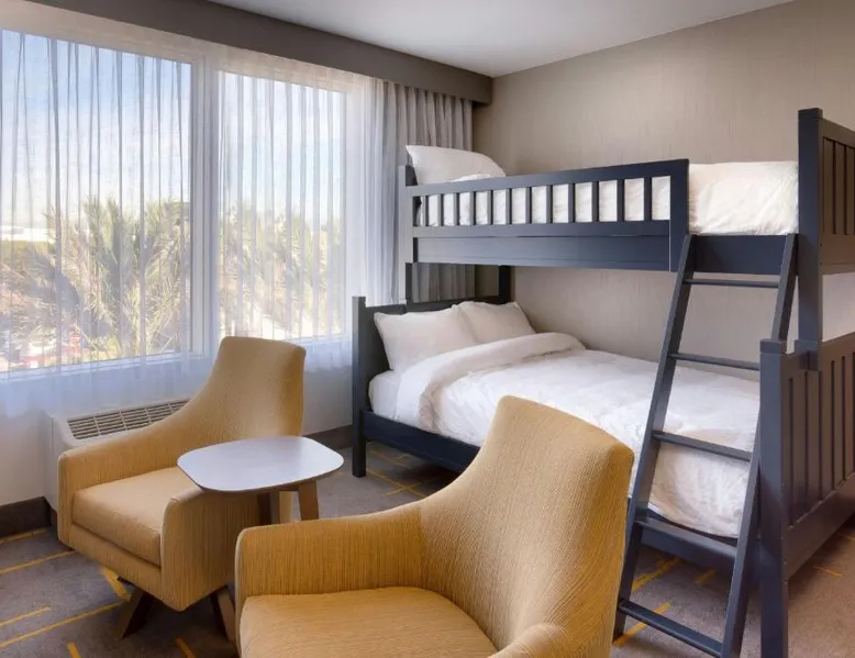 Comfortable Accommodations: Rooms feature air-conditioning, private bathrooms, kitchen facilities, and modern amenities. Guests appreciate the room comfort and spacious layouts. Dining Options: The family-friendly restaurant offers American, Italian, and pizza cuisines with vegetarian and gluten-free options. Breakfast includes continental and buffet selections with warm dishes, juice, and fruits. Leisure Facilities: The hotel features a fitness center, year-round outdoor swimming pool, and hot tub. Additional amenities include a lounge, outdoor fireplace, and barbecue facilities. Convenient Location: Located 0.6 mi from Hawthorne Municipal Airport, the hotel is near attractions such as SoFi Stadium (3.7 mi) and Venice Beach Boardwalk (12 mi). Free WiFi is available throughout the property. The air-conditioned suite has 2 bedrooms and 2 bathrooms with a shower and a hairdryer. The well-fitted kitchen features a stovetop, a refrigerator, a dishwasher and kitchenware. The suite features a tea and coffee maker, a seating area, a wardrobe, a sofa, as well as a flat-screen TV with cable channels. The unit has 5 beds.