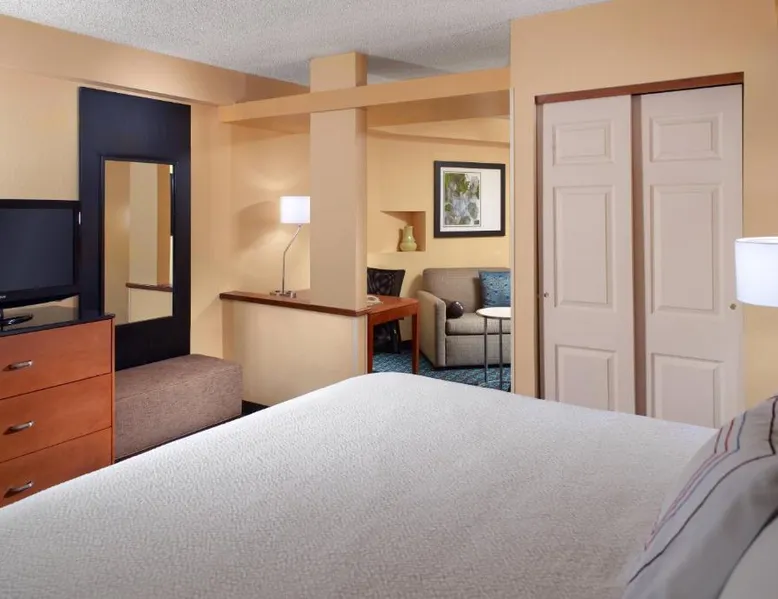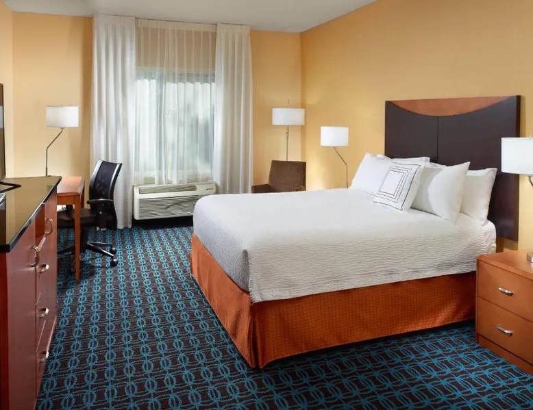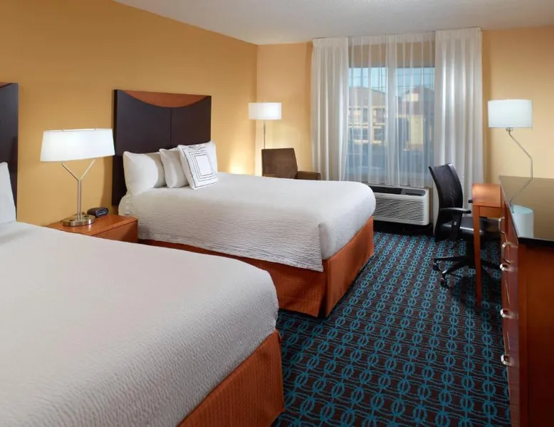 Comfortable Accommodations: Fairfield Inn & Suites Clarksville in Clarksville offers air-conditioned rooms with private bathrooms, free WiFi, and modern amenities including a work desk and TV. Leisure Facilities: Guests can enjoy a fitness center, indoor swimming pool, and free use of bicycles. Additional facilities include a lounge, fitness room, and 24-hour front desk. Dining Options: A continental buffet breakfast is served daily, featuring warm dishes, fresh pastries, fruits, and juice. Convenient Location: Located 50 mi from Nashville International Airport, the hotel is near attractions such as Dunbar Cave (5 mi) and Customs House Museum (6.8 mi). Guests appreciate the convenient location. Room features cable TV and a small refrigerator.