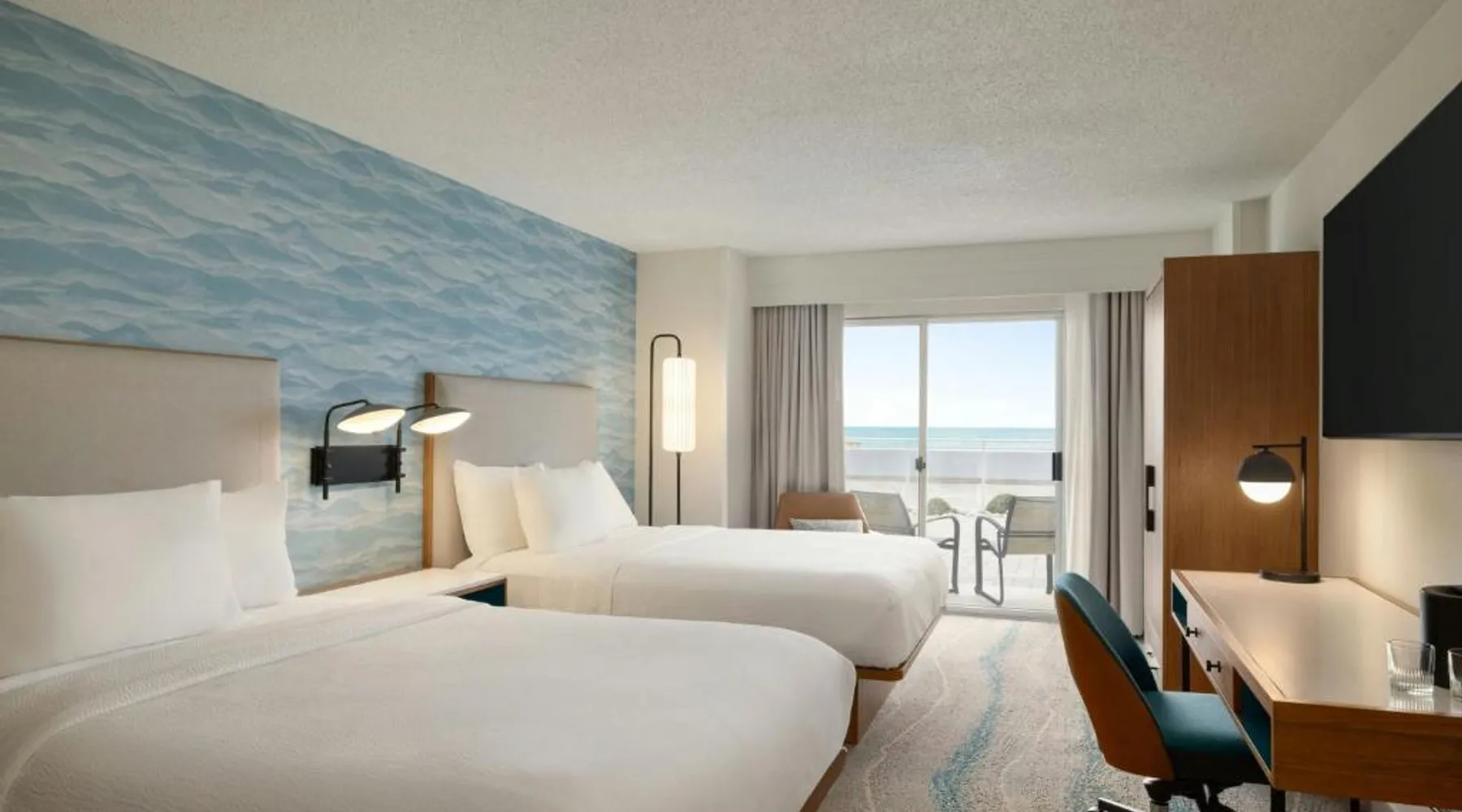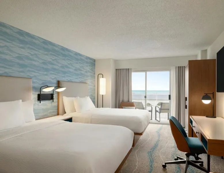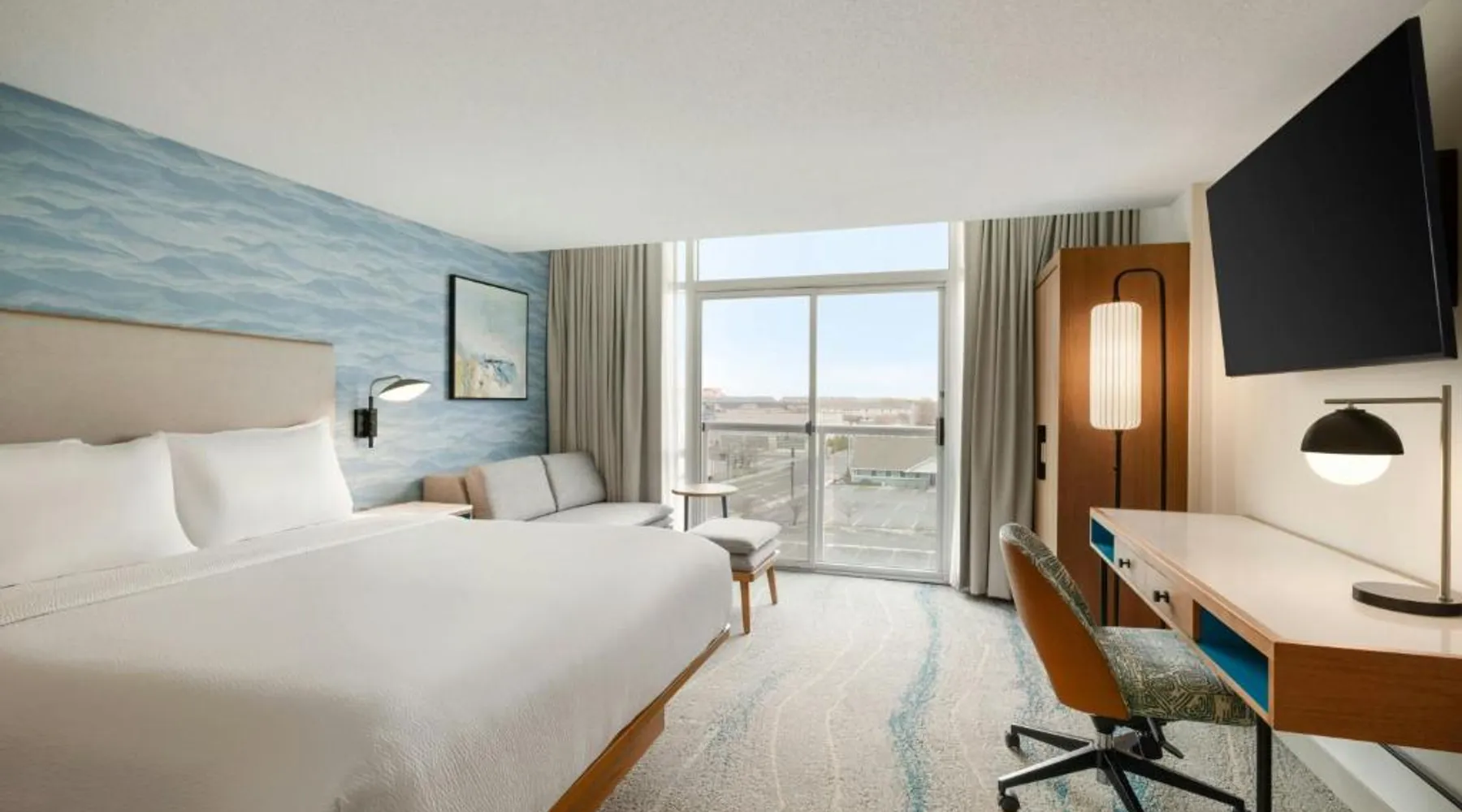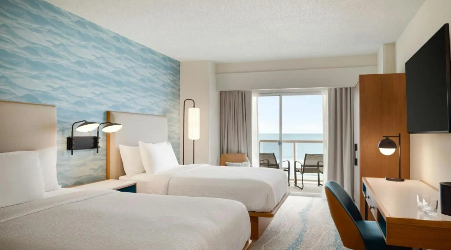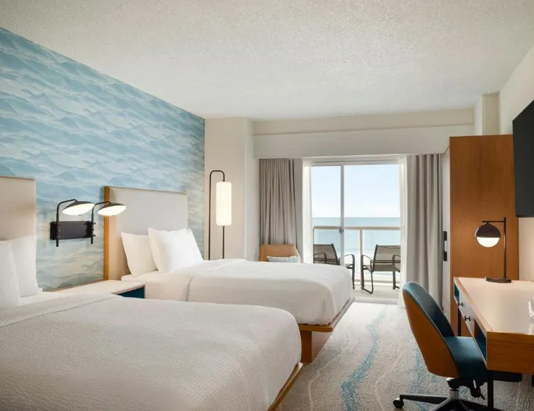 Courtyard by Marriott Ocean City Oceanfront occupies a beachfront location 4 mi from Ocean City Airport. It features an indoor swimming pool, a fitness center and free WiFi in all areas. All guest bedrooms at Courtyard Ocean City Oceanfront are equipped with an LCD satellite TV and an iPod docking station. Every room also features a microwave, a mini-refrigerator and hot drink facilities. Courtyard’s restaurant, The Captain’s Table, is open for breakfast, lunch and dinners. There are also several seafood restaurants within a few minutes’ walk of the hotel. Guests can play a round of golf at Glen Riddle Golf Club 6 mi away. The Ronald E. Powell Convention Center is 1.5 mi from the hotel. Offering free toiletries, this double room includes a private bathroom with a bath, a shower and a hairdryer. The spacious air-conditioned double room offers a flat-screen TV with streaming services, soundproof walls, a tea and coffee maker, a wardrobe as well as city views. The unit has 2 beds.