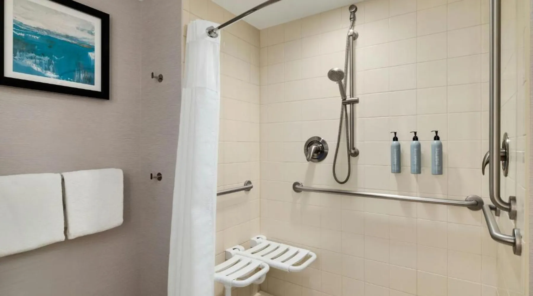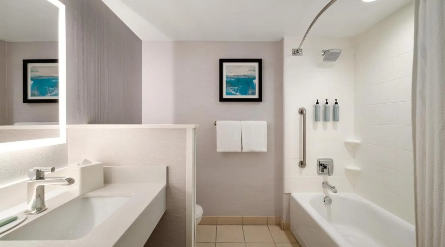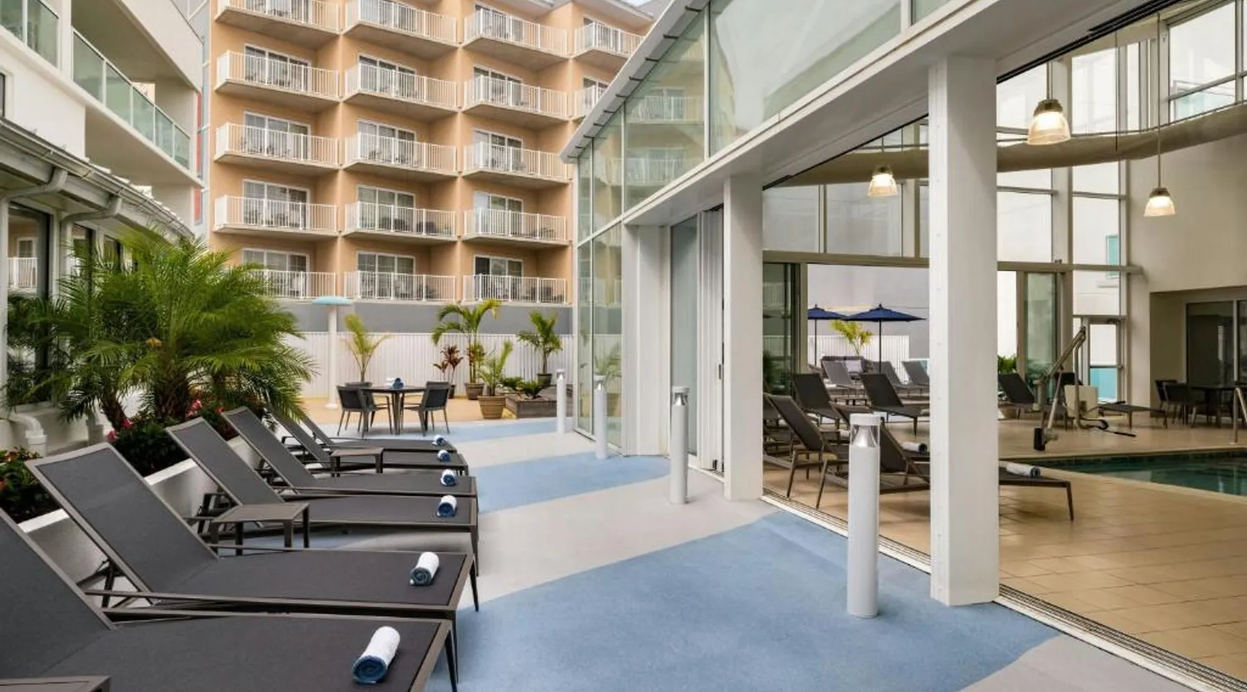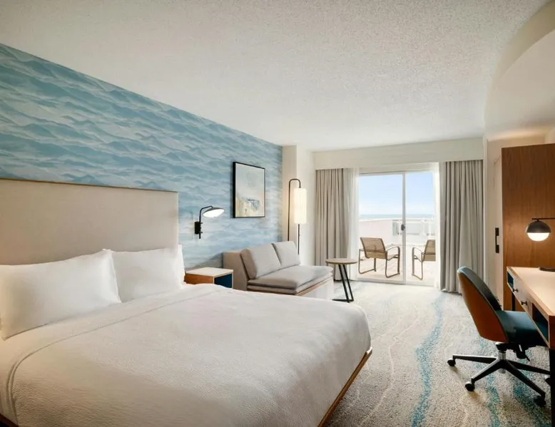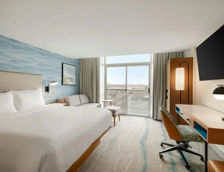 Courtyard by Marriott Ocean City Oceanfront occupies a beachfront location 4 mi from Ocean City Airport. It features an indoor swimming pool, a fitness center and free WiFi in all areas. All guest bedrooms at Courtyard Ocean City Oceanfront are equipped with an LCD satellite TV and an iPod docking station. Every room also features a microwave, a mini-refrigerator and hot drink facilities. Courtyard’s restaurant, The Captain’s Table, is open for breakfast, lunch and dinners. There are also several seafood restaurants within a few minutes’ walk of the hotel. Guests can play a round of golf at Glen Riddle Golf Club 6 mi away. The Ronald E. Powell Convention Center is 1.5 mi from the hotel. Offering free toiletries, this double room includes a private bathroom with a bath, a shower and a hairdryer. The spacious air-conditioned double room offers a flat-screen TV with streaming services, soundproof walls, a tea and coffee maker, a wardrobe as well as city views. The unit has 2 beds.