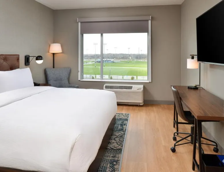 Comfortable Accommodations: Rooms feature air-conditioning, private bathrooms with walk-in showers, tea and coffee makers, and free toiletries. Additional amenities include sofa beds, work desks, and soundproofing. Dining and Leisure: The hotel offers a restaurant and bar, alongside a fitness center and terrace. Free on-site private parking is available. Convenient Location: Located in Olathe, the property is 29 mi from Kansas City International Airport. Nearby attractions include the National World War I Museum at Liberty Memorial (18 mi) and Union Station Kansas City (19 mi). Guest Satisfaction: Highly rated for room cleanliness, staff support, and comfort. Featuring free toiletries, this studio includes a private bathroom with a walk-in shower and a hairdryer. This wheelchair accessible studio has air conditioning, a seating area with a flat-screen TV and a roll-in shower. The unit has 2 beds.