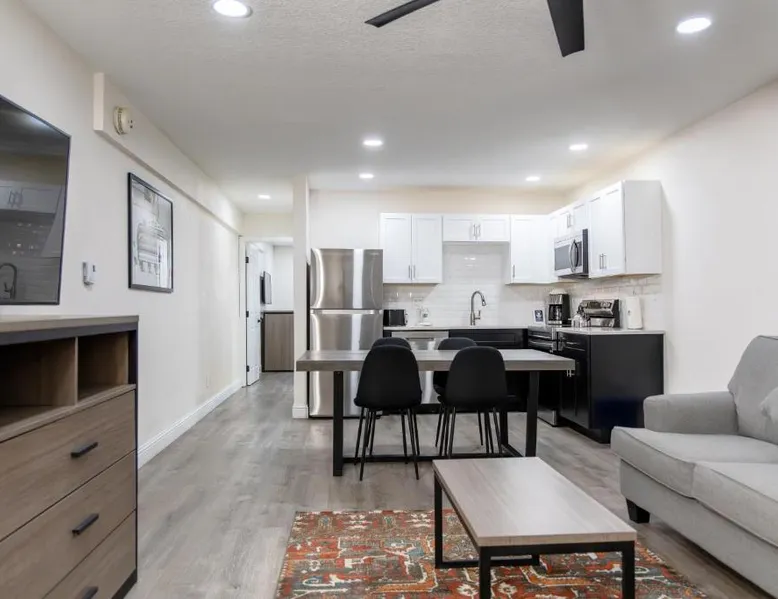 Mountains, Adventure, and All the Space You Need Winter thrills or summer chills — Steamboat delivers. And The Fold Steamboat Springs Suites puts you right in the action: steps from the gondola, surrounded by great shops and eats, and minutes from the kind of outdoor fun that gets your heart racing. Carve the slopes, hit the trails, paddle whitewater, or saddle up and explore. This is your mountain playground — and we’re all about helping you enjoy it responsibly. When it’s time to wind down, kick back in a one- or two-bedroom suite, fire up the grill, or melt into the hot tub. You also have access to resort amenities at our sister property, Legacy Vacation Resorts (one mile away), which includes an indoor pool, hot tubs, indoor fireplace and fitness center. This is Steamboat, Fold style — your stay, your pace, your kind of adventure, with a lighter footprint. This spacious suite includes free Wi-Fi, a full kitchen with a dining area, a flat-screen cable TV, a sofa bed.