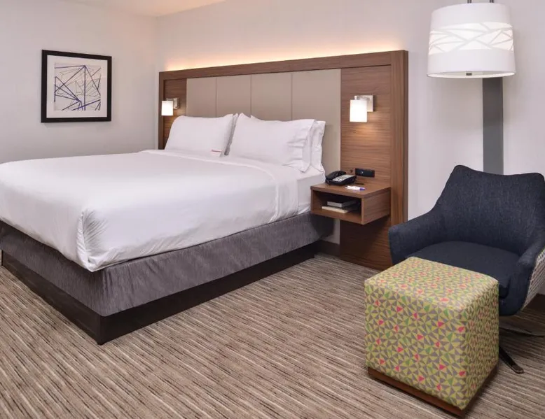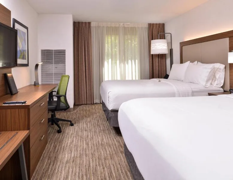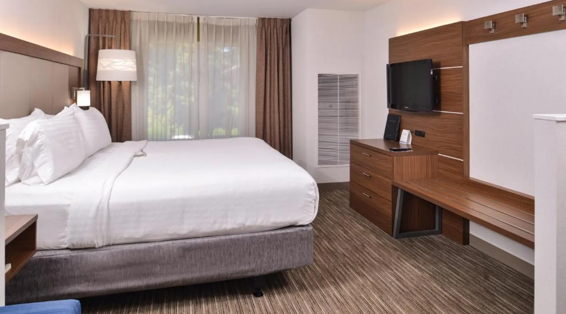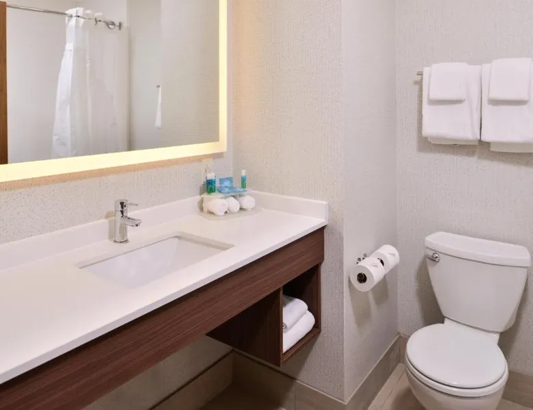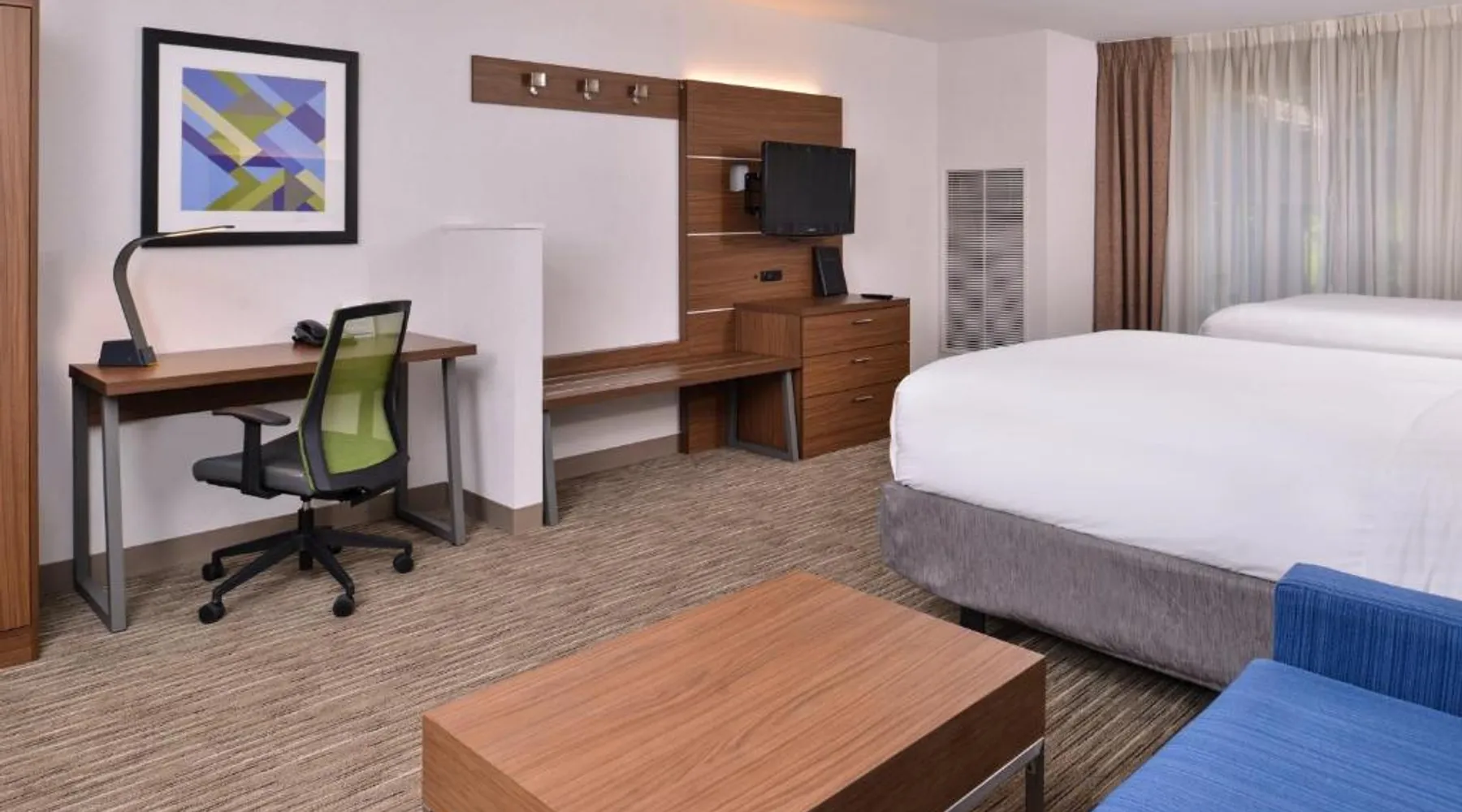 Comfortable Accommodations: Holiday Inn Express & Suites Lacey - Olympia by IHG in Lacey offers air-conditioned rooms with private bathrooms, free WiFi, and modern amenities. Each room includes a work desk, refrigerator, and TV. Leisure Facilities: Guests can enjoy a fitness center, indoor swimming pool, and a 24-hour front desk. Additional facilities include a business area and free on-site parking. Dining Options: A continental, American, and buffet breakfast is served daily, featuring warm dishes, fresh pastries, pancakes, fruits, and juice. Location and Attractions: Located 45 mi from Seattle–Tacoma International Airport, the hotel is near attractions such as the Hands on Children's Museum (5 mi) and the Museum of Glass (26 mi). Guests appreciate the attentive staff and excellent room cleanliness. Featuring a spacious living room, this suite is styled in cream and white linens. This contemporary air-conditioned room provides free Wi-Fi and cable TV.