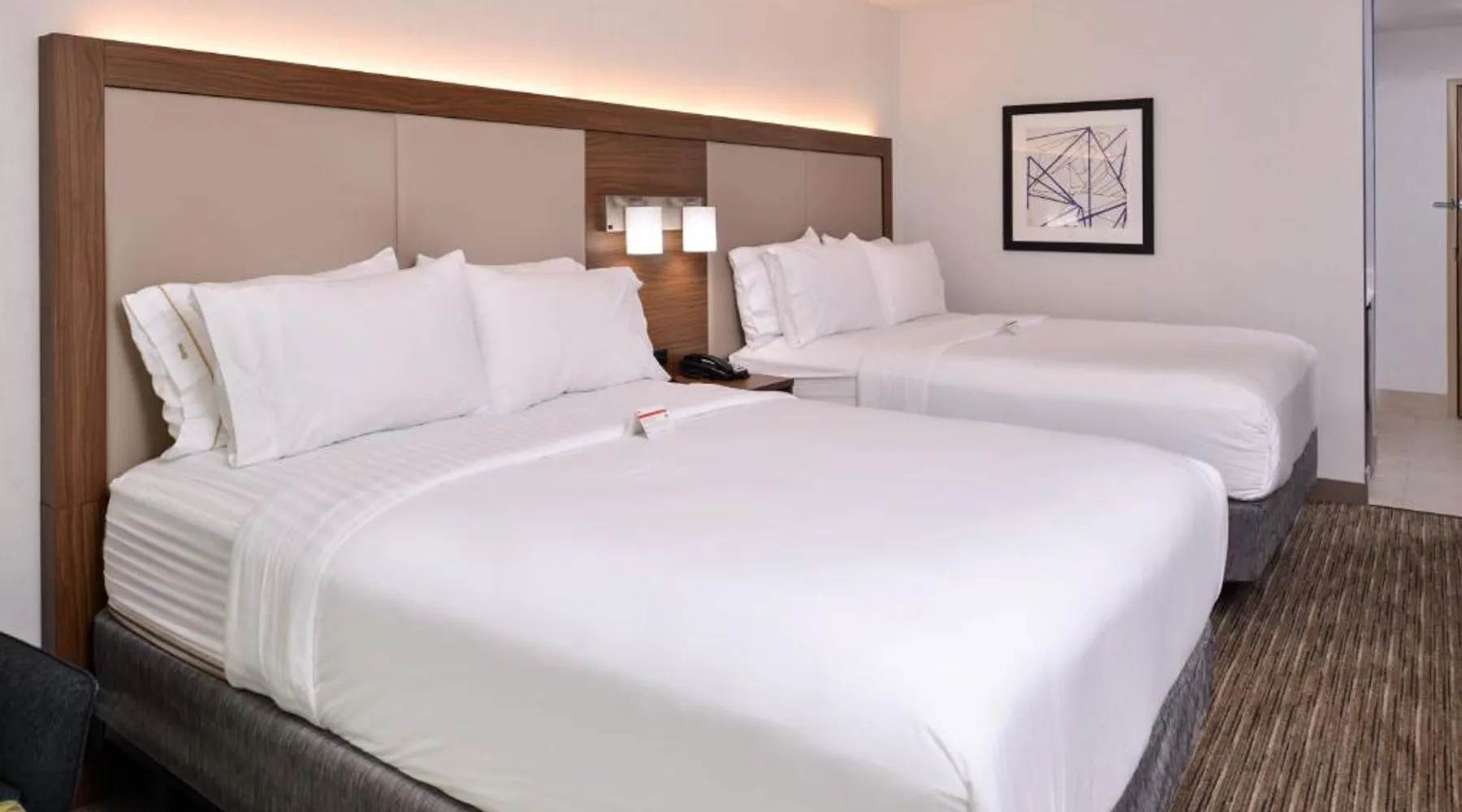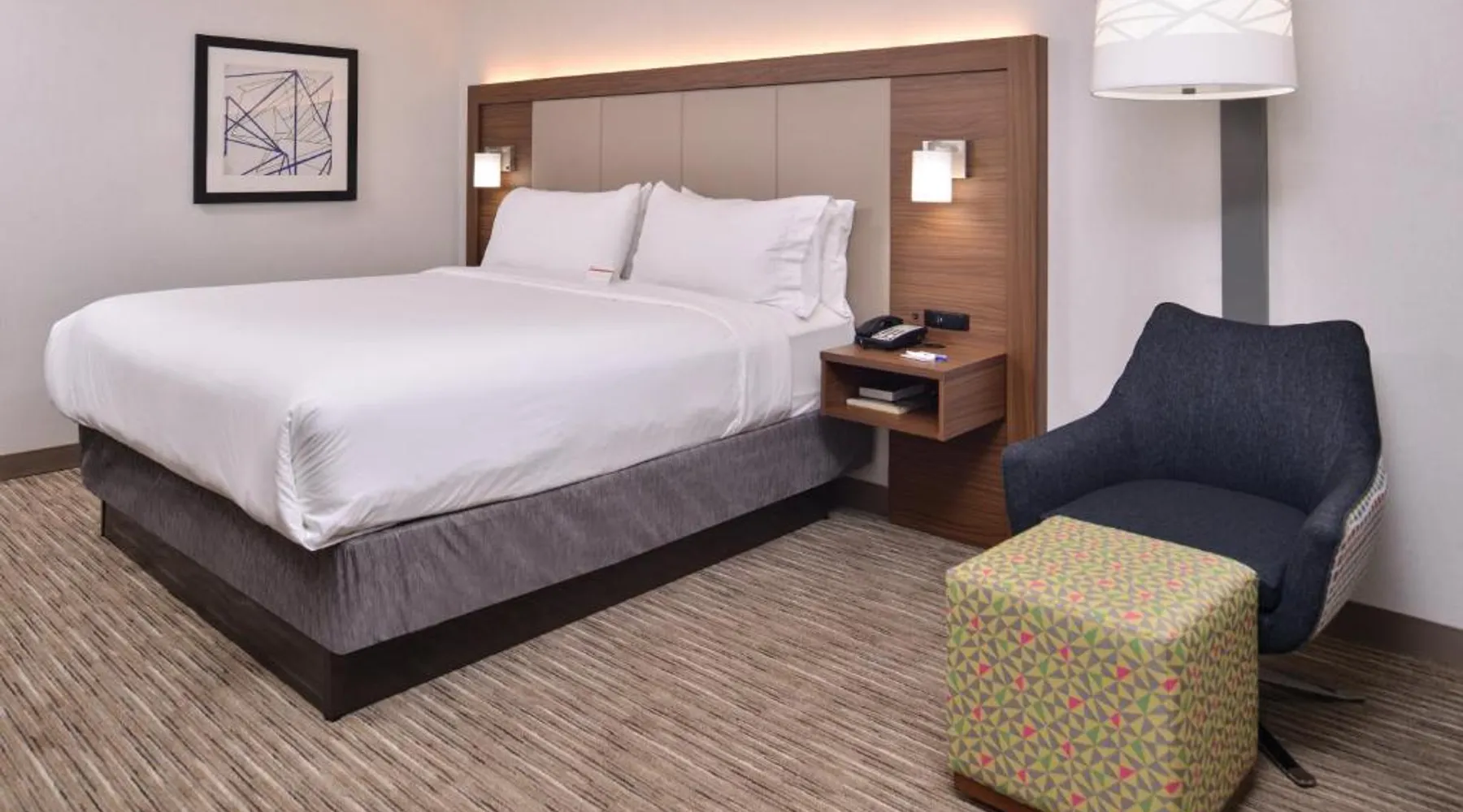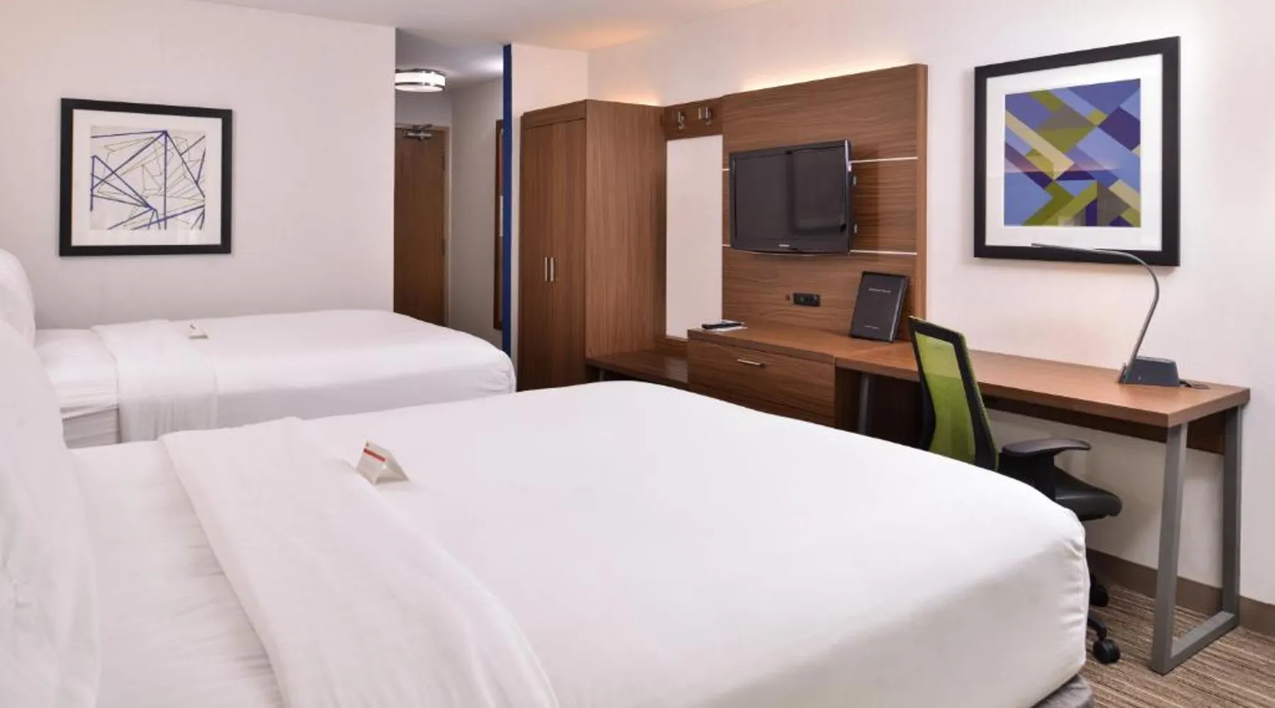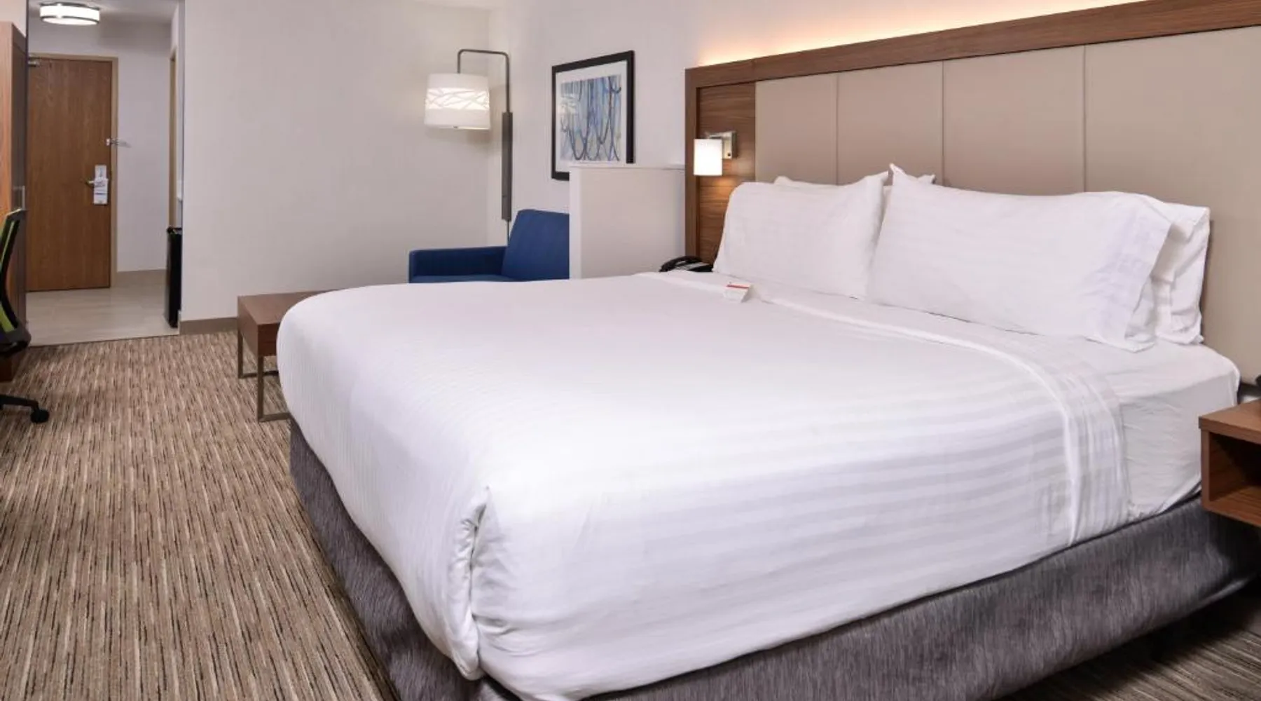 Comfortable Accommodations: Holiday Inn Express & Suites Lacey - Olympia by IHG in Lacey offers air-conditioned rooms with private bathrooms, free WiFi, and modern amenities. Each room includes a work desk, refrigerator, and TV. Leisure Facilities: Guests can enjoy a fitness center, indoor swimming pool, and a 24-hour front desk. Additional facilities include a business area and free on-site parking. Dining Options: A continental, American, and buffet breakfast is served daily, featuring warm dishes, fresh pastries, pancakes, fruits, and juice. Location and Attractions: Located 45 mi from Seattle–Tacoma International Airport, the hotel is near attractions such as the Hands on Children's Museum (5 mi) and the Museum of Glass (26 mi). Guests appreciate the attentive staff and excellent room cleanliness. Featuring a spacious living room, this suite is styled in cream and white linens. This contemporary air-conditioned room provides free Wi-Fi and cable TV.