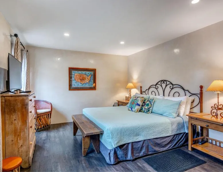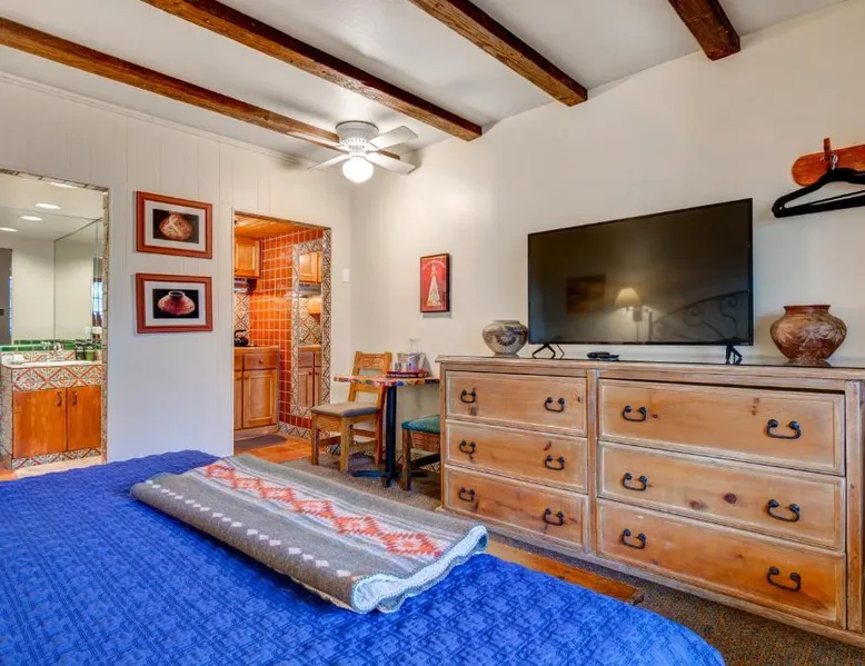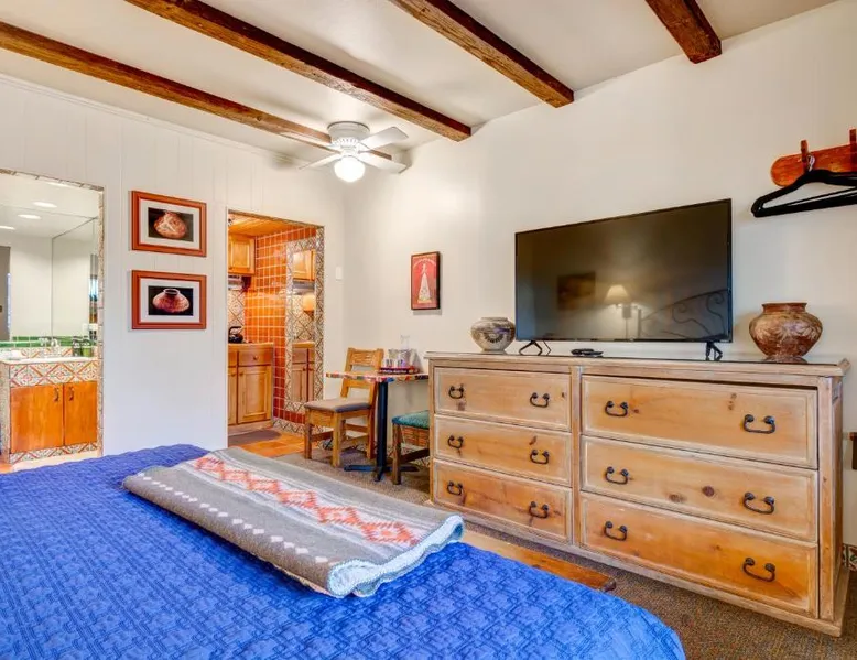 This motel is 10 minutes’ walk from Georgia O’Keefe Museum. All rooms feature a flat-screen cable TV. A healthy light breakfast is served to guests daily. Each room includes a seating area with a work desk, an iPod docking station and coffee-making facilities at Santa Fe Motel & Inn. An private bathroom equipped with a hairdryer is also provided. Select rooms offer a kitchenette with a dining area, a microwave, a refrigerator and a stove top. Front Desk is able to provide business center services to include email and photocopying The Plaza is 2953 feet from Santa Fe Motel & Inn, while Lensic Performing Arts Center is 2297 feet from the property. The nearest airport is Santa Fe Municipal Airport, 9.3 mi from the property. Rooms are 28 square yards. This room dose not accommodate pets.