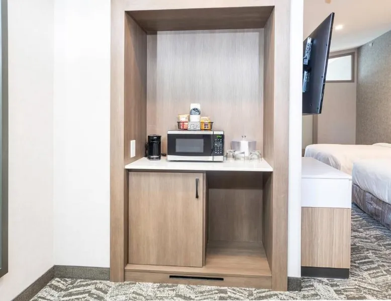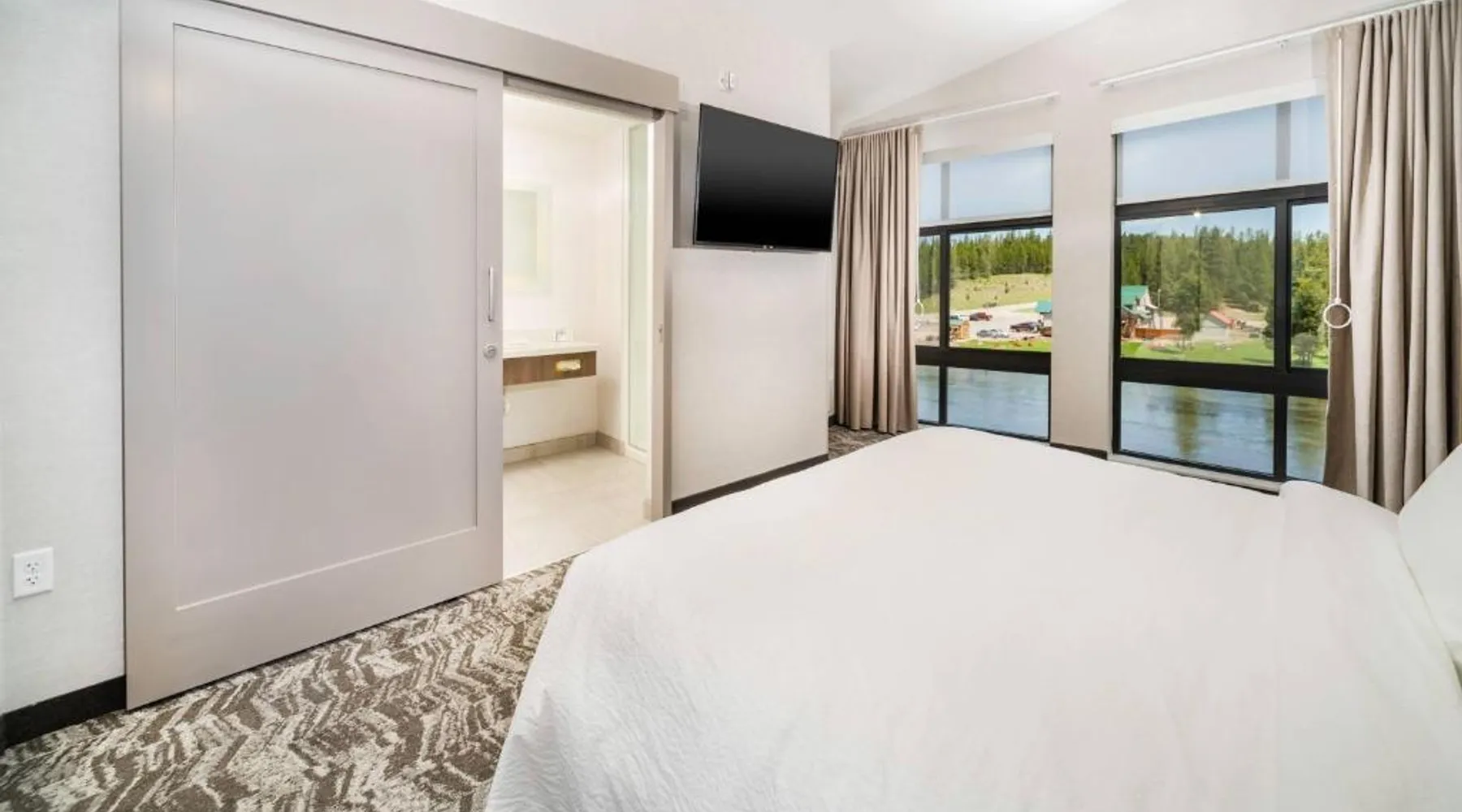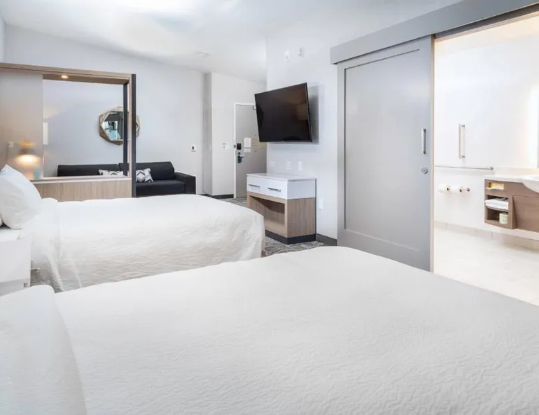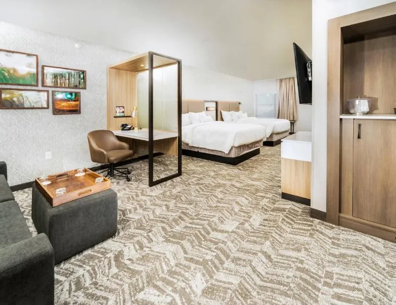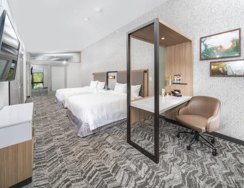 Comfortable Accommodations: SpringHill Suites Island Park Yellowstone in Island Park offers rooms with air-conditioning, TV, and sofa. Guests appreciate the room comfort and attentive staff. Facilities and Services: The hotel features a fitness center, indoor swimming pool, and free WiFi. Additional amenities include a hot tub, 24-hour front desk, and electric vehicle charging station. Location and Attractions: Located 21 mi from Yellowstone National Park, the property is near attractions such as the National Geographic Imax Theater (23 mi) and Upper Mesa Falls (27 mi). Guest Satisfaction: Highly rated by guests for room comfort, attentive staff, and breakfast provided by the property. This double room features air conditioning, a sofa and a flat-screen TV. The unit offers 2 beds.