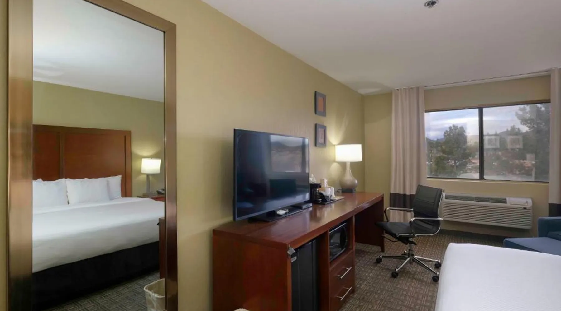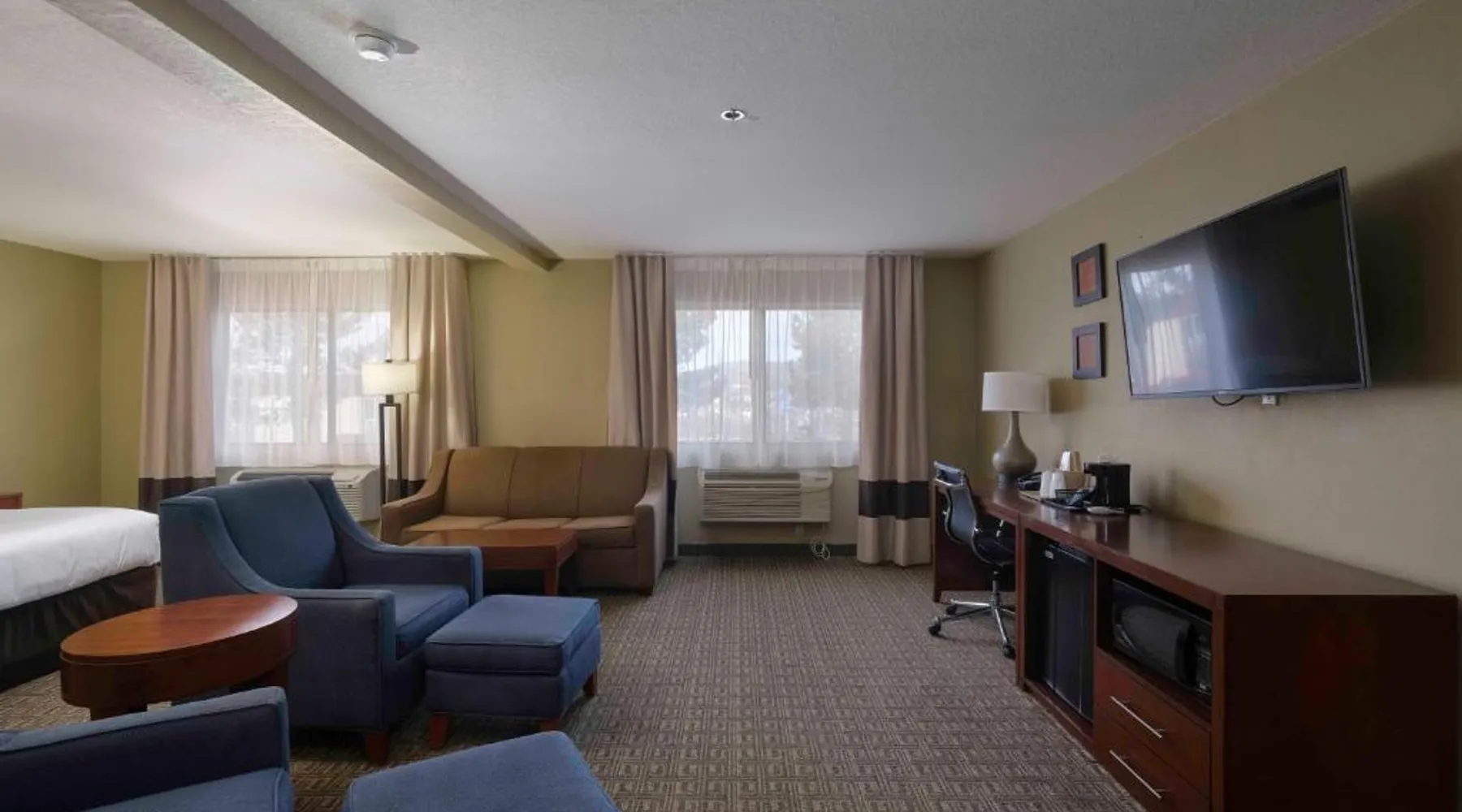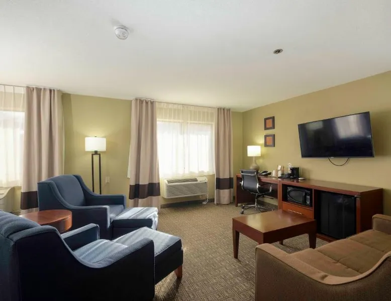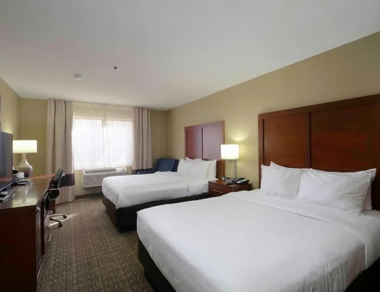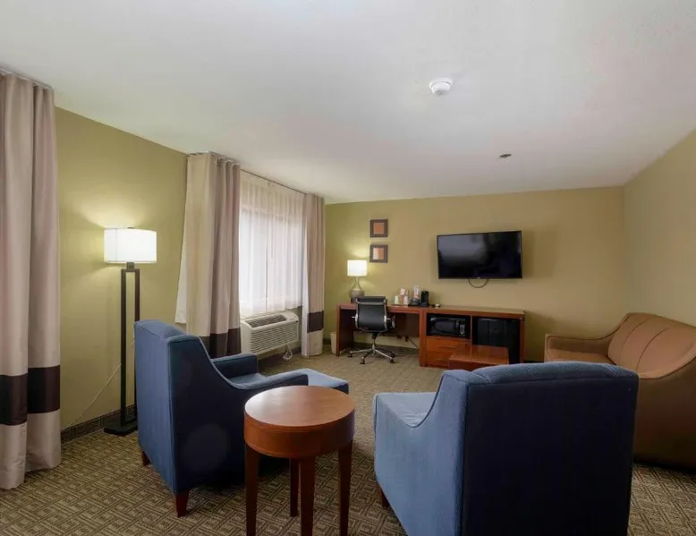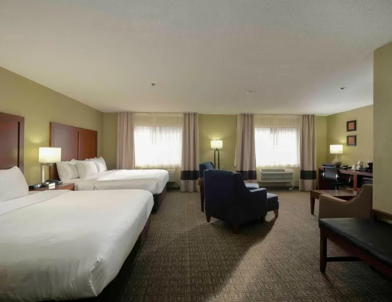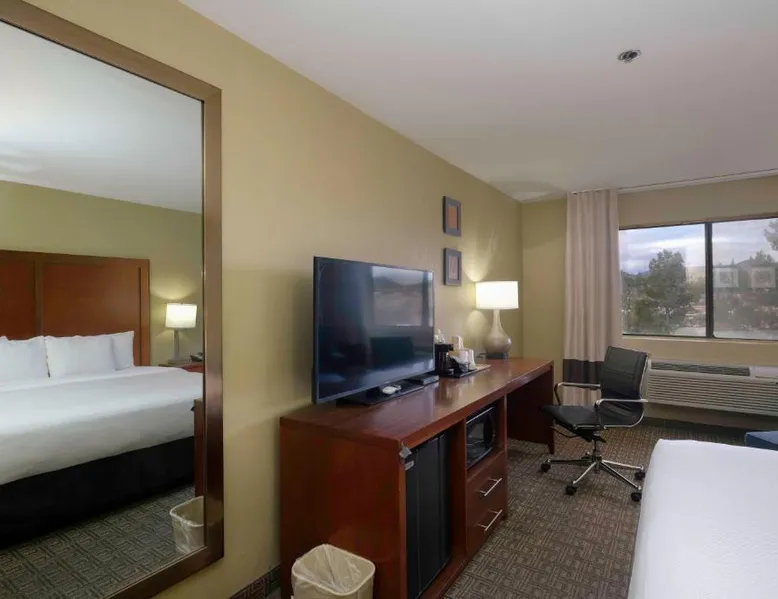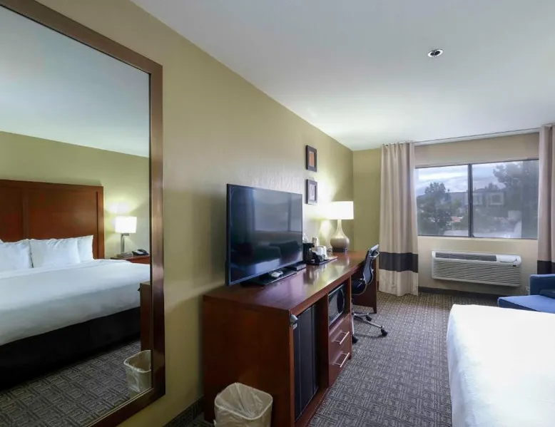 Comfortable Accommodations: Comfort Inn Near Gila National Forest in Silver City offers family rooms with private bathrooms, air-conditioning, and mountain views. Each room includes a work desk, sofa bed, and free WiFi. Relaxing Facilities: Guests can enjoy a swimming pool with a view, indoor pool, and hot tub. Additional amenities include a spa bath, sauna, and outdoor seating area. Dining Experience: A continental buffet breakfast is served daily, featuring warm dishes, fresh pastries, fruits, and juice. Convenient Services: The inn provides a 24-hour front desk, concierge service, and free on-site parking. Grant County Airport is 15 mi away. Featuring free toiletries, this double room includes a private bathroom with a bath, a shower and a hairdryer. The spacious air-conditioned double room features a flat-screen TV with satellite channels, a coffee machine, a seating area, a wardrobe as well as mountain views. The unit has 2 beds.