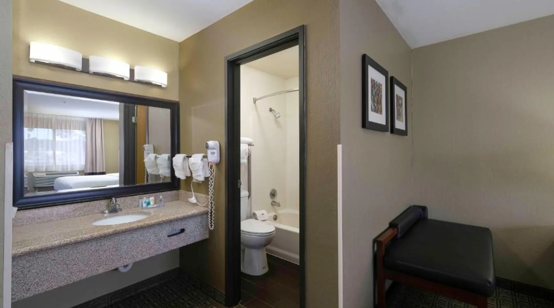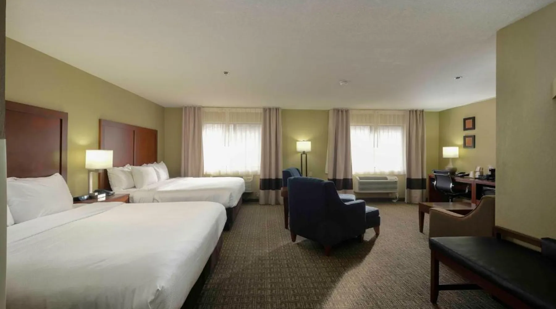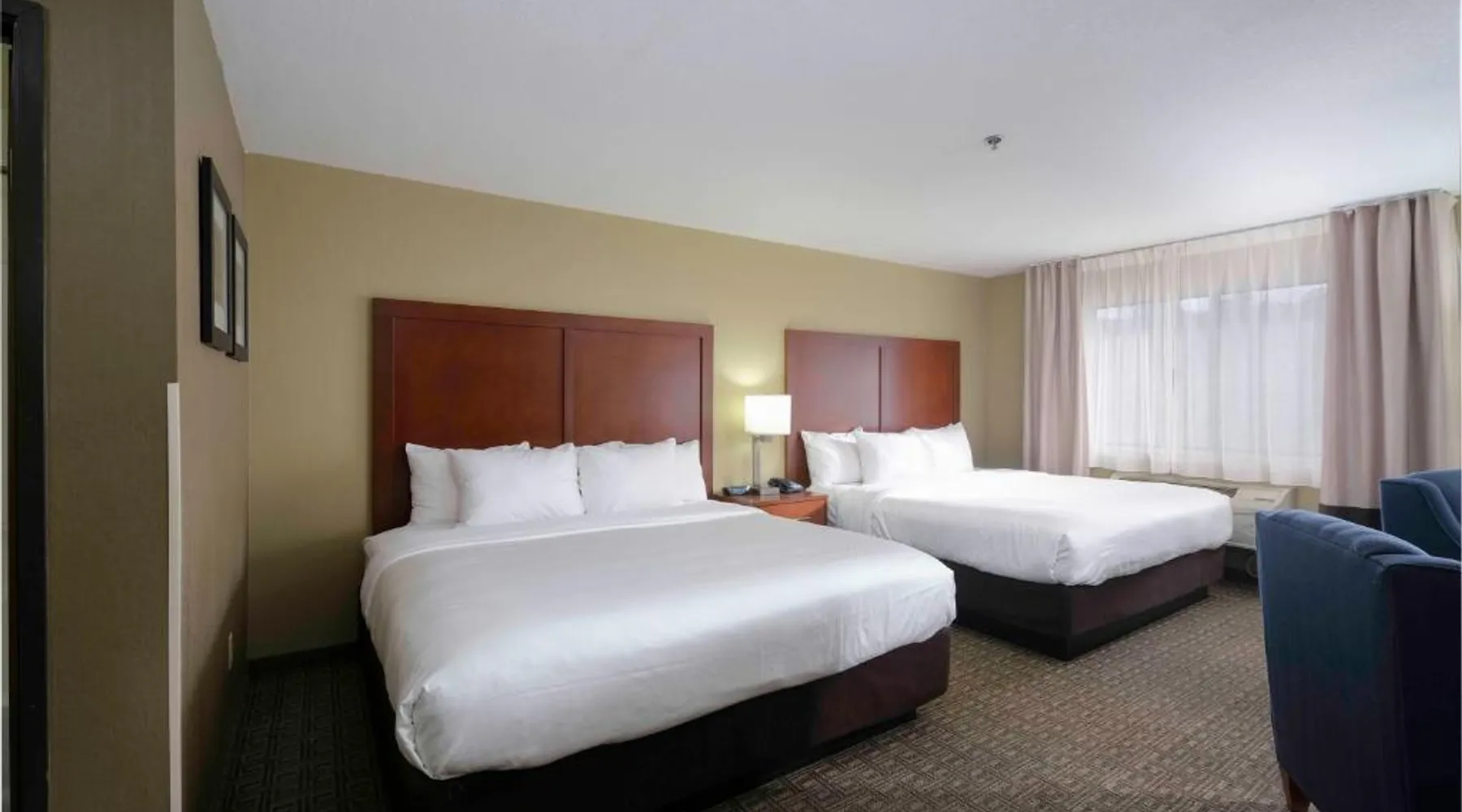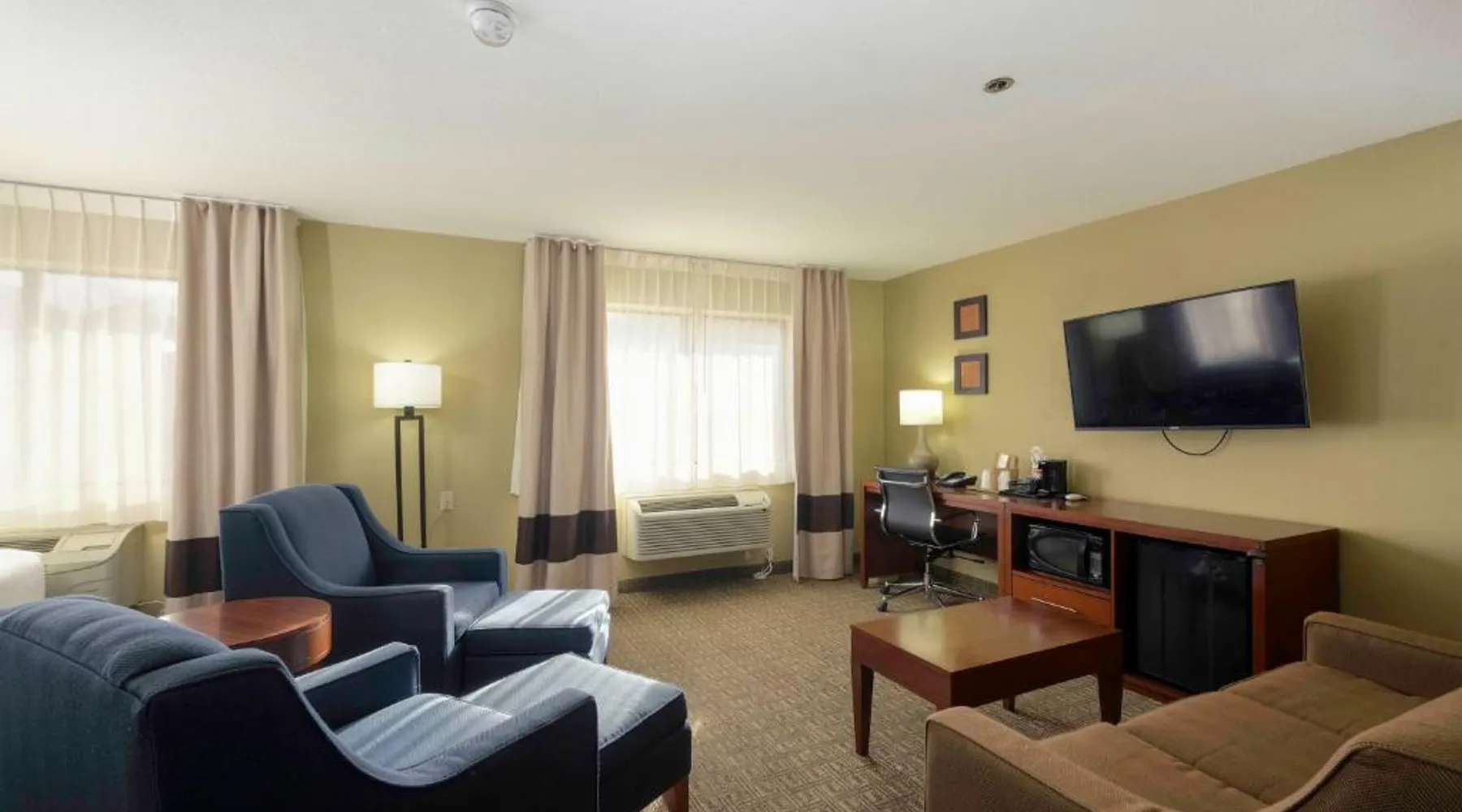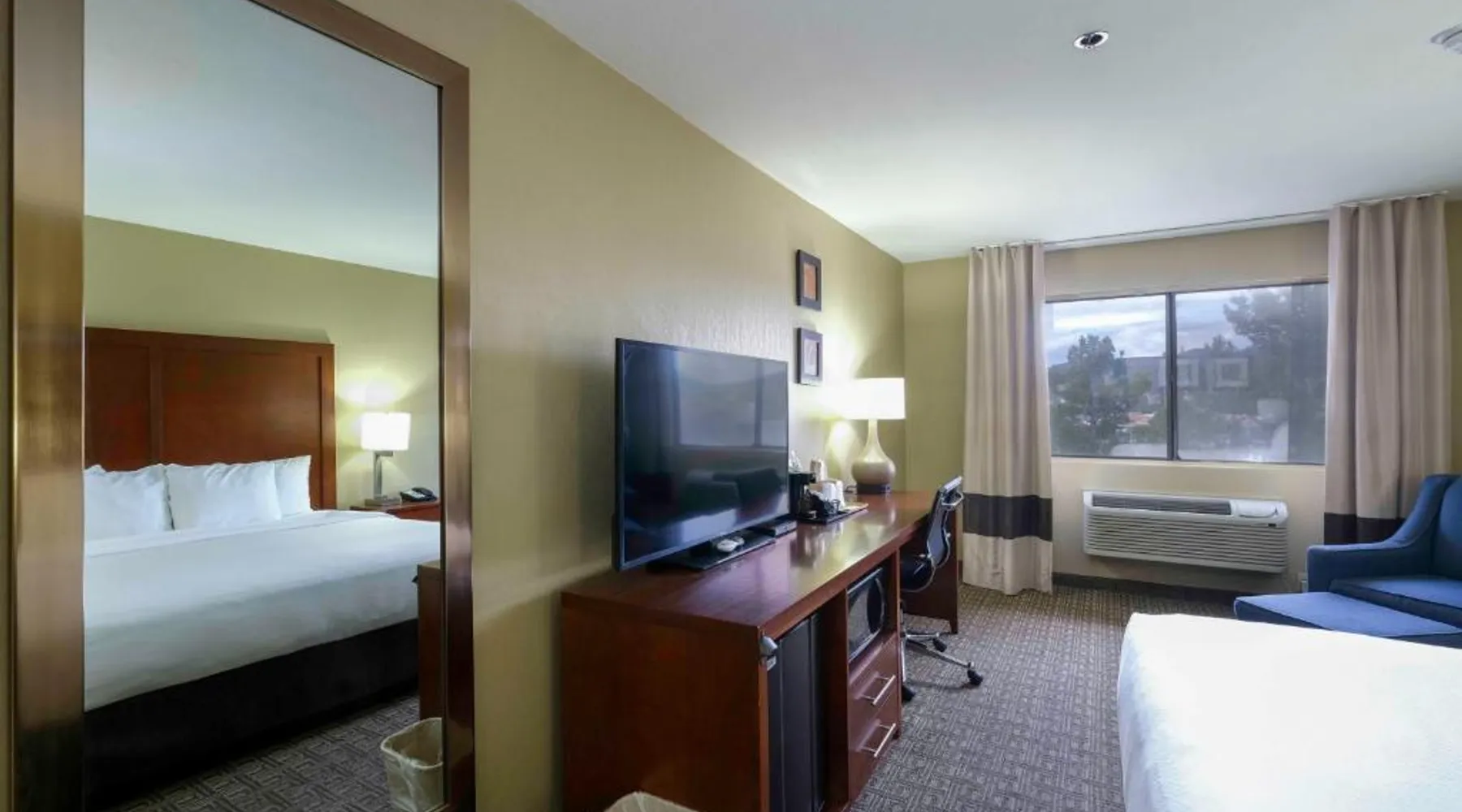 Comfortable Accommodations: Comfort Inn Near Gila National Forest in Silver City offers family rooms with private bathrooms, air-conditioning, and mountain views. Each room includes a work desk, sofa bed, and free WiFi. Relaxing Facilities: Guests can enjoy a swimming pool with a view, indoor pool, and hot tub. Additional amenities include a spa bath, sauna, and outdoor seating area. Dining Experience: A continental buffet breakfast is served daily, featuring warm dishes, fresh pastries, fruits, and juice. Convenient Services: The inn provides a 24-hour front desk, concierge service, and free on-site parking. Grant County Airport is 15 mi away. Featuring free toiletries, this double room includes a private bathroom with a bath, a shower and a hairdryer. The spacious air-conditioned double room features a flat-screen TV with satellite channels, a coffee machine, a seating area, a wardrobe as well as mountain views. The unit has 2 beds.