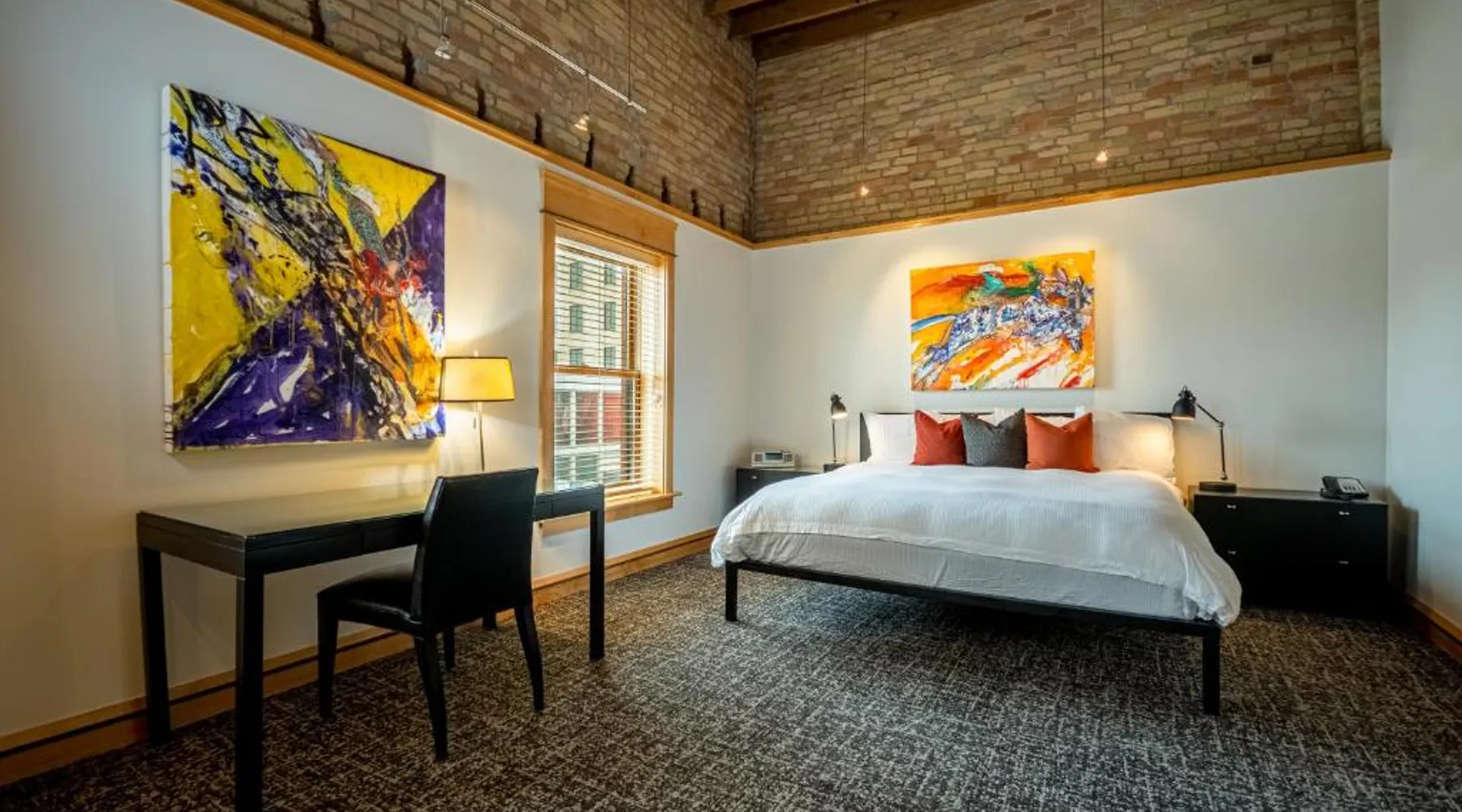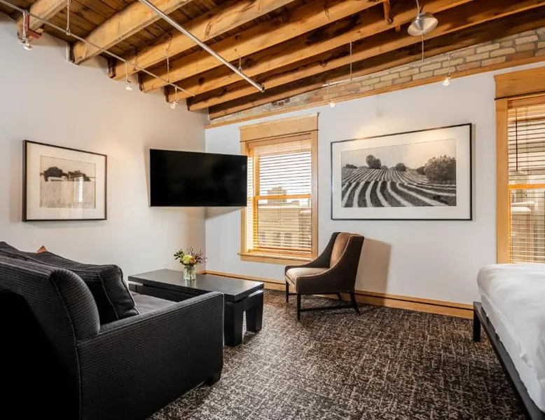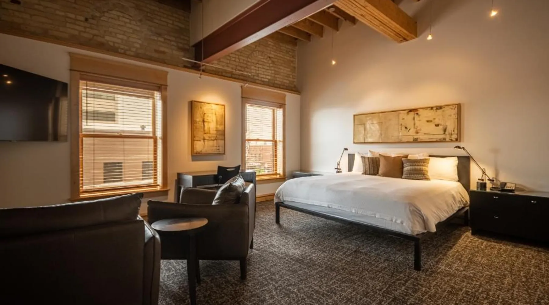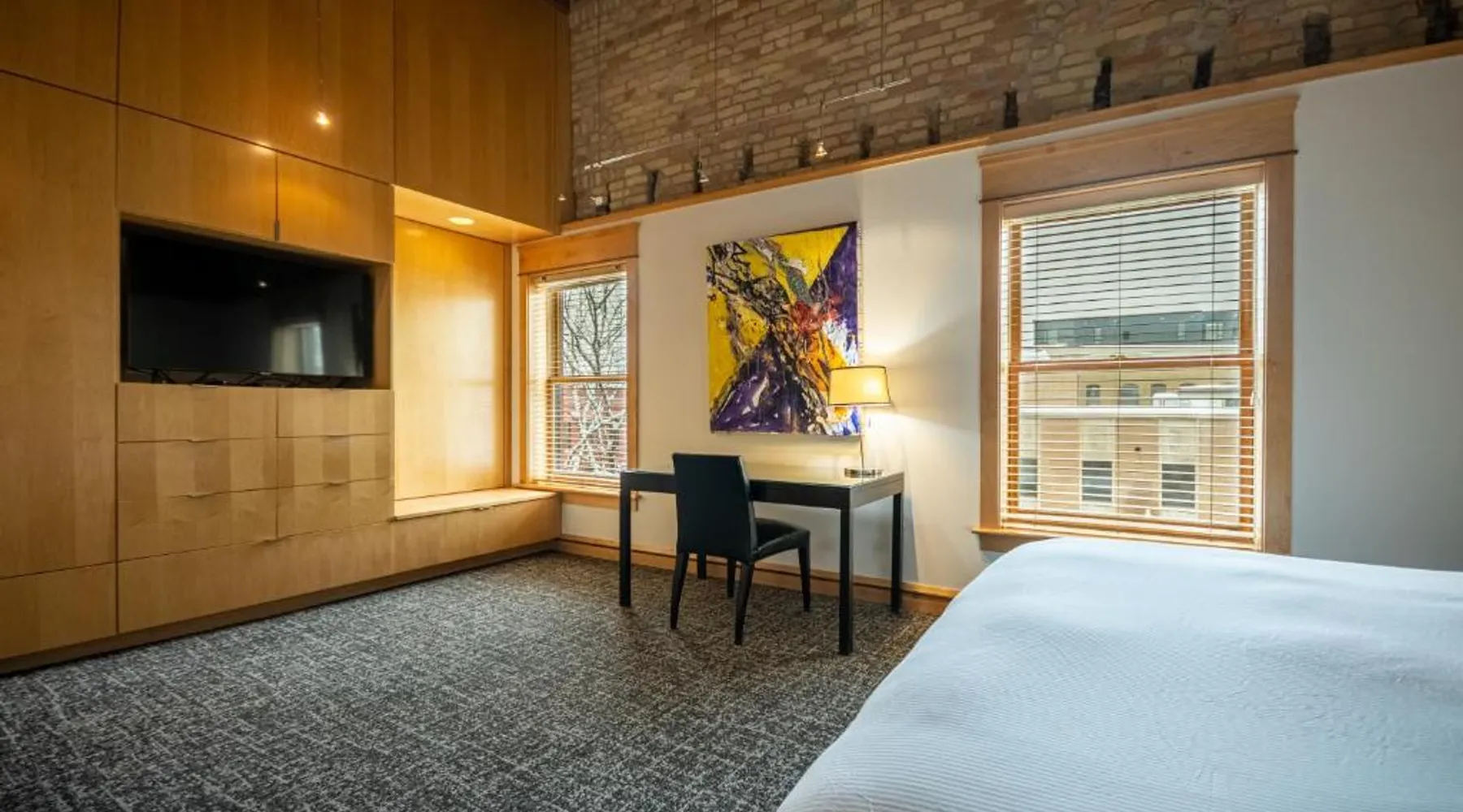 Historic Setting: Hotel Donaldson in Fargo is housed in a historic building, offering a unique and charming atmosphere. Comfortable Accommodations: Rooms feature air-conditioning, private bathrooms, city views, and modern amenities such as free WiFi and streaming services. Dining and Leisure: The modern, romantic restaurant serves American cuisine with vegetarian, vegan, and gluten-free options. Guests can also enjoy a fitness center, sun terrace, bar, and outdoor fireplace. Convenient Location: Located 2.5 mi from Hector International Airport and a 3-minute walk from Fargo Civic Center, the hotel is near attractions like FargoDome and Red River Zoo. An ice-skating rink is also in the vicinity. Offering free WiFi, this room features local artwork, a stereo system and a docking station for electronics. Please note that bedding configuration cannot be guaranteed and will be allocated upon check-in.