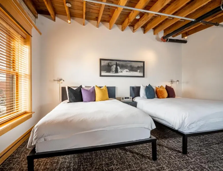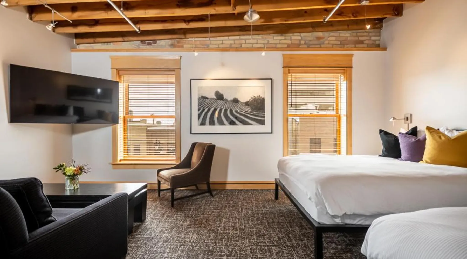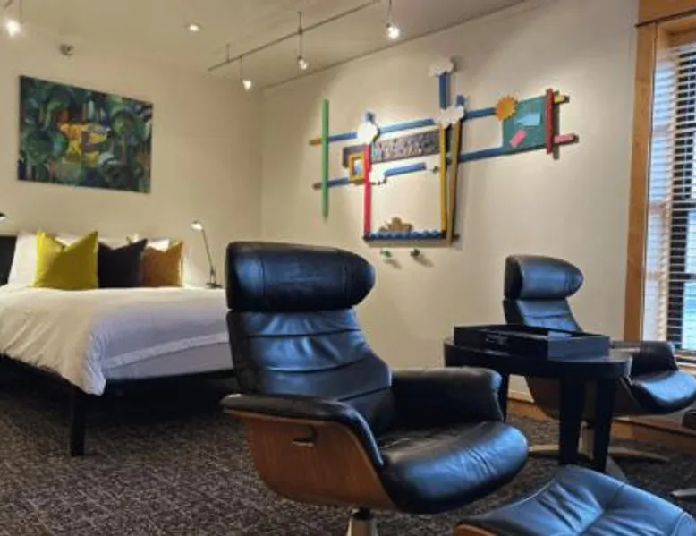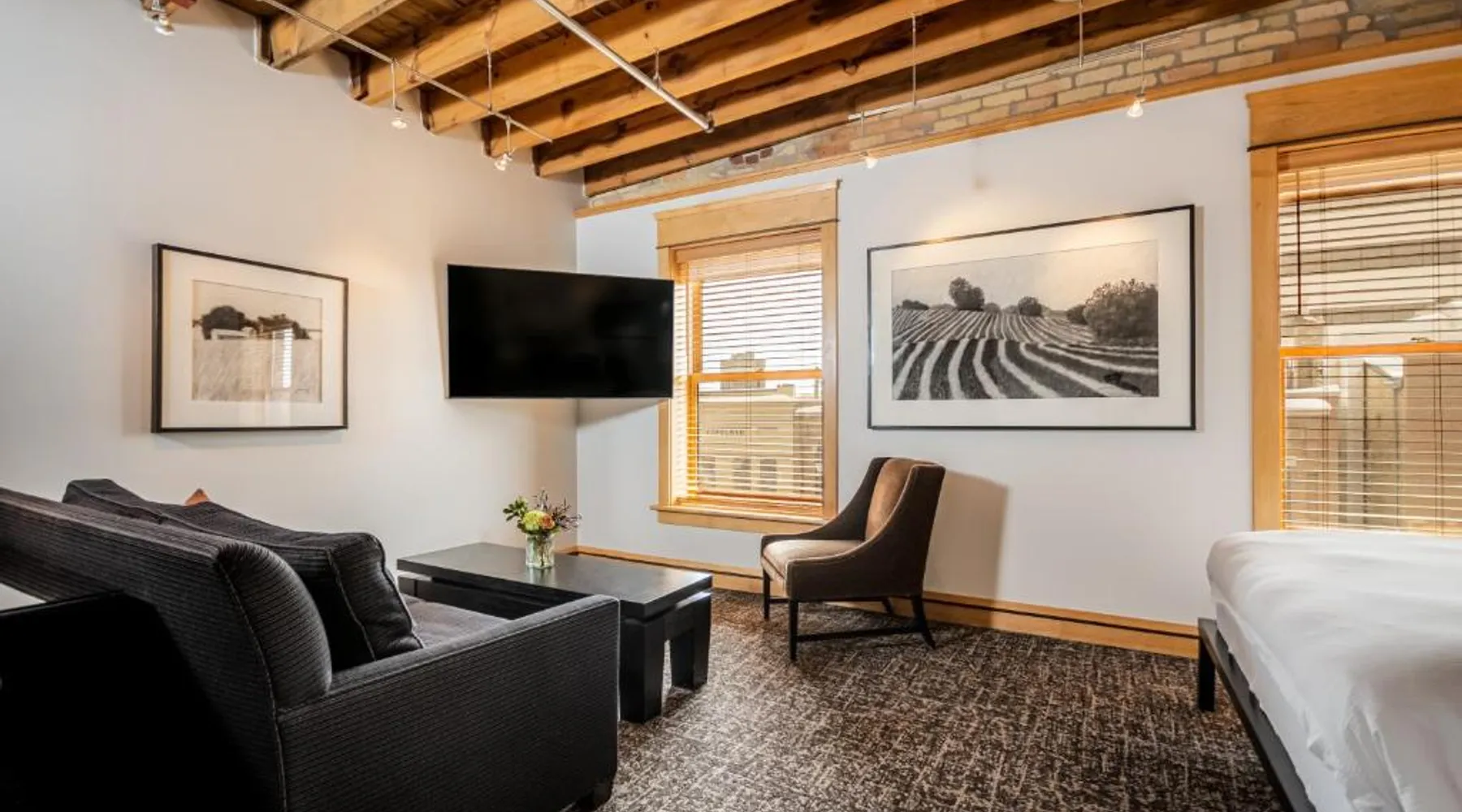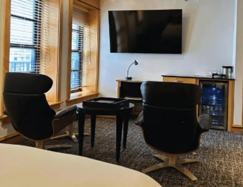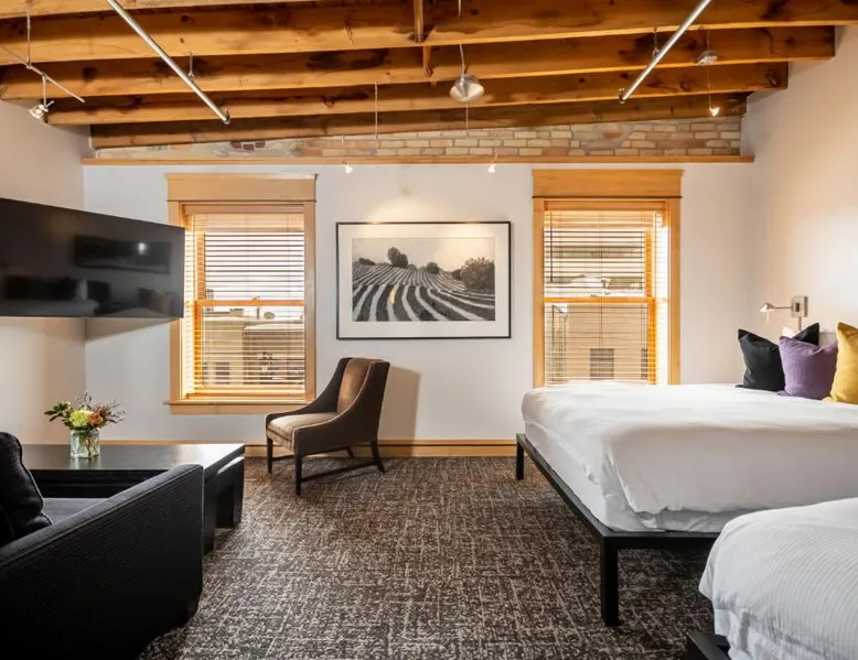 Historic Setting: Hotel Donaldson in Fargo is housed in a historic building, offering a unique and charming atmosphere. Comfortable Accommodations: Rooms feature air-conditioning, private bathrooms, city views, and modern amenities such as free WiFi and streaming services. Dining and Leisure: The modern, romantic restaurant serves American cuisine with vegetarian, vegan, and gluten-free options. Guests can also enjoy a fitness center, sun terrace, bar, and outdoor fireplace. Convenient Location: Located 2.5 mi from Hector International Airport and a 3-minute walk from Fargo Civic Center, the hotel is near attractions like FargoDome and Red River Zoo. An ice-skating rink is also in the vicinity. Offering free WiFi, this room features local artwork, a stereo system and a docking station for electronics. Please note that bedding configuration cannot be guaranteed and will be allocated upon check-in.