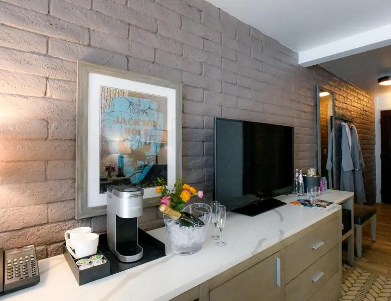 This ski-in/ski-out resort is surrounded by the Bridger Teton National Forest and is 0.8 mi from downtown Jackson. It offers an outdoor pool, a hot tub, a restaurant and rooms with mountain views. Guest rooms at Snow King Resort are spacious and feature cable TV, free WiFi and deluxe bathroom toiletries. Luxury accommodations offer a living room with a fireplace and a full kitchen. The Haydens Post Restaurant serves traditional American cuisine as well as signature dishes. Guests can enjoy their meal inside or on the patio which overlooks the pool. The Lounge offers light dining and a full drink menu. Resort Snow King features an beauty salon and massage services. Concierge services are also offered. Activities in the surrounding area include skiing, hiking, biking, as well as the Cowboy Coaster and Alpine Slide. Grand Teton National Park Entrance Turnout is 5.8 mi from the property. Pets may be accommodated in hotel rooms for a fee. The quadruple room's kitchen, which features a dishwasher, is available for cooking and storing food. The spacious quadruple room provides air conditioning, a tea and coffee maker, a seating area, as well as a balcony. The unit offers 2 beds.