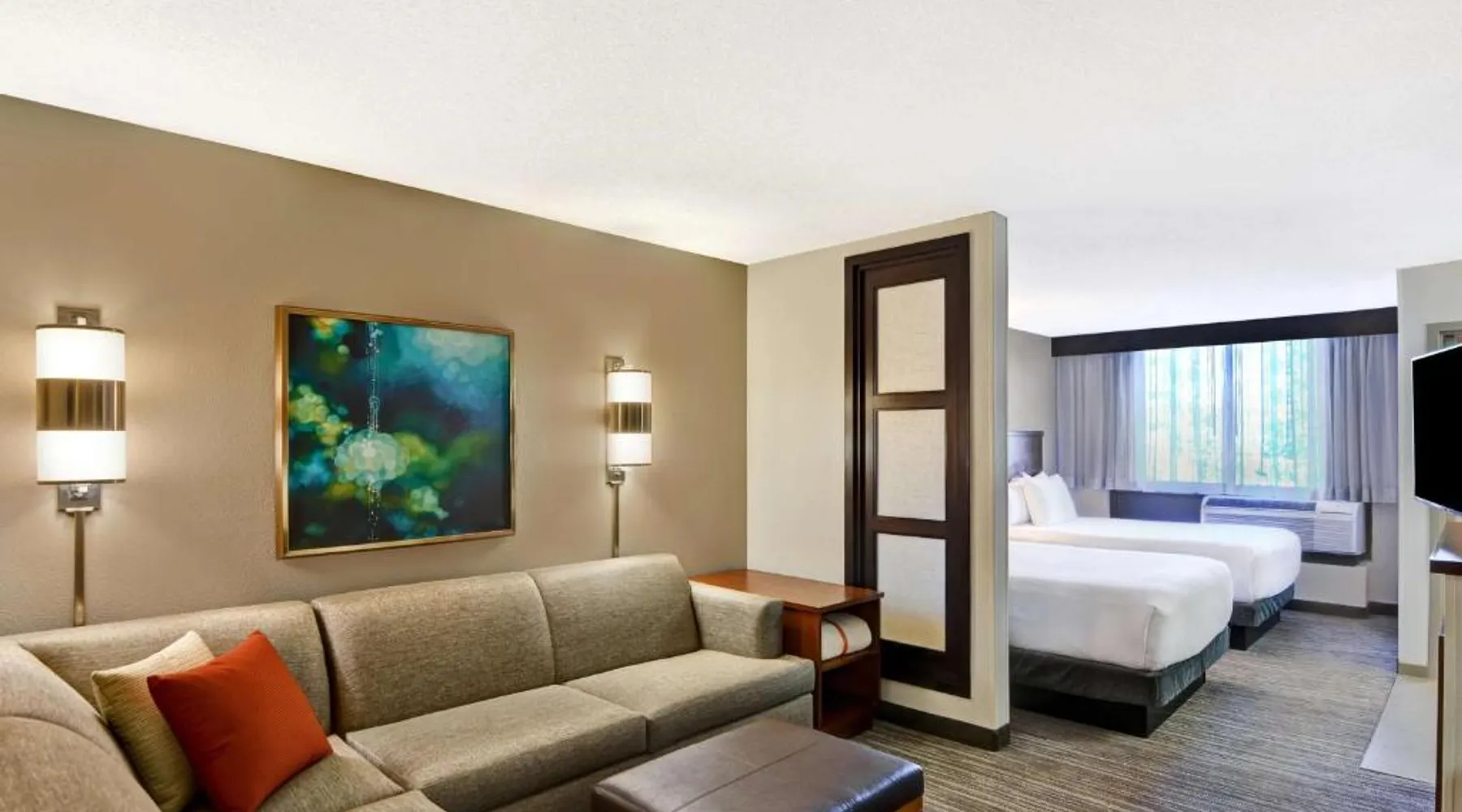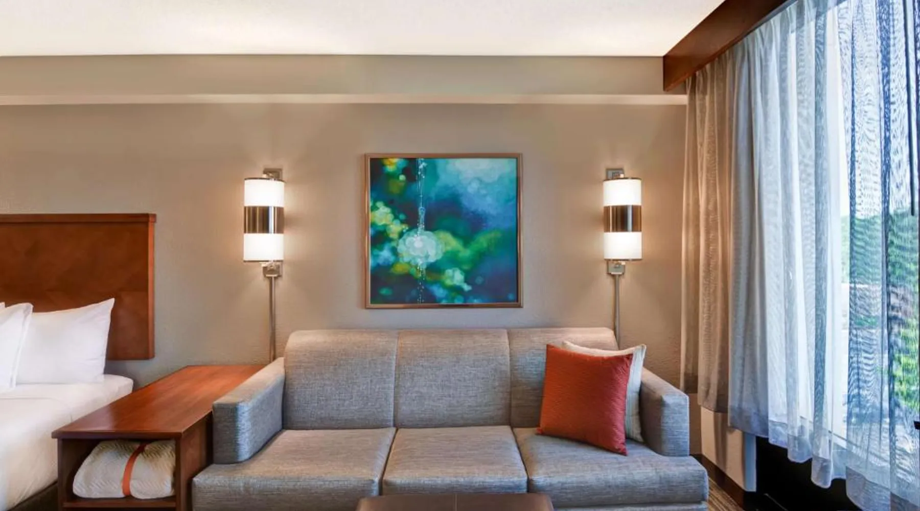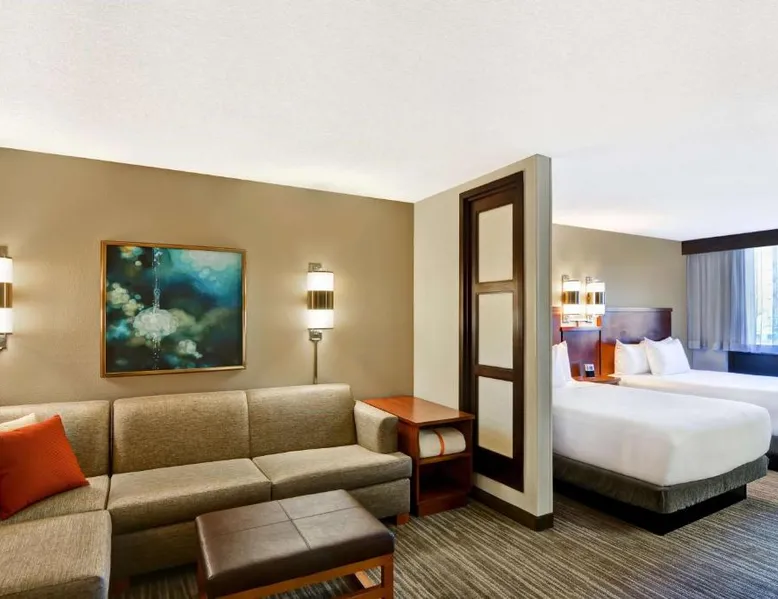 Offering an outdoor pool and a fitness center, Hyatt Place Memphis Wolfchase is located 10 minutes' walk from Wolfchase Galleria Mall. Free WiFi is provided. Rooms at this Memphis hotel come standard with air conditioning and a seating area. There is also a small refrigerator. The private bathroom comes with a bath or shower and a hairdryer. Extras include a sofa, a desk, and bed linen. A business center and meeting/banquet facilities are available at Memphis Wolfchase Hyatt Place. Other facilities include luggage storage and a 24-hour front desk. Free parking is offered to guests. Enjoy a beer, cocktail, or coffee at the onsite Bakery Café. The 24/7 Gallery Menu offers flatbreads, salads and burgers. The hotel is less than 30 minutes' drive from Beale Street and Graceland. Memphis International Airport is 20 mi from the property. Offering free toiletries, this quadruple room includes a private bathroom with a bath, a shower and a hairdryer. The spacious air-conditioned quadruple room offers a flat-screen TV with cable channels, a private entrance, a tea and coffee maker and a seating area. The unit has 1 bed.