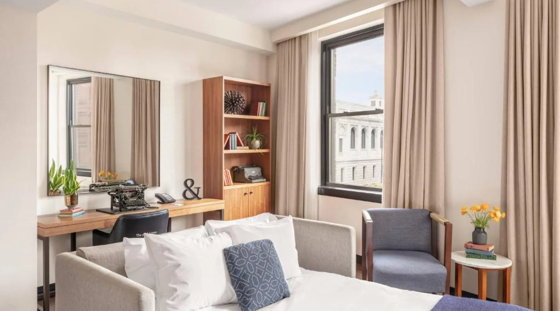 Offering a restaurant and a fitness center, The Press Hotel, Autograph Collection is located in Portland. Each room here will provide you with air conditioning. There is also a refrigerator. Featuring a bath or shower, private bathroom also comes with free toiletries. You can enjoy city view from the room. Extras include a desk, a safety deposit box and bed linen. At The Press Hotel, Autograph Collection you will find an airport shuttle. Other facilities offered at the property include meeting facilities. The hotel is 328 feet from Portland Downtown Historic District, 1312 feet from Wadsworth Longfellow House and 2953 feet from Victoria Mansion. Portland International Jetport Airport is 2.5 mi away. The spacious double room offers air conditioning, a tea and coffee maker, as well as a private bathroom boasting a walk-in shower and a bath. The double room features a seating area, a wardrobe, a safe deposit box, a sofa and a flat-screen TV with streaming services. The unit has 1 bed.