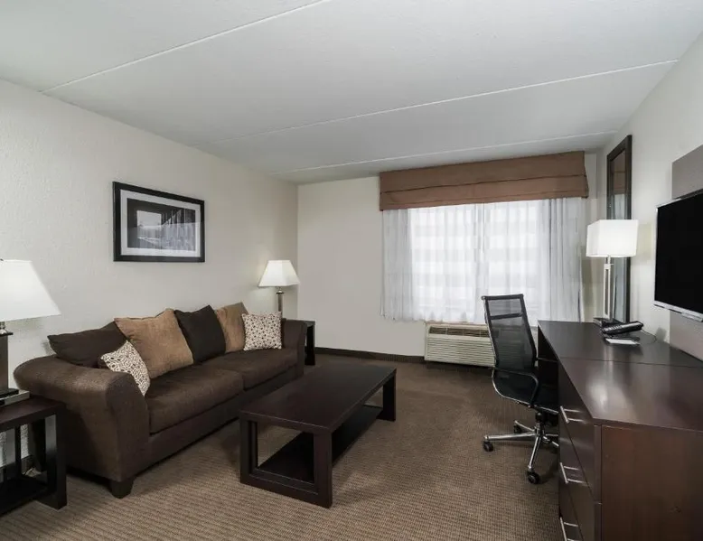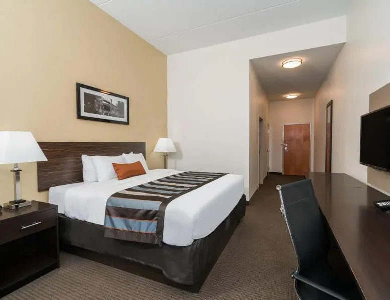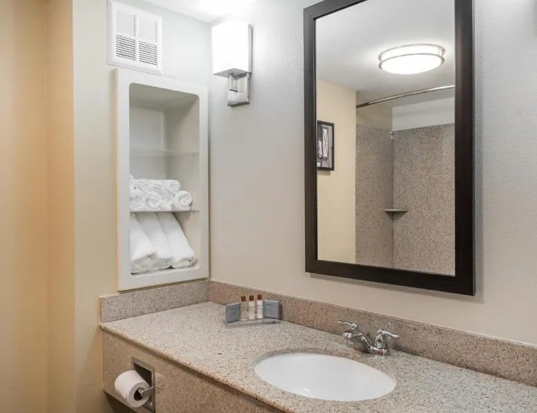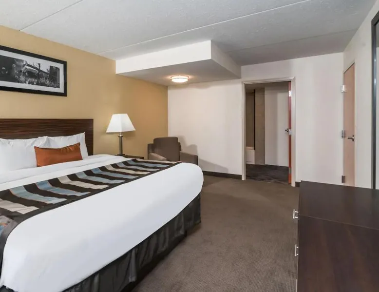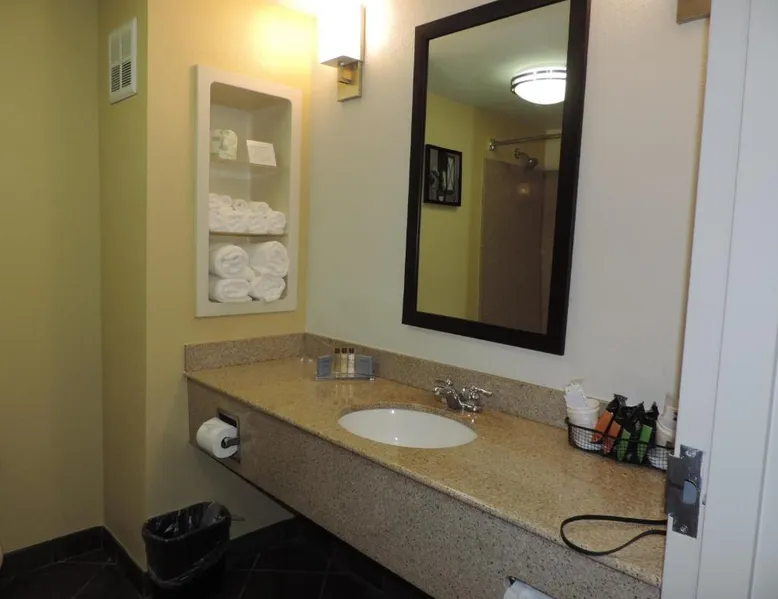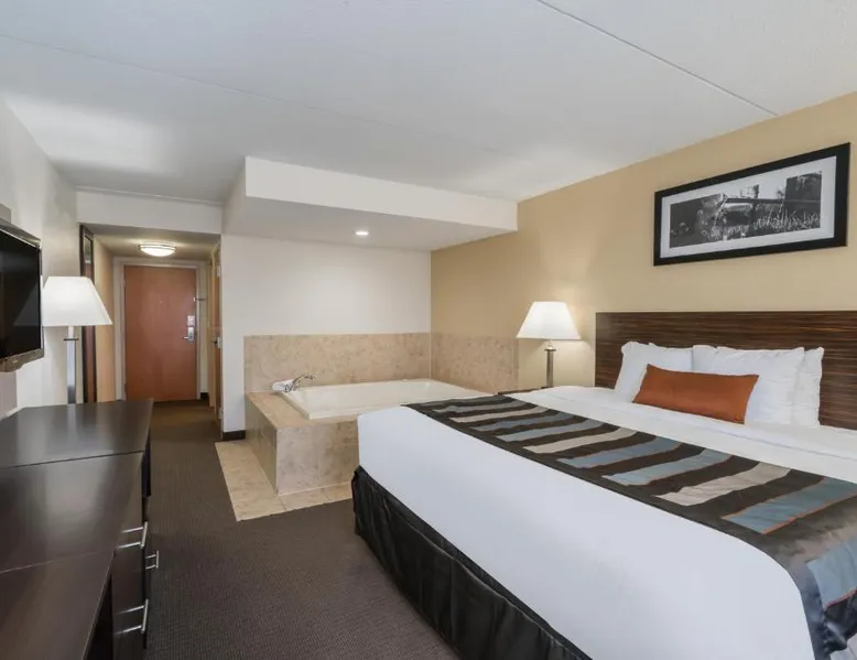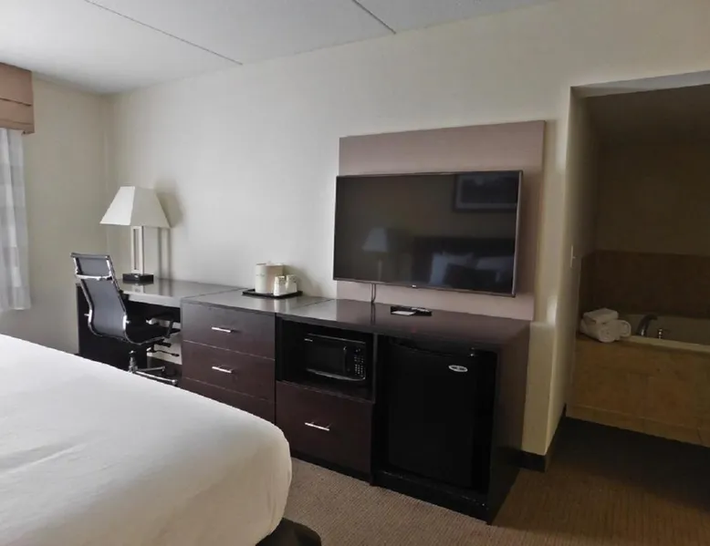 Comfortable Accommodations: Rooms feature air-conditioning, private bathrooms, tea and coffee makers, hairdryers, refrigerators, work desks, free toiletries, microwaves, bath or showers, carpeted floors, TVs, and wardrobes. Exceptional Facilities: Guests enjoy a fitness center, terrace, indoor swimming pool, and free WiFi. Additional amenities include a hot tub, kitchen, sofa bed, dishwasher, and dining area. Convenient Location: Located in Bowling Green, the hotel is 66 mi from Nashville International Airport. Nearby attractions include Sloan Convention Center (3 mi), CrossWinds Golf Course (3.1 mi), and Western Kentucky University (5 mi). Guest Satisfaction: Guests appreciate the room cleanliness, breakfast provided by the property, and attentive staff and service support. The spacious suite has 1 bedroom and 1 bathroom with a bath or a shower and free toiletries. In the well-fitted kitchen, guests will find a stovetop, a refrigerator, a dishwasher and kitchenware. The suite features carpeted floors, a seating area with a flat-screen TV with cable channels, air conditioning, a tea and coffee maker, as well as a dining area. The unit has 1 bed.