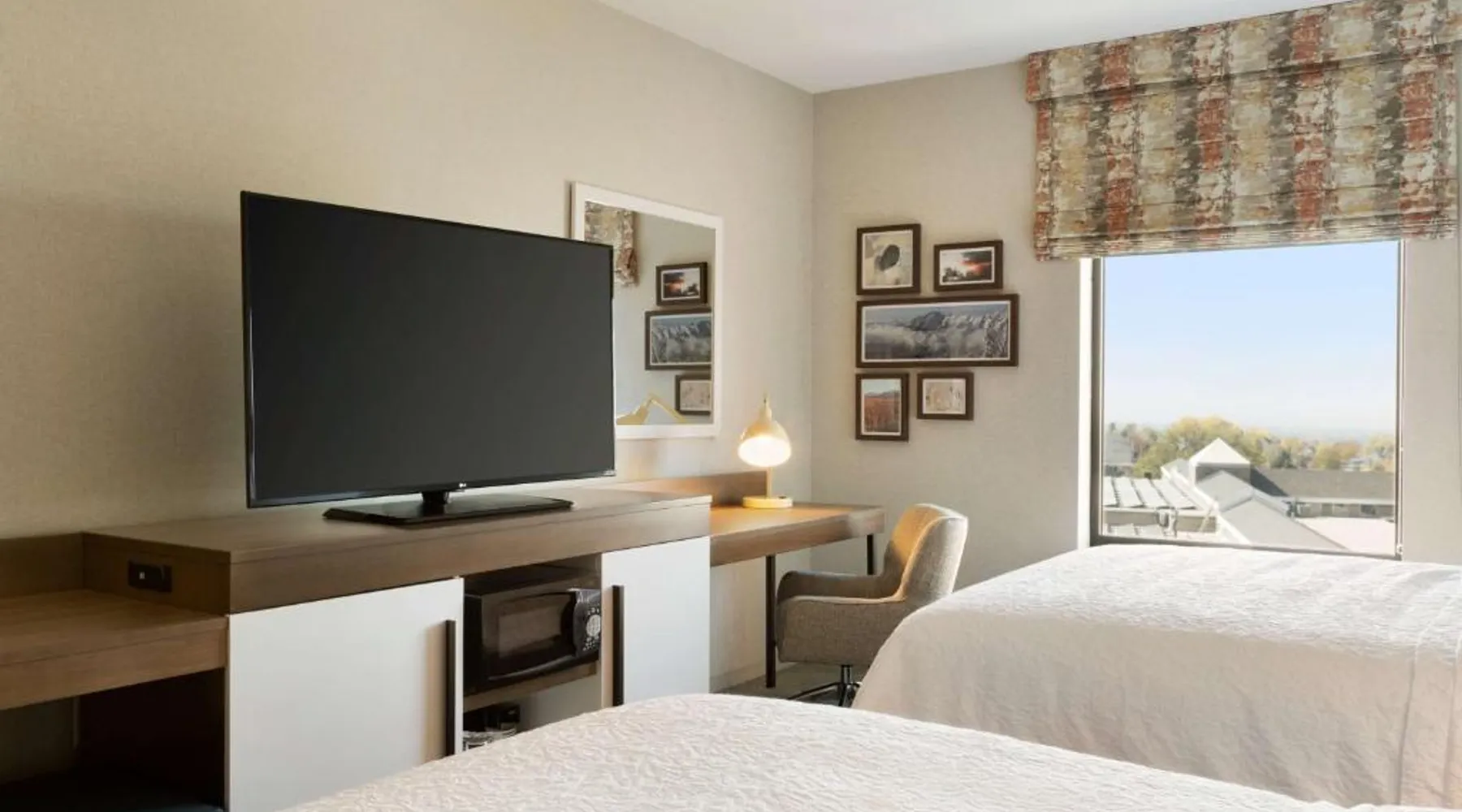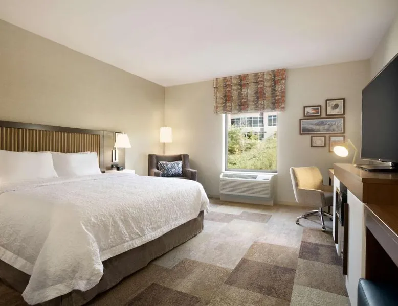 Comfortable Accommodations: Hampton Inn Salt Lake City Cottonwood in Holladay offers comfortable rooms with free WiFi, air-conditioning, and modern amenities. Each room includes a tea and coffee maker, hairdryer, refrigerator, microwave, and TV. Leisure Facilities: Guests can enjoy a fitness center, indoor swimming pool, and hot tub. Additional facilities include a lounge, outdoor fireplace, and outdoor seating area. Free on-site parking is available. Convenient Location: Located 17 mi from Salt Lake City International Airport, the hotel is near attractions such as Utah Museum of Natural History (11 mi) and Utah's Hogle Zoo (9.3 mi). Guests appreciate the convenient location and excellent service. This double room offers a tea and coffee maker and a flat-screen TV. The unit offers 1 bed.