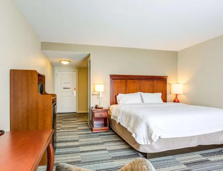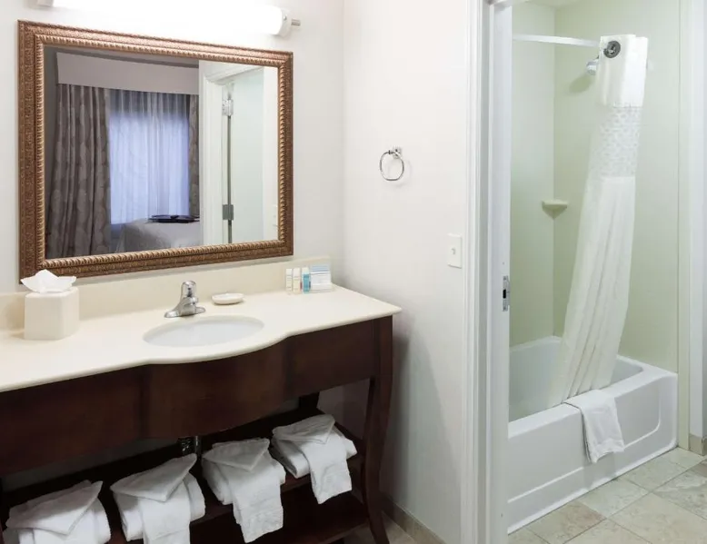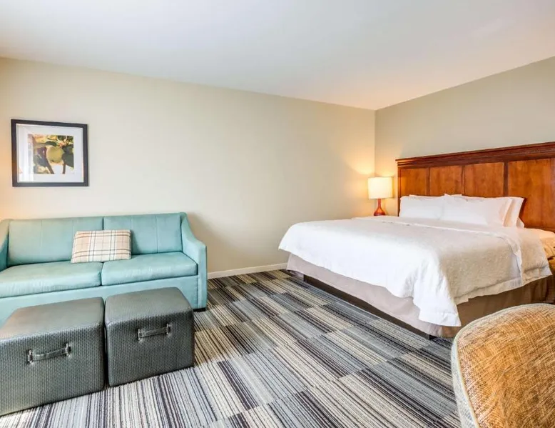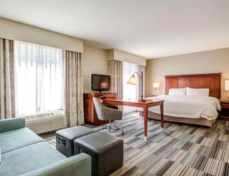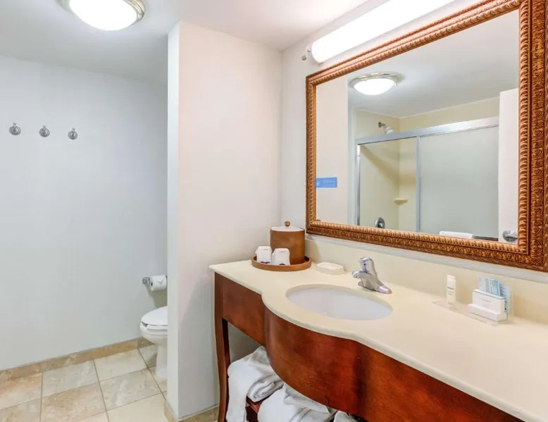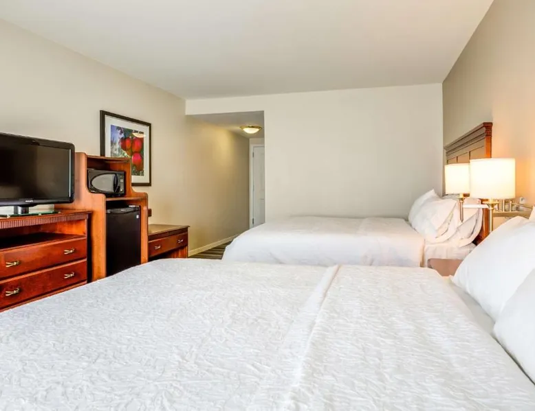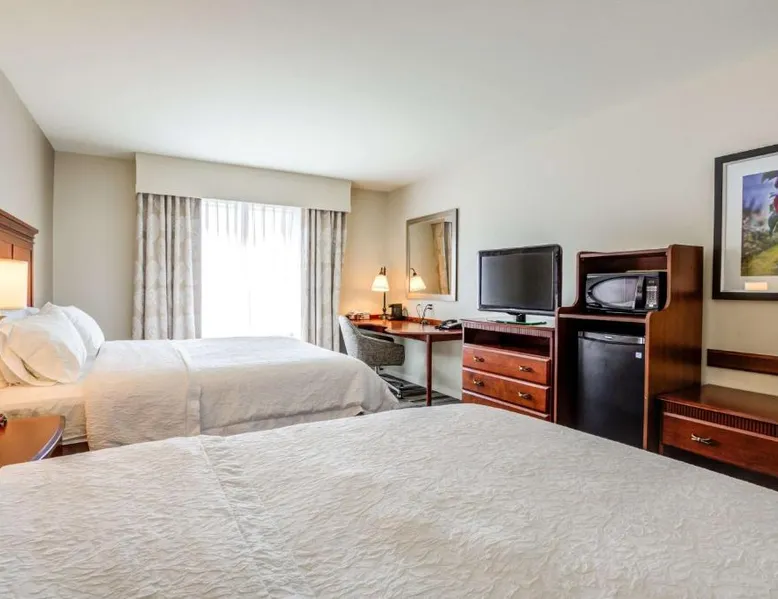 Comfortable Accommodations: Hampton Inn & Suites Westford-Chelmsford in Westford offers family rooms with private bathrooms, kitchenettes, and sofa beds. Each room includes a tea and coffee maker, refrigerator, microwave, TV, and wardrobe. Exceptional Facilities: Guests enjoy a fitness center, indoor swimming pool, and free WiFi. Additional amenities include a lounge, fitness room, elevator, 24-hour front desk, daily housekeeping, child-friendly buffet, electric vehicle charging station, business area, bicycle parking, and luggage storage. Delicious Breakfast: A continental and American buffet breakfast with warm dishes is served daily. Free on-site parking is available. Nearby Attractions: Minute Man National Historical Park is 21 mi away, Brattle Theater and Peabody Museum 28 mi, Harvard Square and Harvard University 29 mi, and Central Square Theater 30 mi from the hotel. Offering free toiletries, this quadruple room includes a private bathroom with a shower and a hairdryer. The quadruple room offers a tea and coffee maker, a wardrobe, a carpeted floor, heating and a flat-screen TV. The unit has 2 beds.