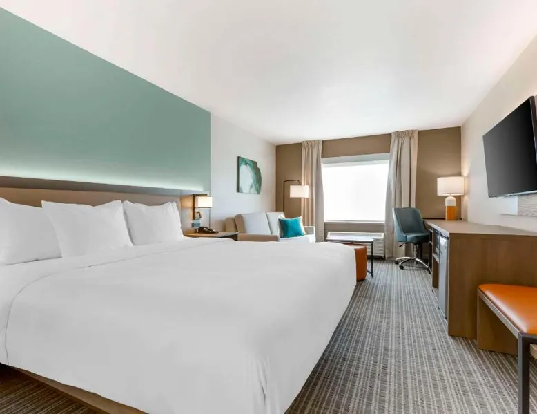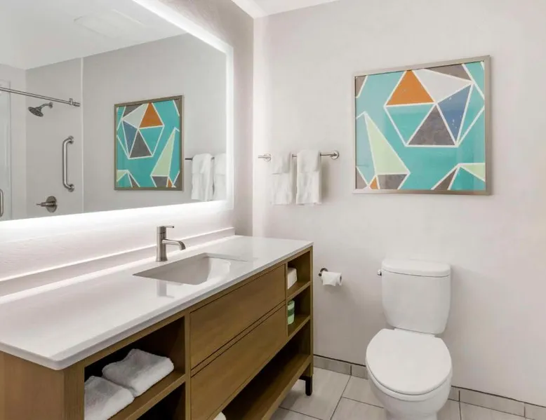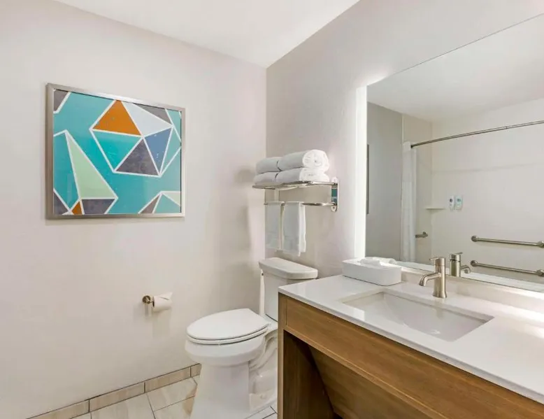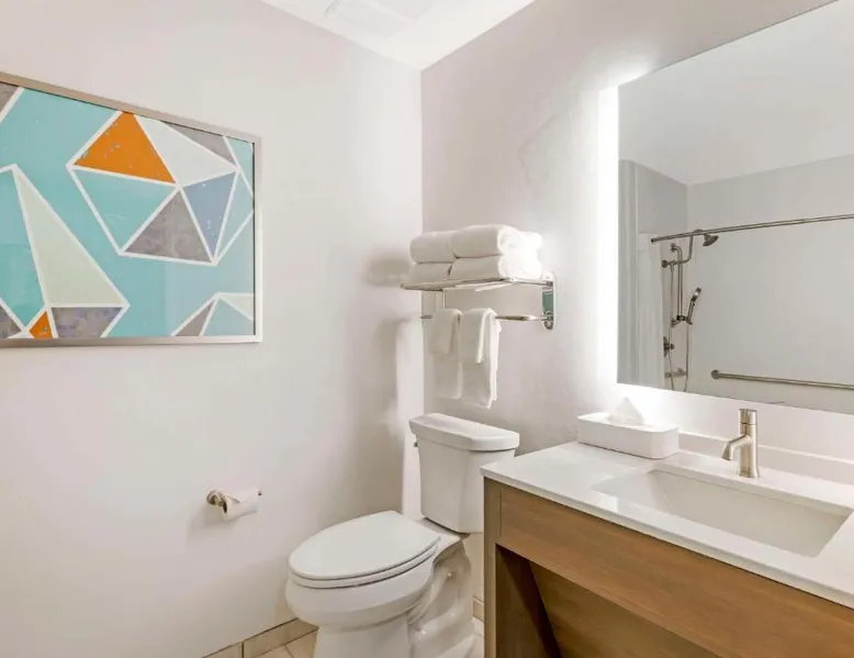 The Comfort Suites at Tucson Mall is centrally located one block from the Tucson Mall. Additional full-service amenities at this hotel include free local calls, free newspaper, exercise room, outdoor pool and hot tub. All suites include sitting areas with sofa sleepers, desks or tables, coffee makers, irons, ironing boards, microwaves, refrigerators and voice mail. Keep your electronic devices charged with the recharge device including AC and USB outlets provided in all guest rooms. Business travelers will appreciate conveniences like free wireless high-speed Internet access in all rooms and access to copy and fax services. Business suites, featuring spacious work desks, ergonomic chairs and two telephone lines, are available. There are banquet and meeting rooms available to accommodate most events and business functions. Hotel features free hot breakfast featuring eggs, meat, yogurt, fresh fruit, cereal and more, including a choice of hot waffle flavors. If you're leaving early, a Your Suite Success Grab & Go bag is available for the two hours prior to breakfast. There is a wide variety of restaurants located less than one mile from the hotel. This hotel is convenient to points of interest, including the Arizona State Museum, the Arizona-Sonora Desert Museum, Old Tucson Studios, Davis-Monthan Air Force Base, Tucson Electric Park, the Pima Air and Space Museum, the Tucson Convention Center and the University of Arizona. The Northwest Medical Center and Northwest Pet Clinic are both just minutes away. The hotel is only 20 miles from the Tucson International Airport. Featuring free toiletries, this suite includes a private bathroom with a shower and a hairdryer. This wheelchair accessible suite has air conditioning, a seating area with a flat-screen TV and a roll-in shower.
