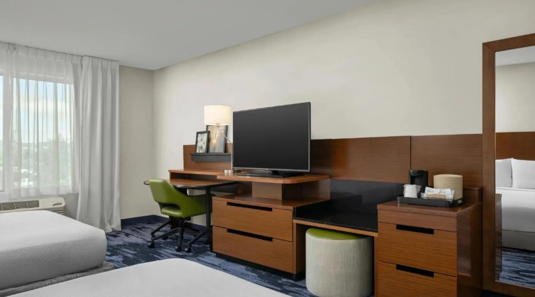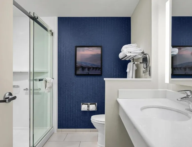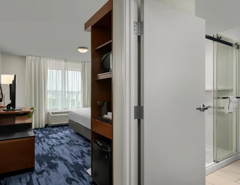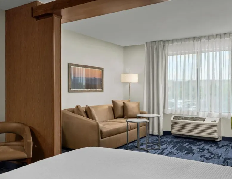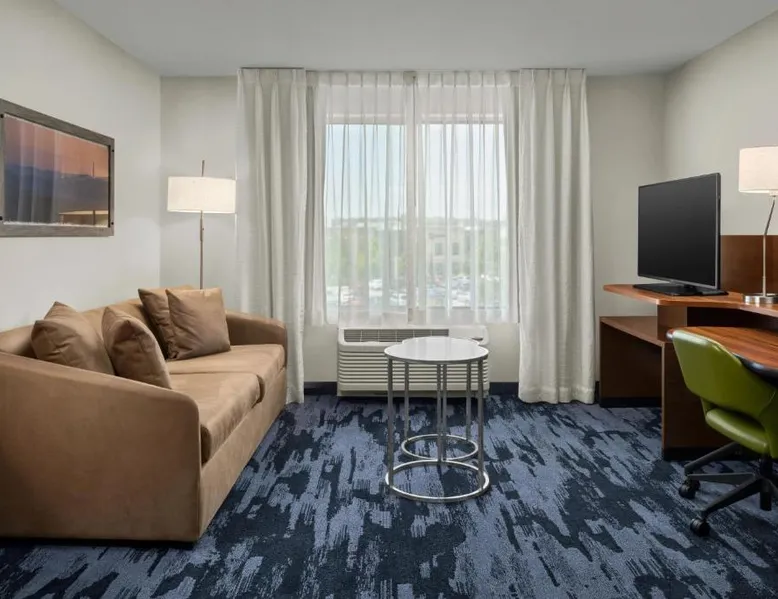 Comfortable Accommodations: Fairfield Inn & Suites by Marriott Salt Lake City Midvale in Midvale offers rooms with air-conditioning, private bathrooms, and free WiFi. Each room includes a work desk, refrigerator, and TV. Leisure Facilities: Guests can enjoy a fitness center, indoor swimming pool, and hot tub. Additional amenities include an outdoor fireplace, outdoor seating area, and a business area. Dining Options: A continental buffet breakfast is served daily, featuring warm dishes, fresh pastries, cheese, fruits, and juice. Convenient Location: Located 14 mi from Salt Lake City International Airport, the hotel is near attractions such as Salt Lake Tabernacle (12 mi) and Temple Square (12 mi). The air-conditioned suite has 1 bedroom and 1 bathroom with a bath or a shower and a hairdryer. This suite features a seating area, heating and a flat-screen TV with cable channels. The unit has 2 beds.