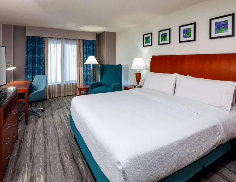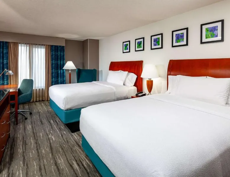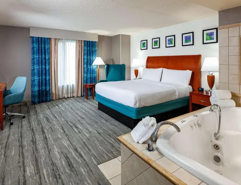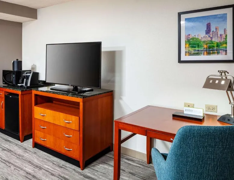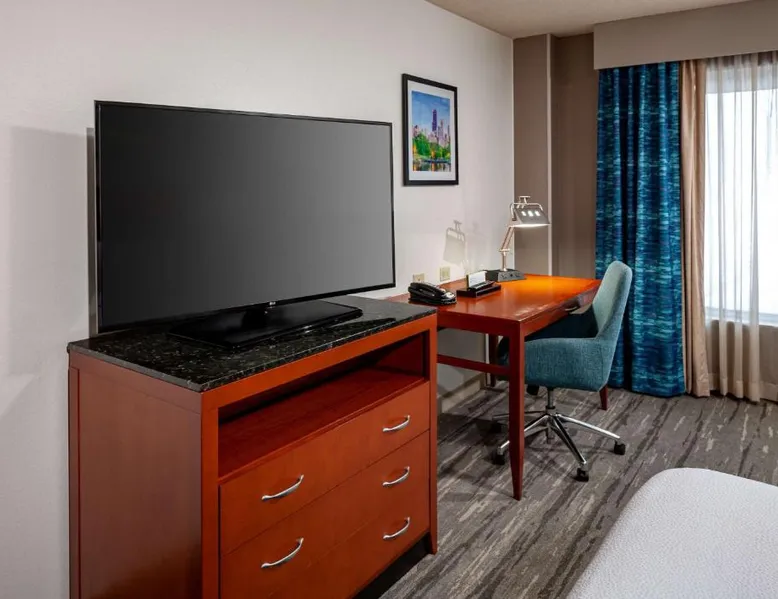 The Hilton Garden Inn Chicago O'Hare Airport is located 3 mi from the O’Hare International Airport. Offering an airport shuttle, it is adjacent to Rivers Casino and within 30 minutes' drive of downtown Chicago. The guest rooms include a microwave, a refrigerator, and a coffee machine. The rooms also are equipped with free WiFi and a flat-screen TV. An MP3 docking station is provided in every room. O’Hare Airport Hilton Garden Inn features an indoor pool with a basketball hoop. The hotel also has a children’s pool with a mushroom fountain. Guests at the O’Hare Hilton Garden can dine at the on-site restaurant, which features American cuisine. Located just off Interstate 294, The Hilton Garden Inn is 1 mi from the Allstate Arena and The Rosemont Theater entertainment venues. The property is 2 mi from Fashion Outlets of Chicago. The spacious double room features air conditioning, a tea and coffee maker, heating, as well as a flat-screen TV with cable channels. The unit has 1 bed.