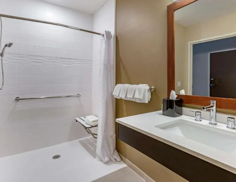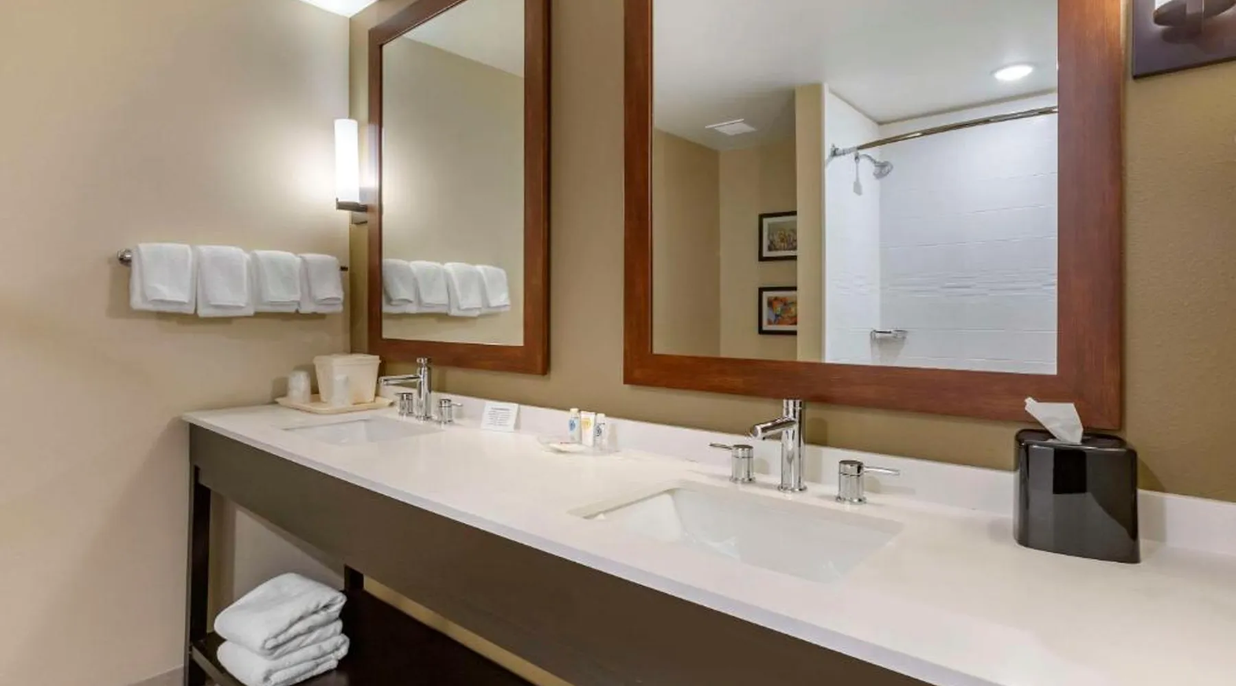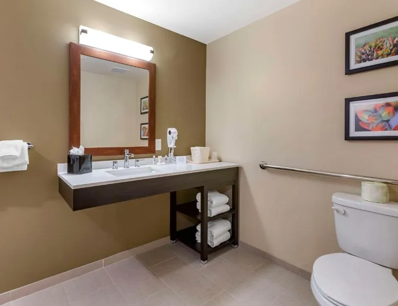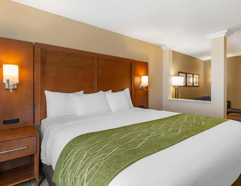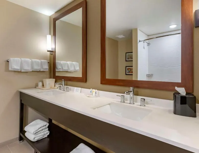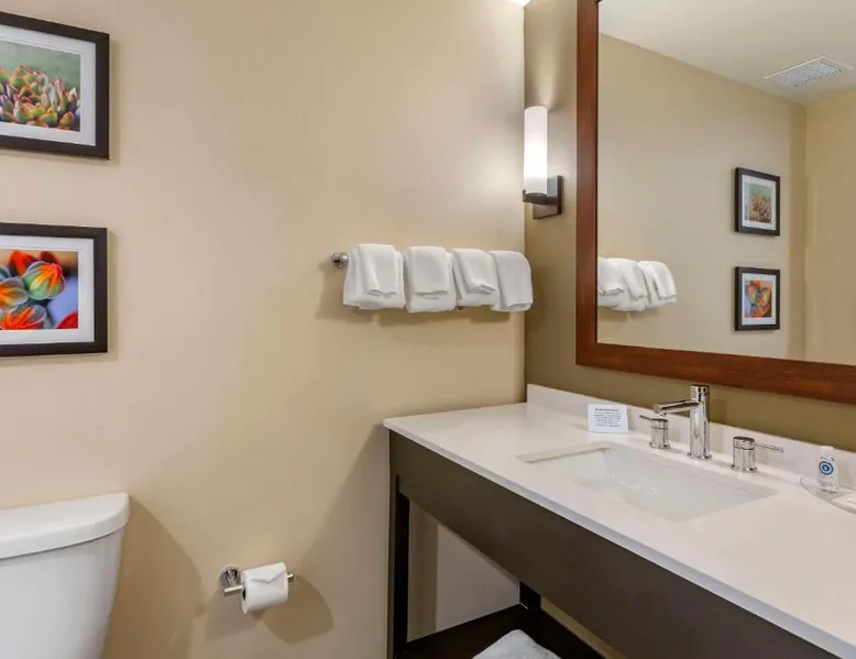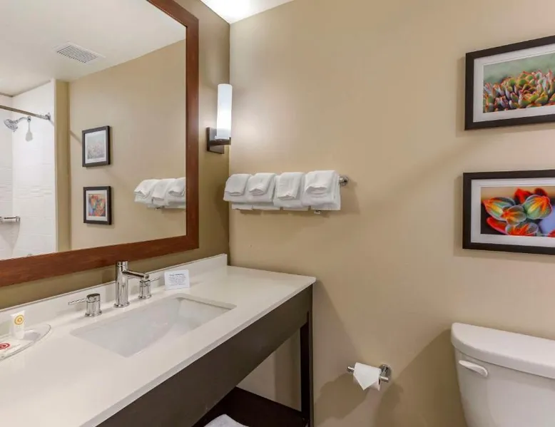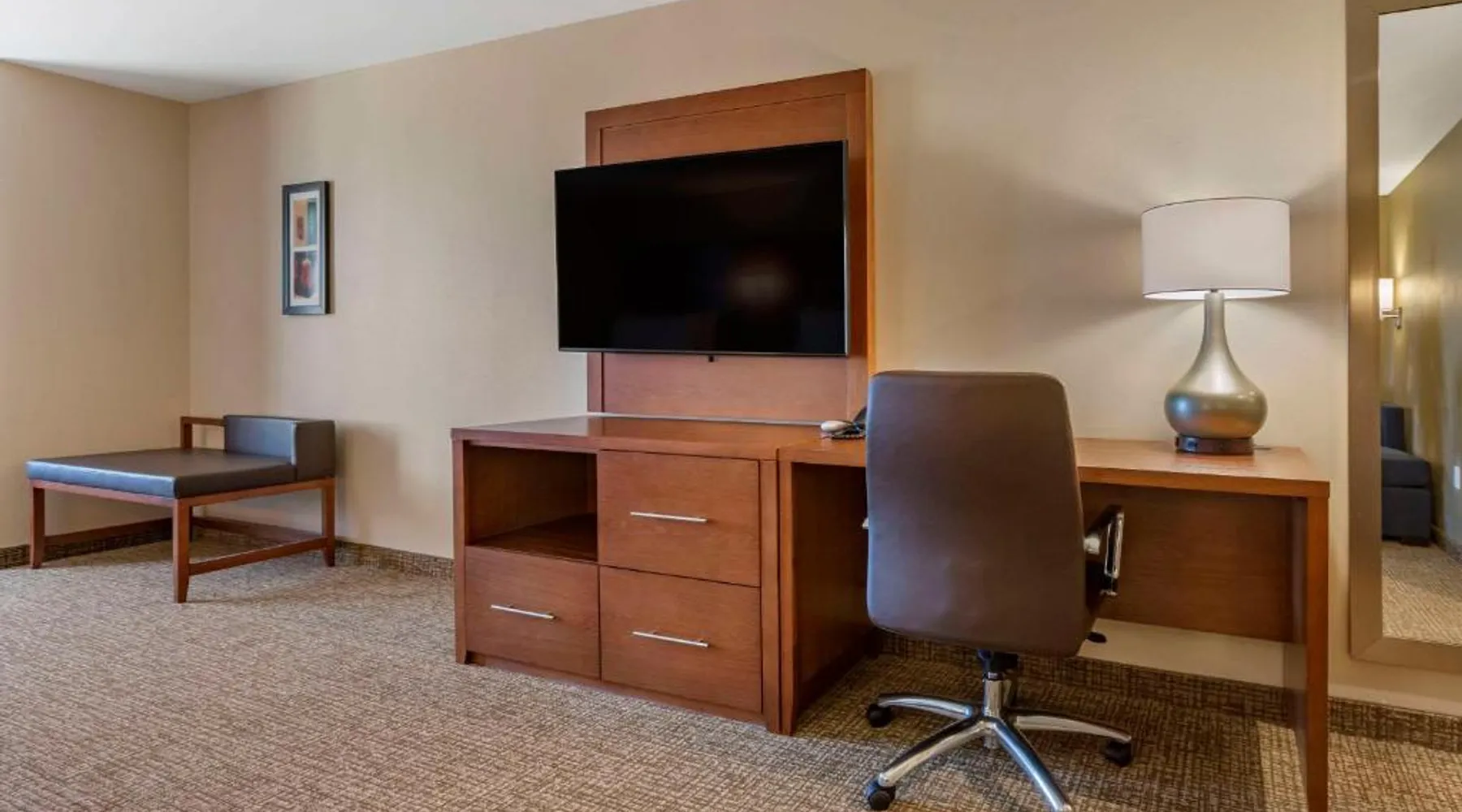 Comfortable Accommodations: Comfort Suites Albuquerque Airport in Albuquerque offers rooms with free WiFi, air-conditioning, and private bathrooms. Guests enjoy amenities such as a fitness center, hot tub, and 24-hour front desk. Convenient Facilities: The hotel features a kitchen, work desk, and seating area. Additional amenities include a tea and coffee maker, hairdryer, refrigerator, microwave, and TV. Prime Location: Located 0.6 mi from Albuquerque International Sunport, the property is near attractions like University Stadium (2.5 mi), National Hispanic Cultural Center (3.1 mi), and ABQ BioPark - Zoo (4.3 mi). Guest Satisfaction: Highly rated for its attentive staff, clean rooms, and comfortable accommodations. The family room offers a tea and coffee maker. The unit has 3 beds.