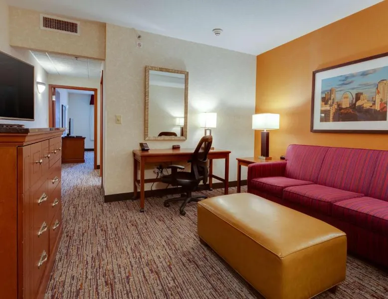 Just off Interstate 44 and less than 7 miles from the Gateway Arch and Saint Louis city center, this Forest Park hotel features guest rooms with free Wi-Fi and flat-screen TV. A complimentary hot breakfast is served each morning. A microwave and fridge are included in each room at Drury Inn & Suites Near Forest Park. Guests can enjoy a swim in the indoor pool or relax in the hot tub at Forest Park Drury Inn & Suites. The on-site fitness center is available 24-hours a day at this 100% nonsmoking property. Lambert St Louis International Airport is 20 minutes’ drive away. Forest Park is just 1 mile away. The Anheuser-Busch Brewery, Busch Stadium and the Scottrade Center are within 10 minutes' drive. This suite consists of 1 living room, 1 separate bedroom and 1 bathroom with a bath or a shower and free toiletries. This wheelchair accessible suite features air conditioning, a seating area with a flat-screen TV and a toilet with grab rails. The unit offers 2 beds.