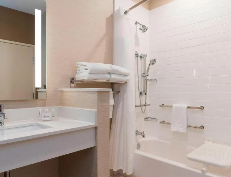 Comfortable Accommodations: Fairfield Inn & Suites by Marriott West Monroe in West Monroe offers family rooms with air-conditioning, private bathrooms, and free WiFi. Each room includes a work desk, sofa bed, and TV. Leisure Facilities: Guests can enjoy a saltwater swimming pool, fitness center, sun terrace, and outdoor seating area. Additional amenities include a lounge, fitness room, and electric vehicle charging station. Convenient Location: Located 9.3 mi from Monroe Regional Airport, the hotel is a 7-minute walk from Ike Hamilton Expo Center. Nearby attractions include Malone Stadium and Thomas Assembly Center, each 29 mi away. Guest Services: The property provides free on-site private parking, express check-in and check-out, and a 24-hour front desk. Guests appreciate the attentive staff and excellent service support. The double room offers air conditioning. The unit has 3 beds.