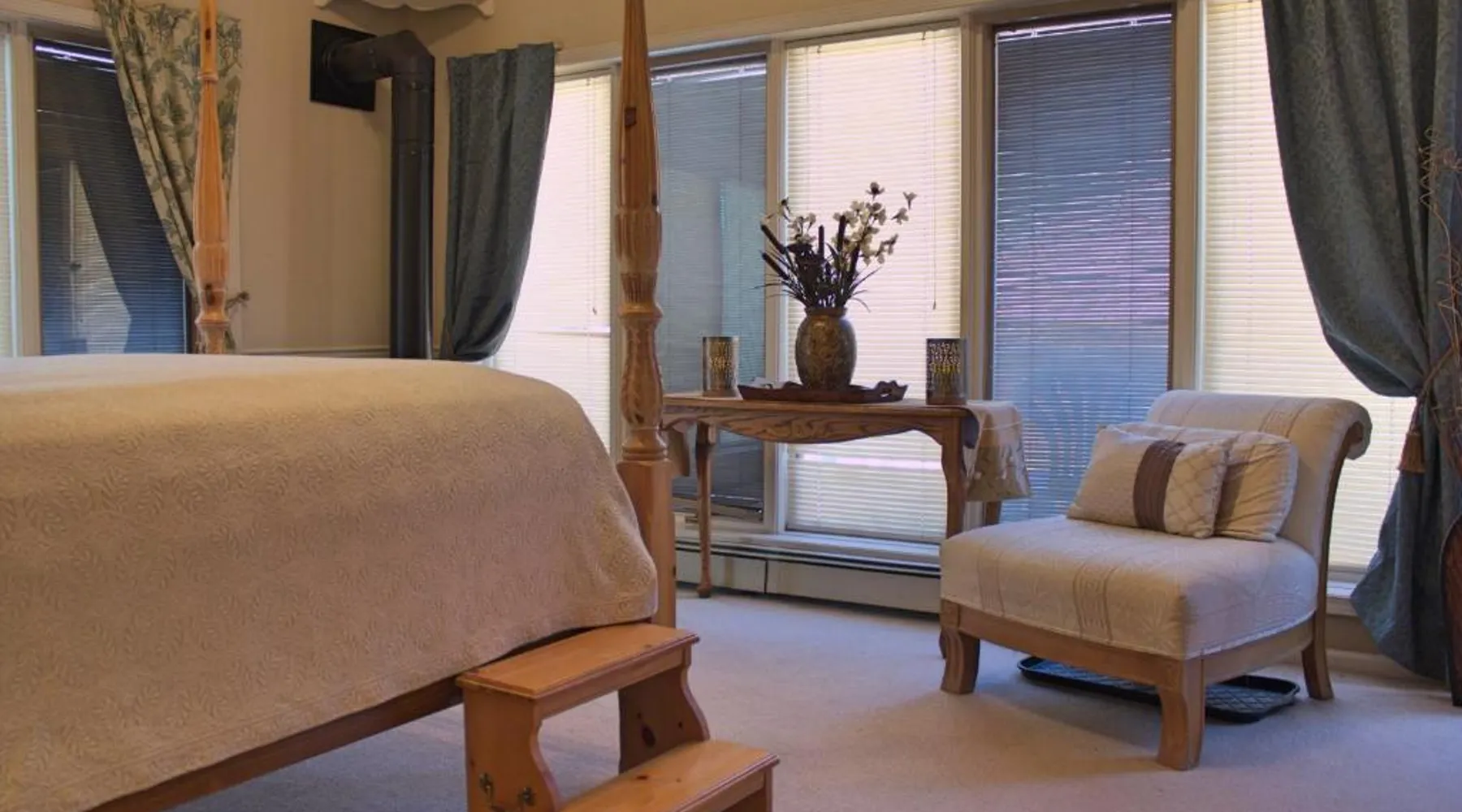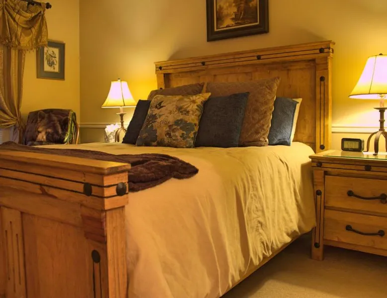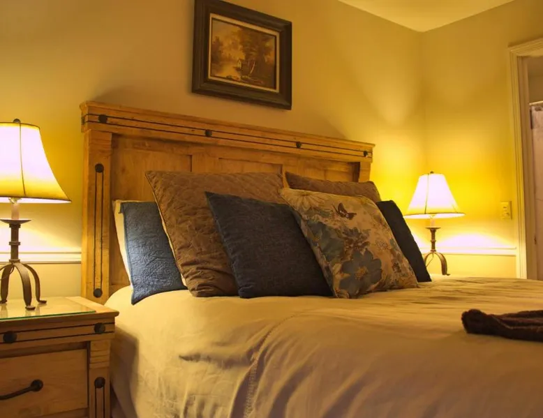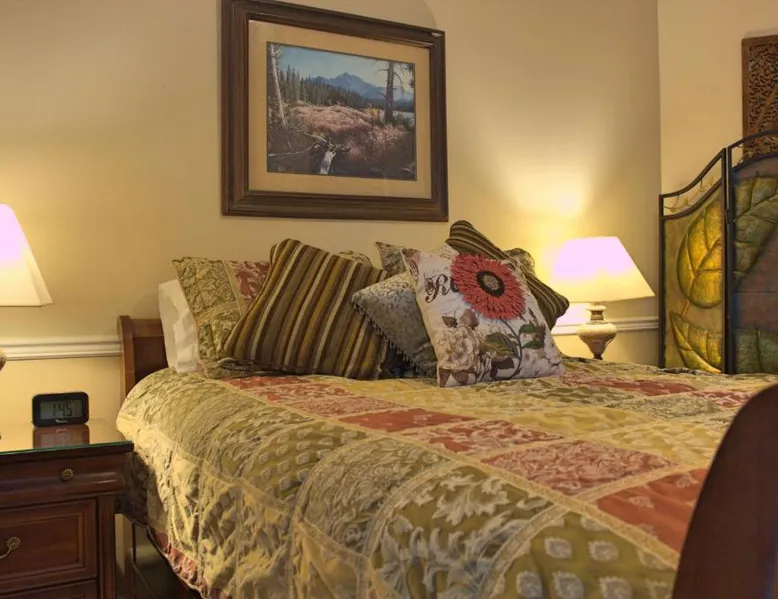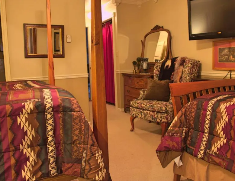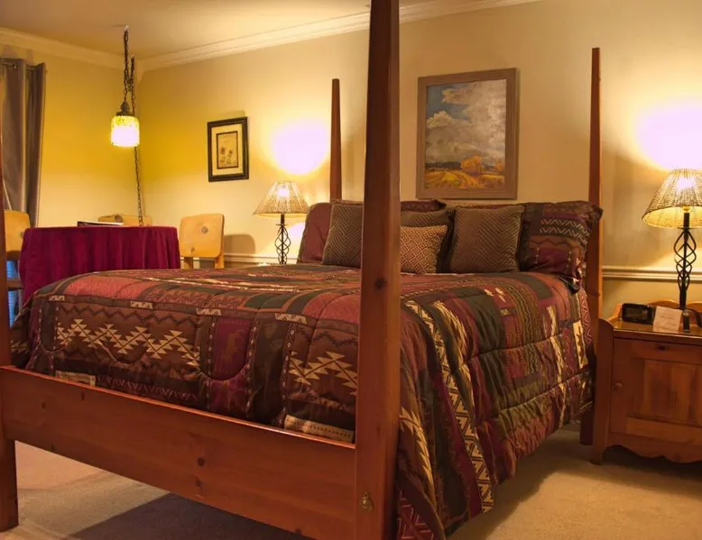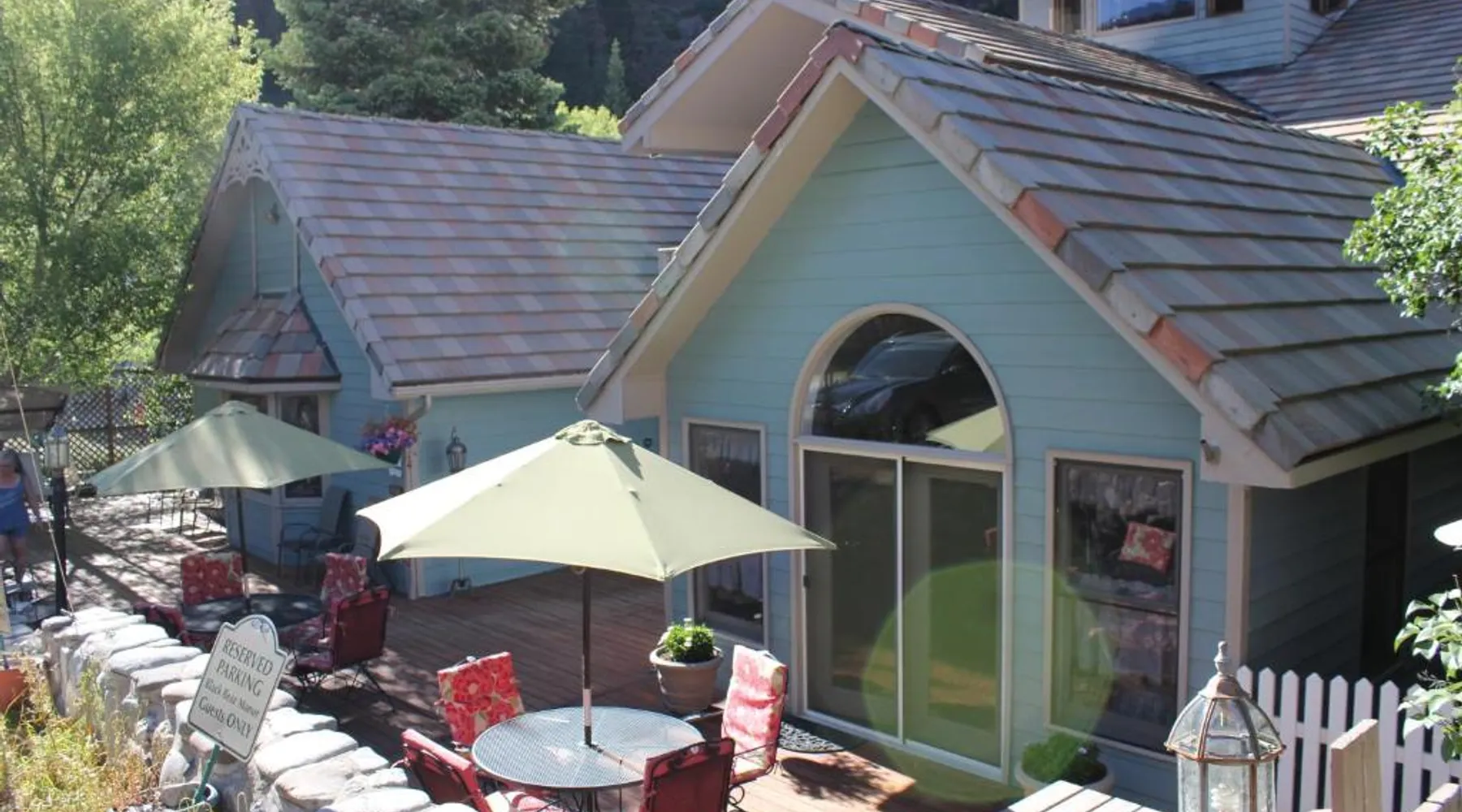 Comfortable Accommodations: Black Bear Manor in Ouray offers adults-only bed and breakfast accommodations with private bathrooms, air-conditioning, and mountain views. Each room includes a balcony, spa bath, and free WiFi. Relaxing Facilities: Guests can enjoy a sun terrace, outdoor seating area, and free on-site private parking. Additional amenities include bathrobes, streaming services, and a fireplace. Breakfast and Location: The property provides a highly rated breakfast, with guests appreciating the host and convenient location. Montrose Regional Airport is 37 mi away, and winter sports are available in the surroundings. Room #3 The Riverside Queen is a queen bed private entrance, has new carpet. ROOM DOES NOT HAVE A SITTING AREA*