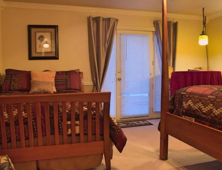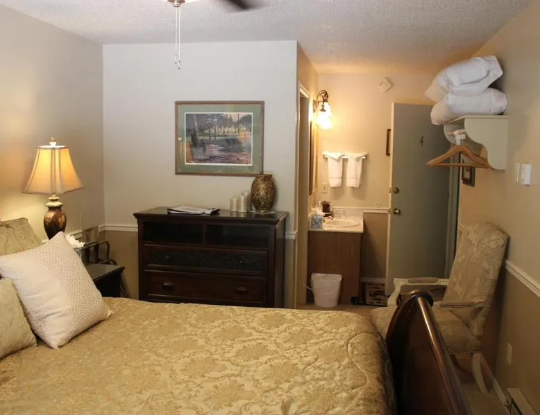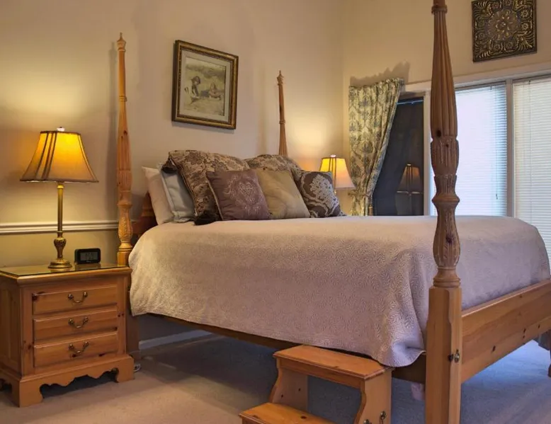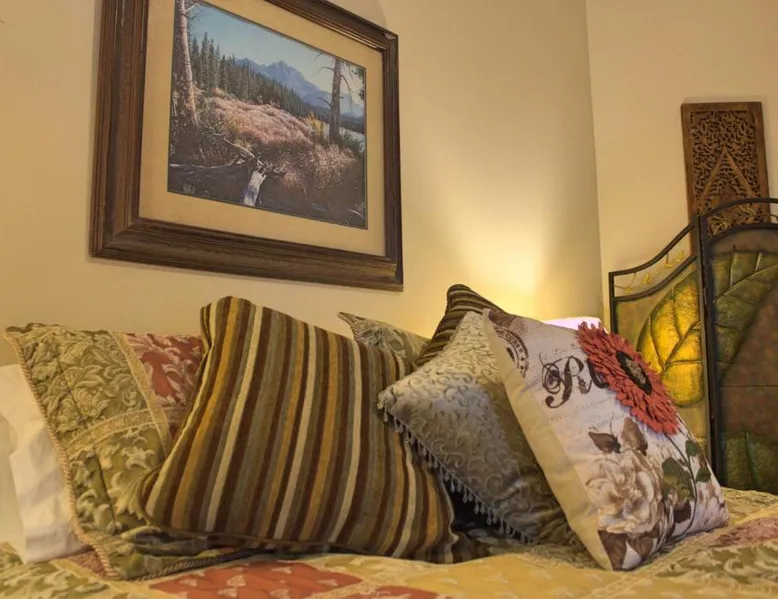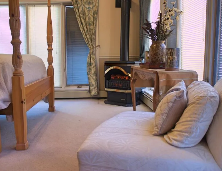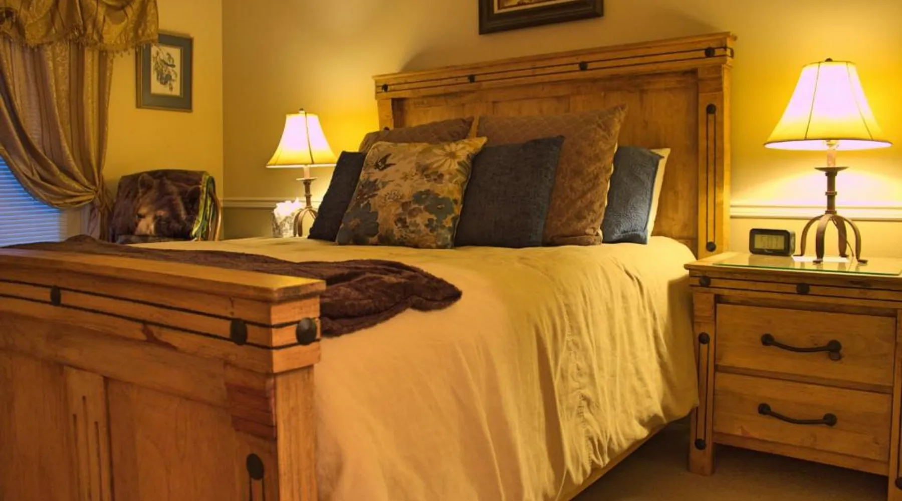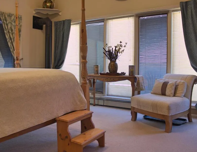 Comfortable Accommodations: Black Bear Manor in Ouray offers adults-only bed and breakfast accommodations with private bathrooms, air-conditioning, and mountain views. Each room includes a balcony, spa bath, and free WiFi. Relaxing Facilities: Guests can enjoy a sun terrace, outdoor seating area, and free on-site private parking. Additional amenities include bathrobes, streaming services, and a fireplace. Breakfast and Location: The property provides a highly rated breakfast, with guests appreciating the host and convenient location. Montrose Regional Airport is 37 mi away, and winter sports are available in the surroundings. Room #3 The Riverside Queen is a queen bed private entrance, has new carpet. ROOM DOES NOT HAVE A SITTING AREA*