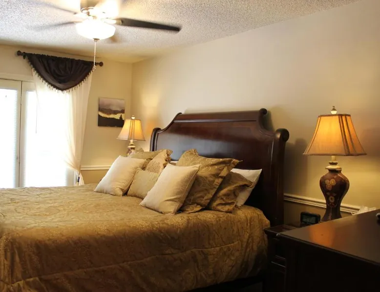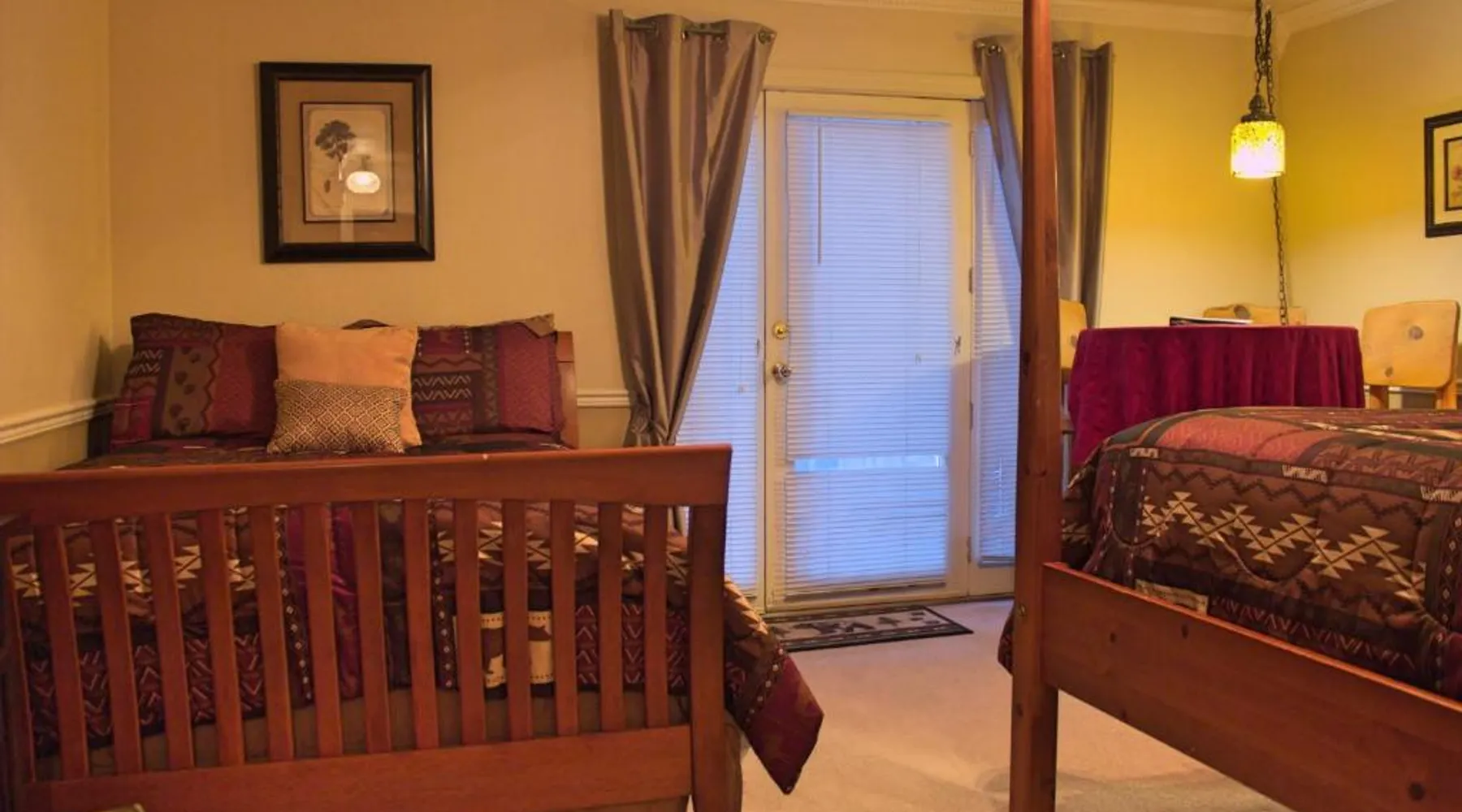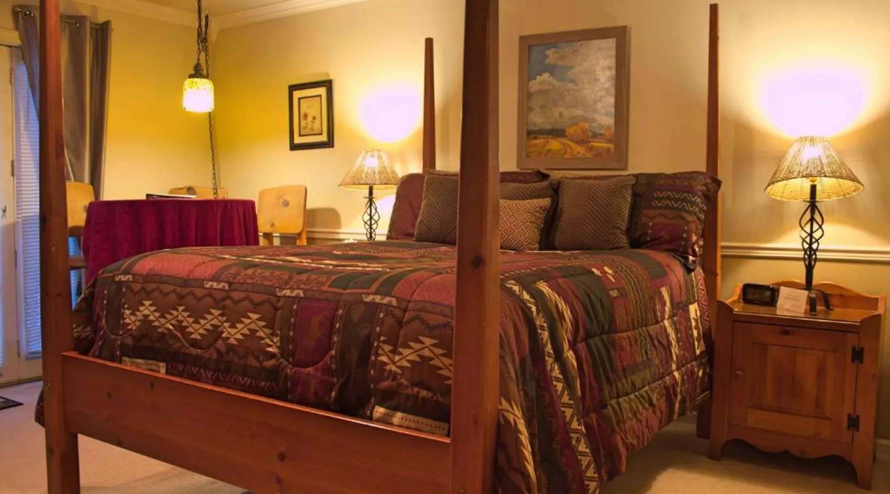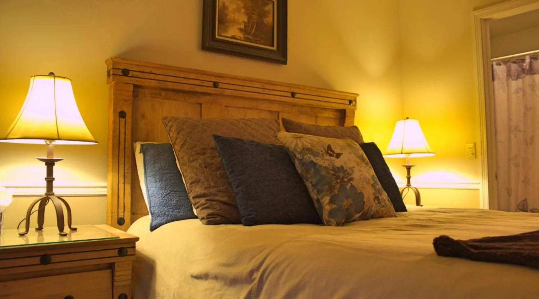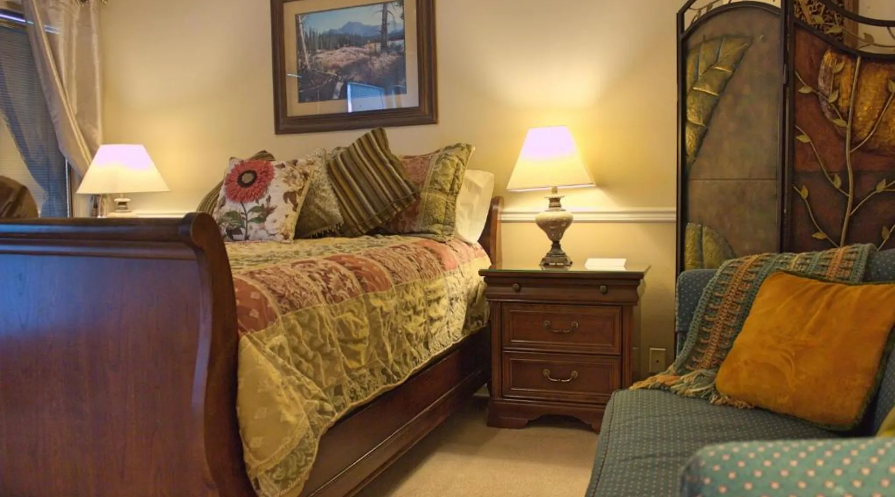 Comfortable Accommodations: Black Bear Manor in Ouray offers adults-only bed and breakfast accommodations with private bathrooms, air-conditioning, and mountain views. Each room includes a balcony, spa bath, and free WiFi. Relaxing Facilities: Guests can enjoy a sun terrace, outdoor seating area, and free on-site private parking. Additional amenities include bathrobes, streaming services, and a fireplace. Breakfast and Location: The property provides a highly rated breakfast, with guests appreciating the host and convenient location. Montrose Regional Airport is 37 mi away, and winter sports are available in the surroundings. Room #3 The Riverside Queen is a queen bed private entrance, has new carpet. ROOM DOES NOT HAVE A SITTING AREA*