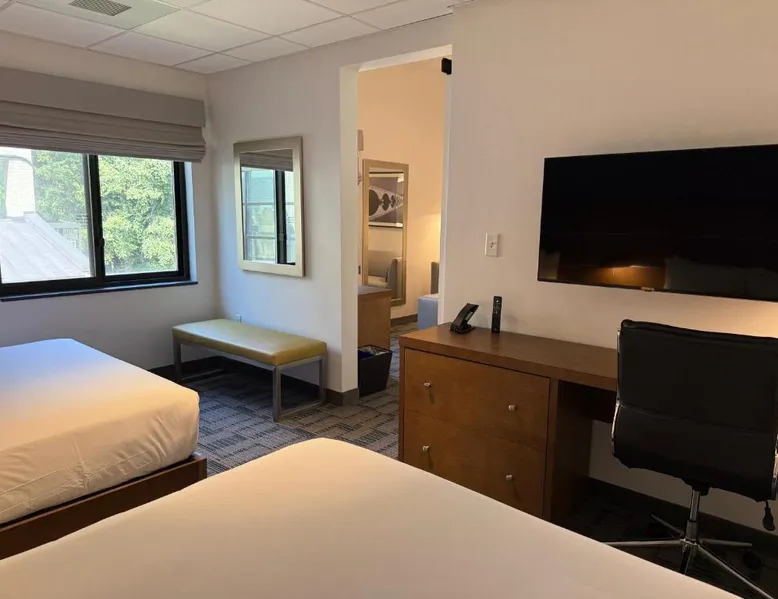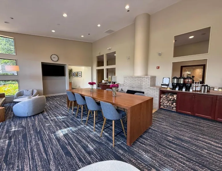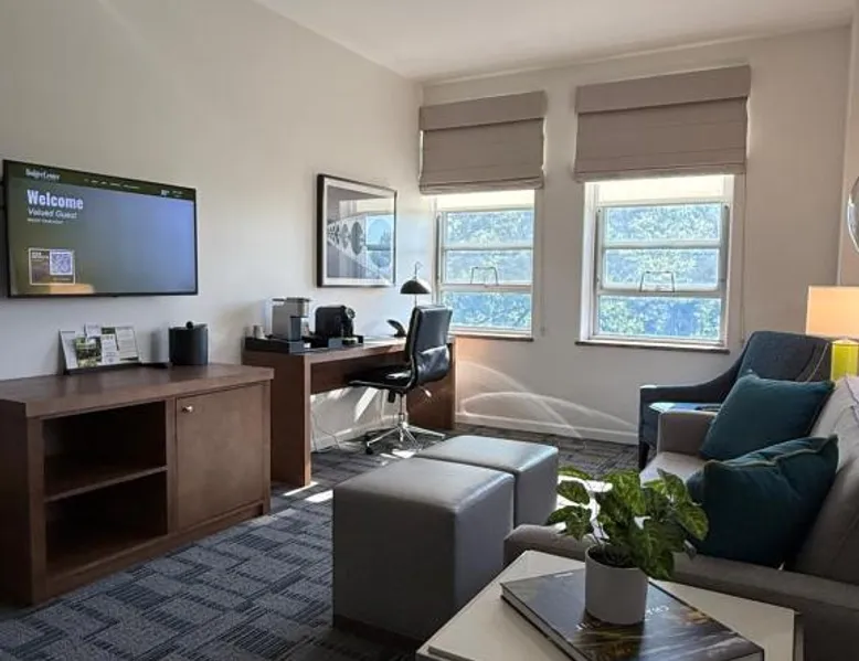 Comfortable Accommodations: Bolger Hotel and Conference Center in Potomac offers air-conditioned rooms with private bathrooms, garden views, and modern amenities. Each room includes a work desk, TV, and free WiFi. Dining and Leisure: The family-friendly restaurant serves American cuisine with vegetarian, vegan, gluten-free, and dairy-free options. Guests can enjoy lunch and dinner in a welcoming ambiance. The hotel features a fitness center, tennis court, and outdoor fireplace. Convenient Location: Located 19 mi from Ronald Reagan Washington National Airport, the hotel is near attractions such as the US Marine Corps War Memorial and the White House. An ice-skating rink is also in the vicinity. The suite offers a dining area and views of the gardens. Select suites feature balconies.