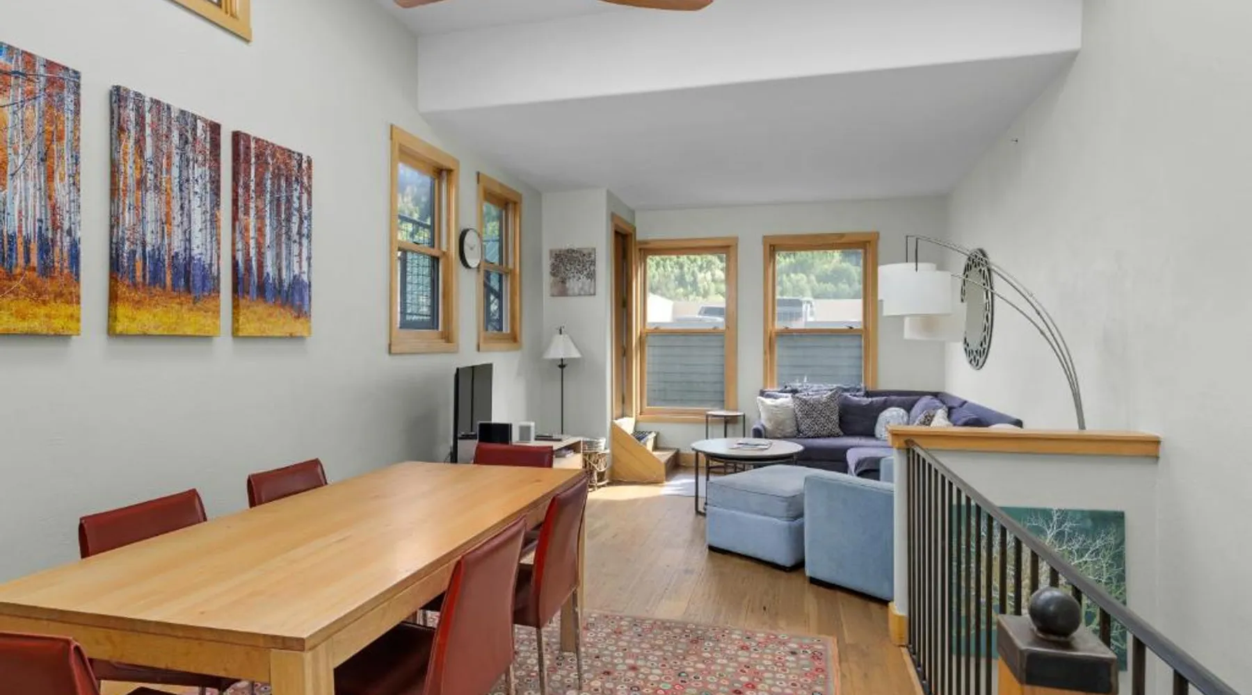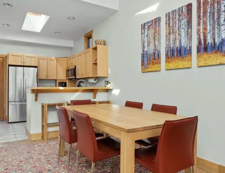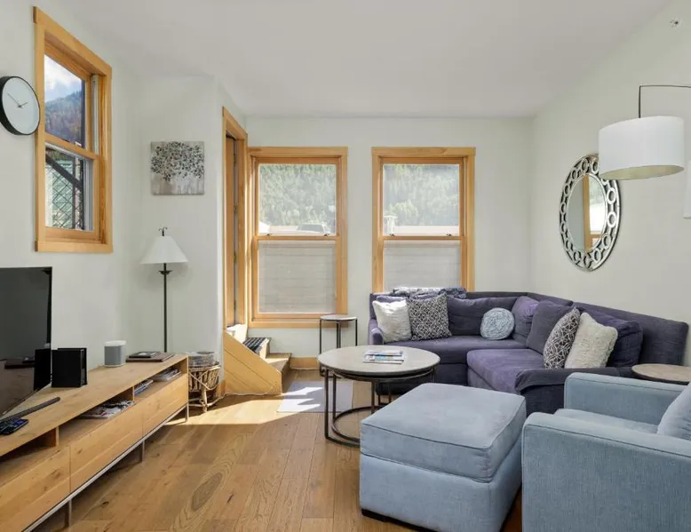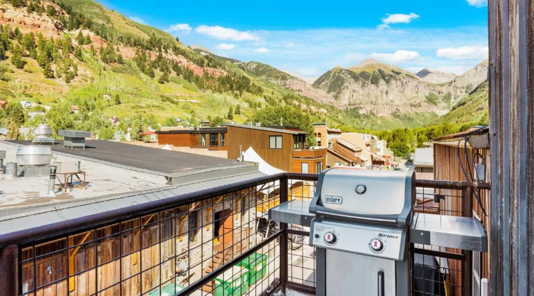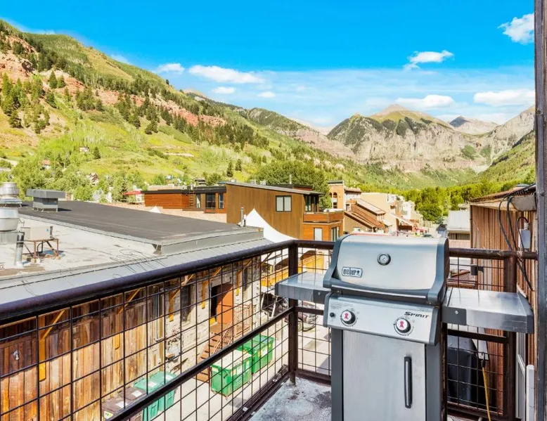 Comfortable Living Space: Livery 2C in Telluride offers a spacious apartment with a balcony and terrace. The property features a private bathroom, fully equipped kitchen, and a dining area. Modern Amenities: Guests enjoy a barbecue, washing machine, and free toiletries. The apartment includes a work desk, seating area, and a TV. Additional amenities include a dishwasher, microwave, and oven. Convenient Location: Located 5.6 mi from Telluride Regional Airport, the apartment provides easy access to skiing and cycling activities. Mountain views enhance the stay. The spacious apartment has 3 bedrooms and 2 bathrooms with a bath and free toiletries. Guests will find a stovetop, a refrigerator, a dishwasher and kitchenware in the well-fitted kitchen. The apartment also comes with a barbecue. Boasting a balcony with mountain views, this apartment also features a coffee machine and a flat-screen TV. The unit has 5 beds.