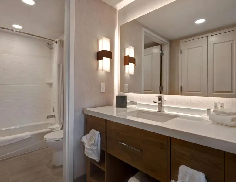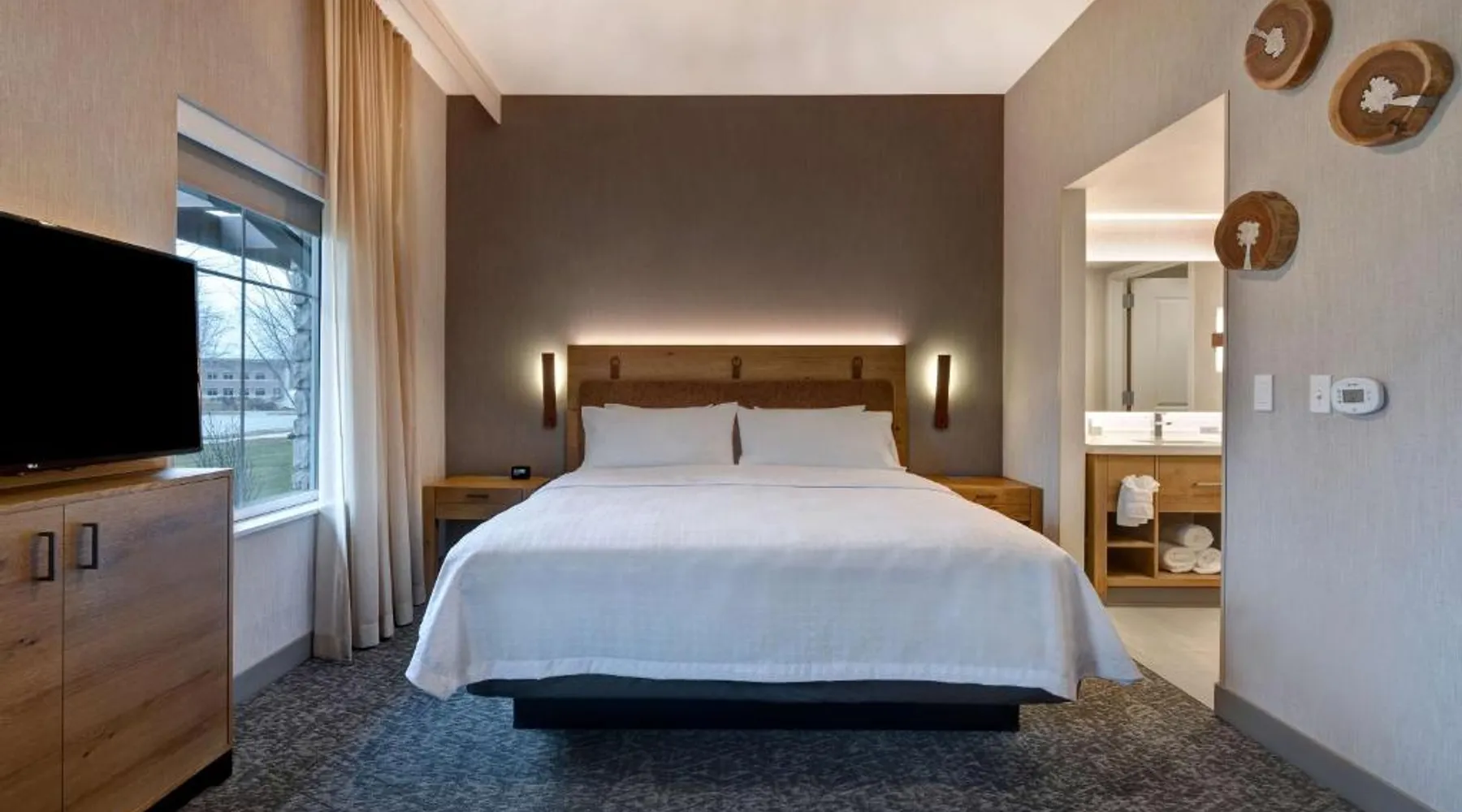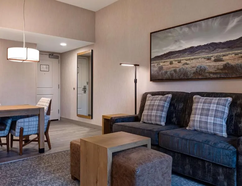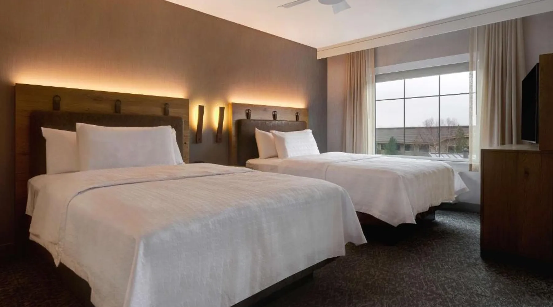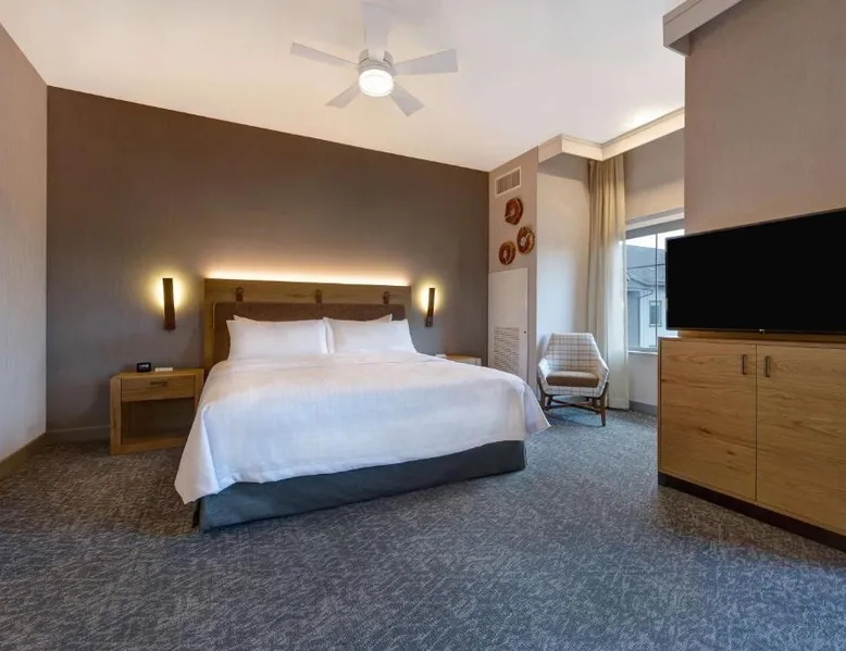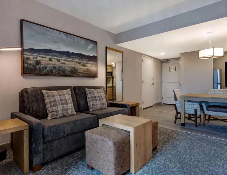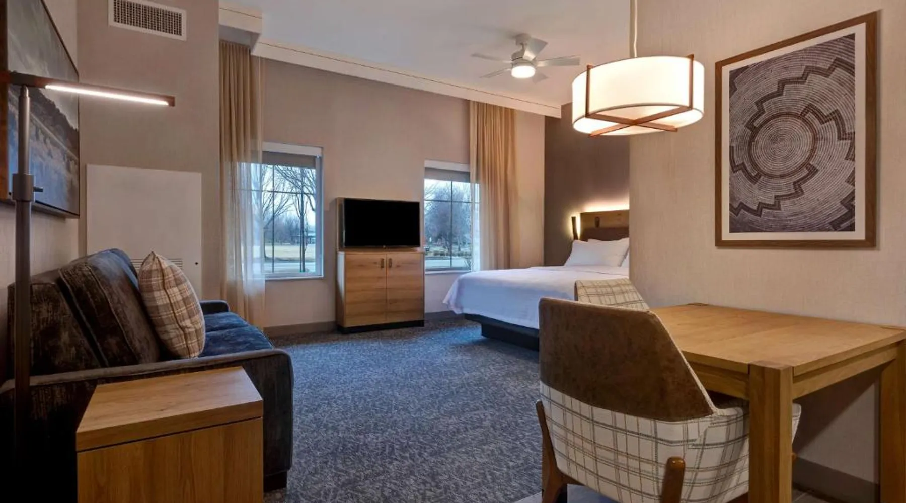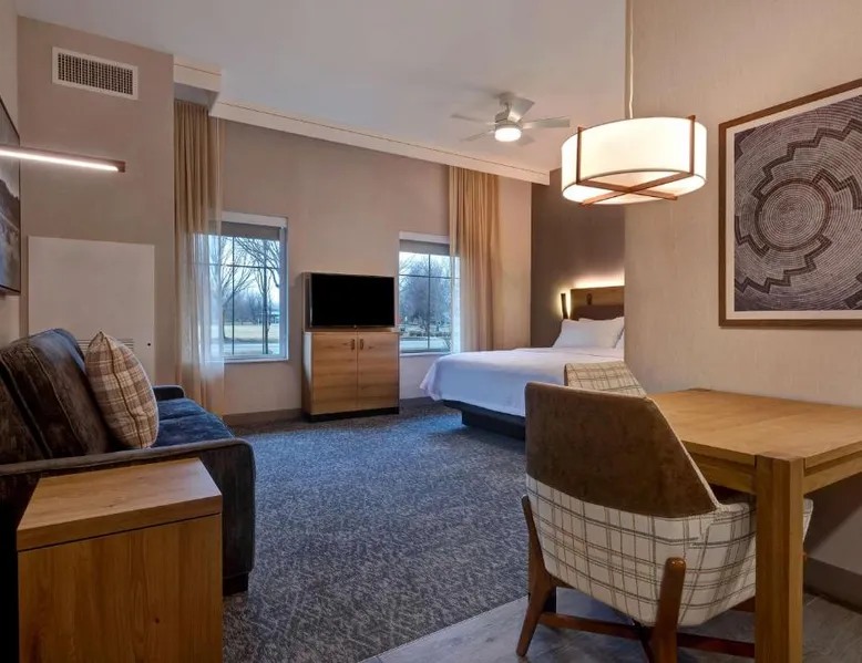 Comfortable Accommodations: Homewood Suites By Hilton Eagle Boise in Eagle offers spacious rooms with air-conditioning, balconies, and free WiFi. Guests enjoy amenities such as a refrigerator, microwave, and kitchenware. Leisure Facilities: The hotel features an indoor swimming pool, fitness room, and outdoor fireplace. Additional facilities include a lounge, outdoor seating area, and electric vehicle charging station. Convenient Location: Located 14 mi from Boise Airport, the property is near attractions like Extramile Arena (11 mi) and Boise Art Museum (9.9 mi). Free on-site private parking is available. Guest Satisfaction: Highly rated for room comfort, breakfast provided by the property, and room cleanliness. In the kitchen, guests will find a refrigerator, a dishwasher, kitchenware and a microwave. Boasting a balcony, this studio also offers air conditioning, a tea and coffee maker and a flat-screen TV. The unit has 2 beds.