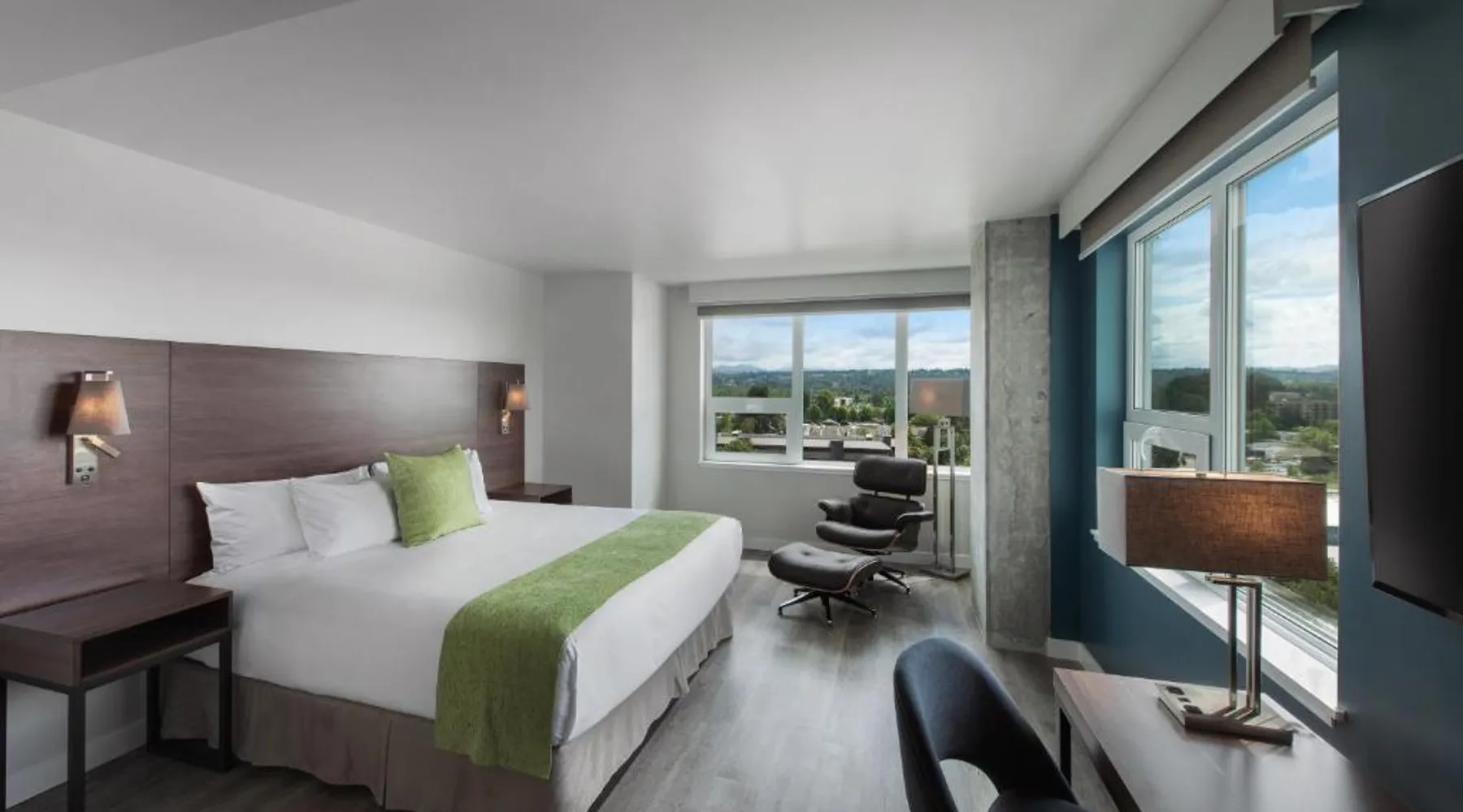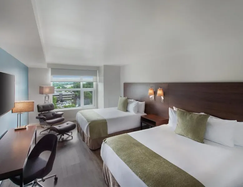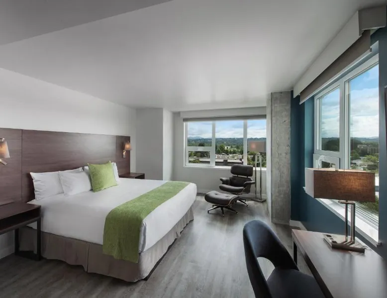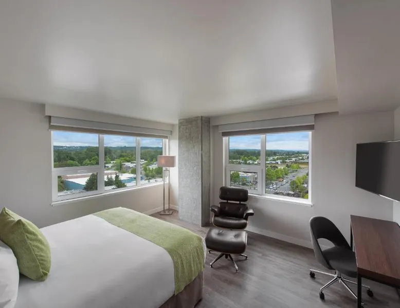 Comfortable Accommodations: Hotel Interurban Seattle Airport SeaTac in Tukwila offers 4-star comfort with air-conditioned rooms featuring private bathrooms, city views, and modern amenities. Each room includes a work desk, free WiFi, and a flat-screen TV. Exceptional Facilities: Guests can enjoy an indoor swimming pool, fitness center, terrace, restaurant, and bar. Additional facilities include a fitness room, 24-hour front desk, concierge service, and electric vehicle charging station. Dining Experience: The modern, family-friendly restaurant serves American and local cuisines with vegetarian options. Breakfast is available as a buffet, while brunch, lunch, dinner, and cocktails are served in a welcoming ambiance. Prime Location: Located 3.1 mi from Seattle–Tacoma International Airport, the hotel is near attractions such as Lumen Field (12 mi) and the Space Needle (13 mi). Guests appreciate the convenient location, room cleanliness, and connectivity to the airport. Offering bathrobes, this double room includes a private bathroom with a hairdryer. The spacious air-conditioned double room offers a flat-screen TV with cable channels, a tea and coffee maker, a wardrobe, a safe deposit box as well as city views. The unit has 1 bed.
