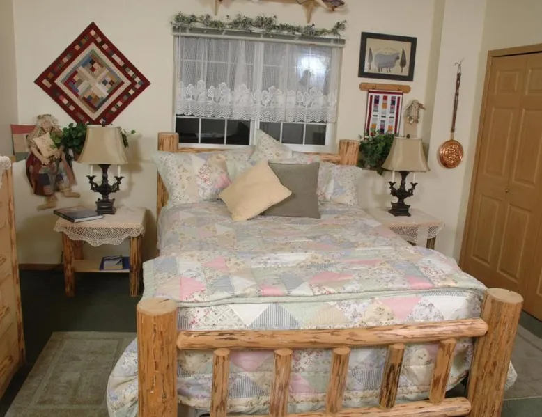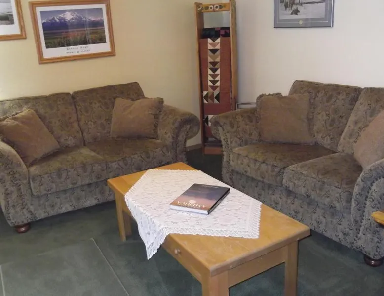 Elegant Accommodations: Alaska's Lake Lucille Bed & Breakfast in Wasilla offers five-star comfort with private check-in and check-out, a lounge, and a sun terrace. Guests enjoy free WiFi, a garden, and an outdoor fireplace. Comfortable Amenities: The property features a shared kitchen, indoor play area, and family rooms. Additional amenities include free on-site parking, a barbecue area, and an ice-skating rink nearby. Delicious Breakfast: A buffet breakfast is served daily, offering warm dishes, fresh pastries, cheese, and juice. Guests appreciate the variety and quality of the breakfast. Local Attractions: Located 48 mi from Ted Stevens Anchorage International Airport, the bed and breakfast is near Hatcher Pass (23 mi) and St Nicholas Russian Orthodox Church (30 mi). An ice-skating rink is also nearby. Boasting rustic country decor and a private bathroom, this suite featuring a sitting area complete with a sofa, TV and VCR/DVD player. A microwave and fridge are included.