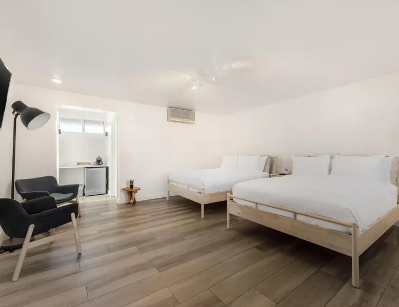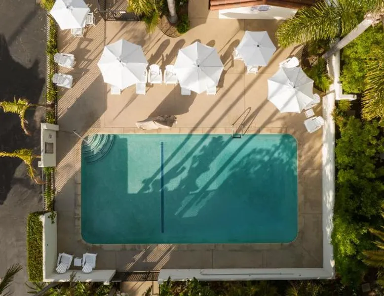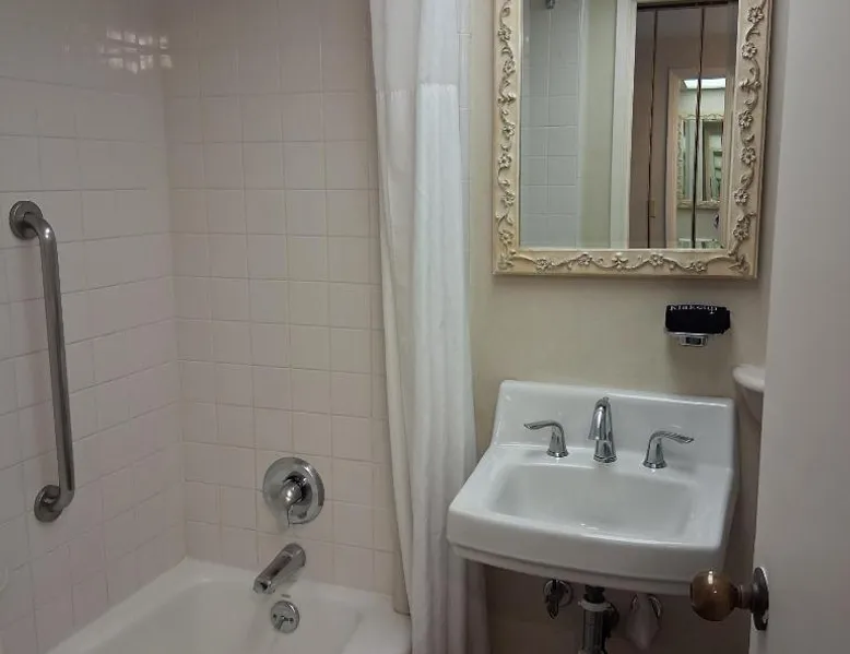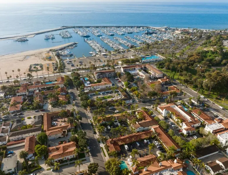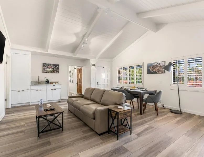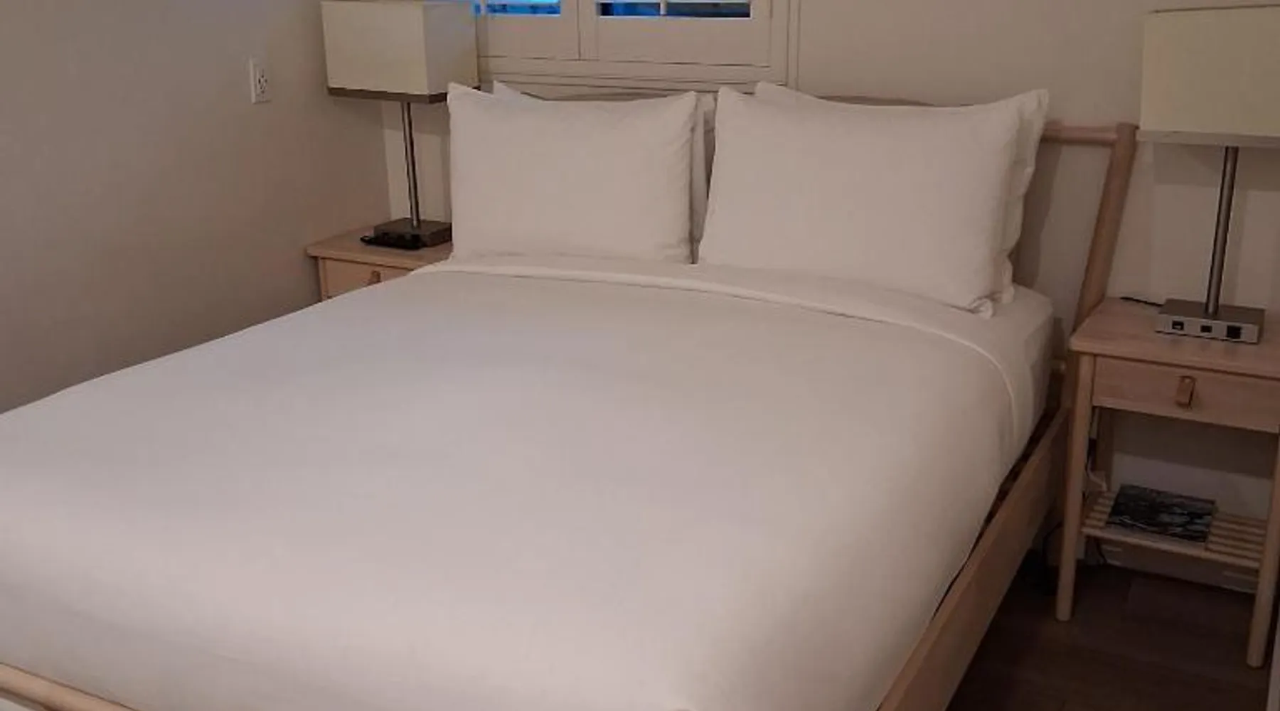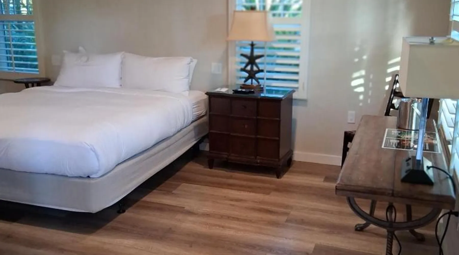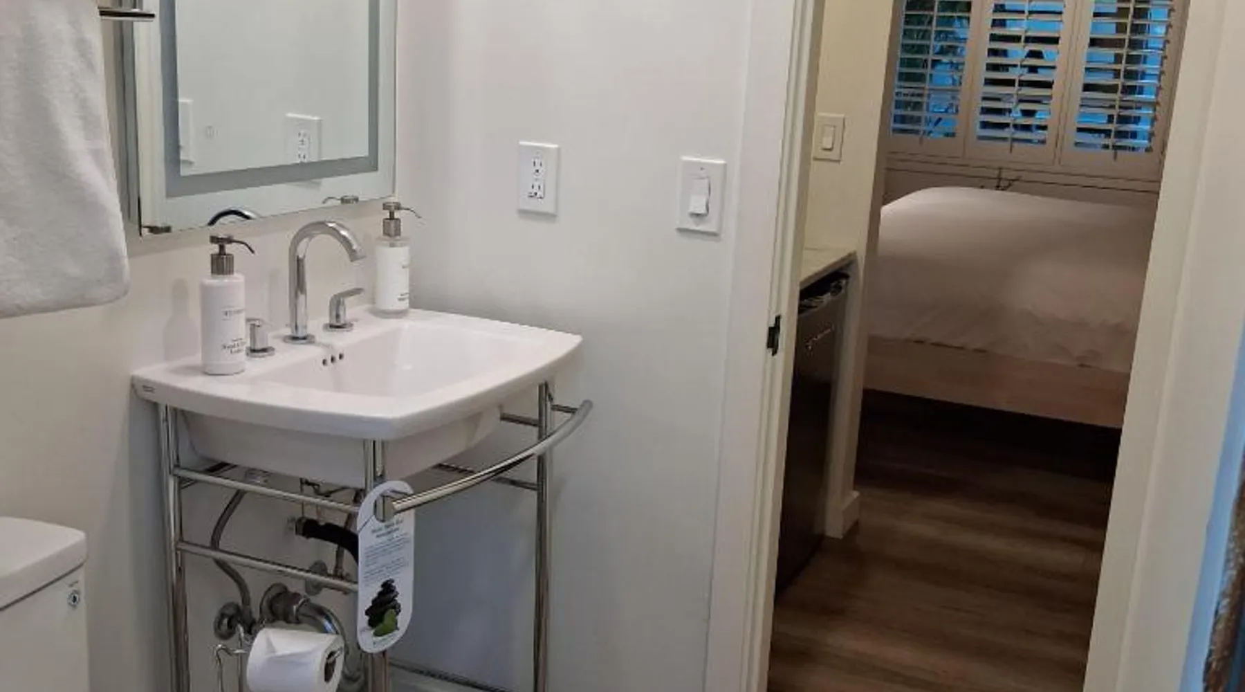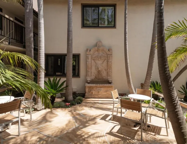 An outdoor pool with a hot tub is featured at Franciscan Inn Santa Barbara. Modern amenities like a flat-screen TV and free WiFi are provided in all rooms. Styled in subtle colored floral or off-white bedding, all rooms feature a contemporary feel and an iPod docking station at Franciscan Inn. Concierge and dry cleaning services are offered. A daily maid service is available to tend to each room daily. University of California, Santa Barbara is 12 minutes’ drive away. Los Angeles International Airport is 1.5 hours’ away Franciscan Inn. The property will be undergoing renovations on select guest rooms beginning November 3, 2022 until January 13, 2023. Located in the Edgewater wing, this popular room offers a 50" LED flat-screen TV. The relaxed yet sophisticated Santa Barbara style is reflected in the décor, which features beach-themed fabrics, serene colors and warm woods. Room includes a table for 2 guests and free WiFi.