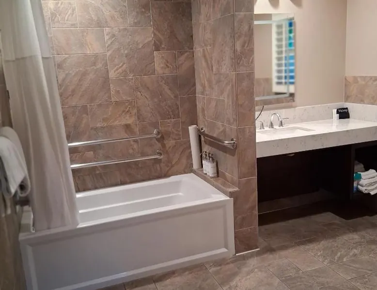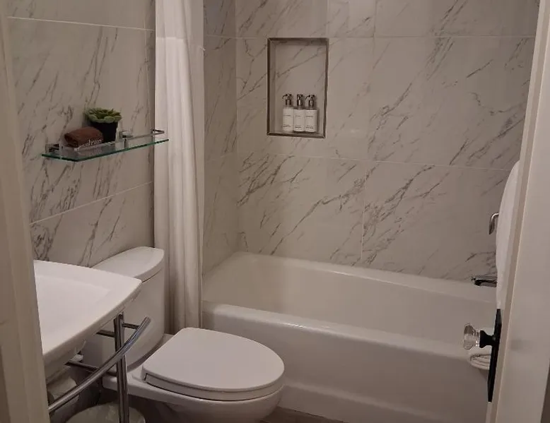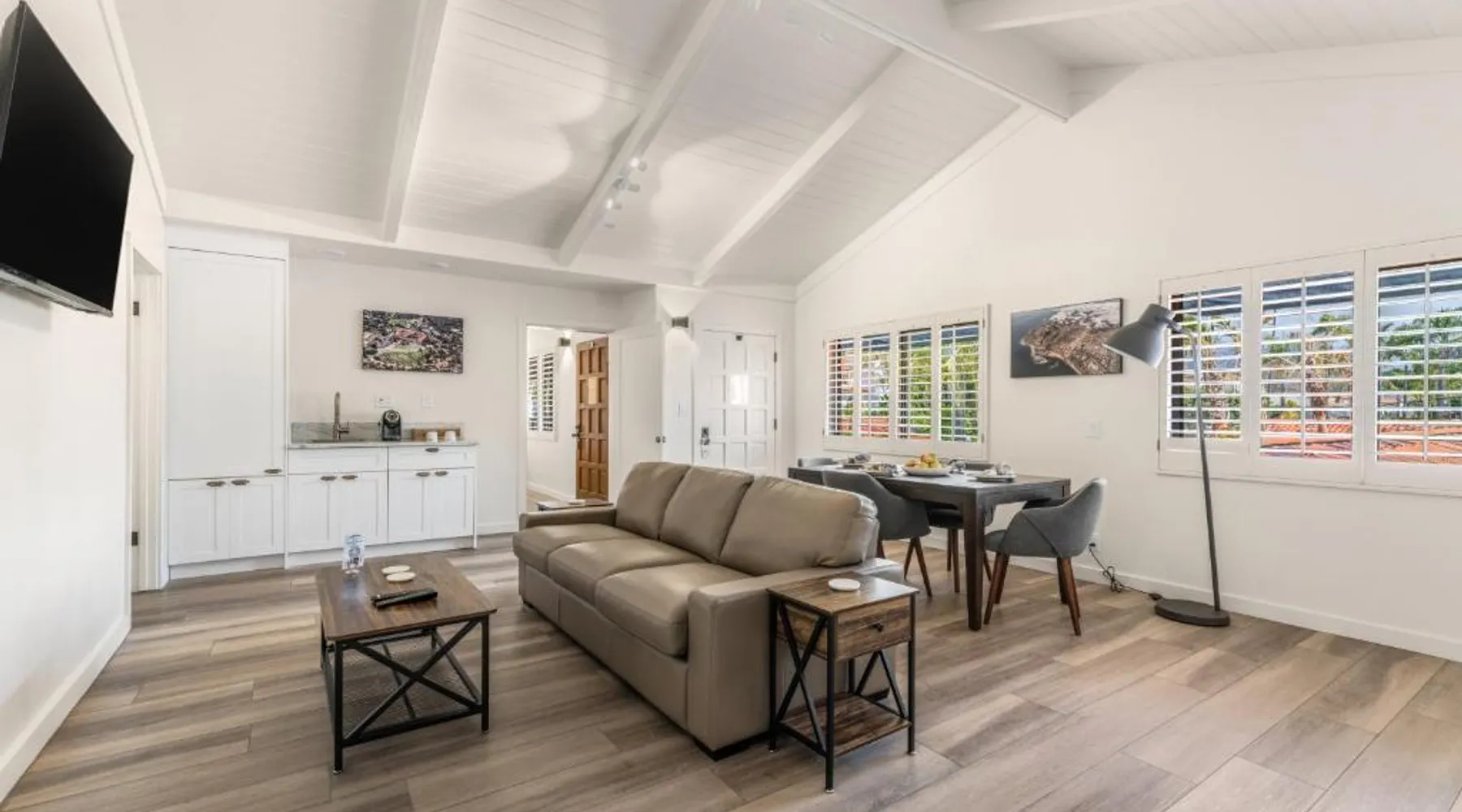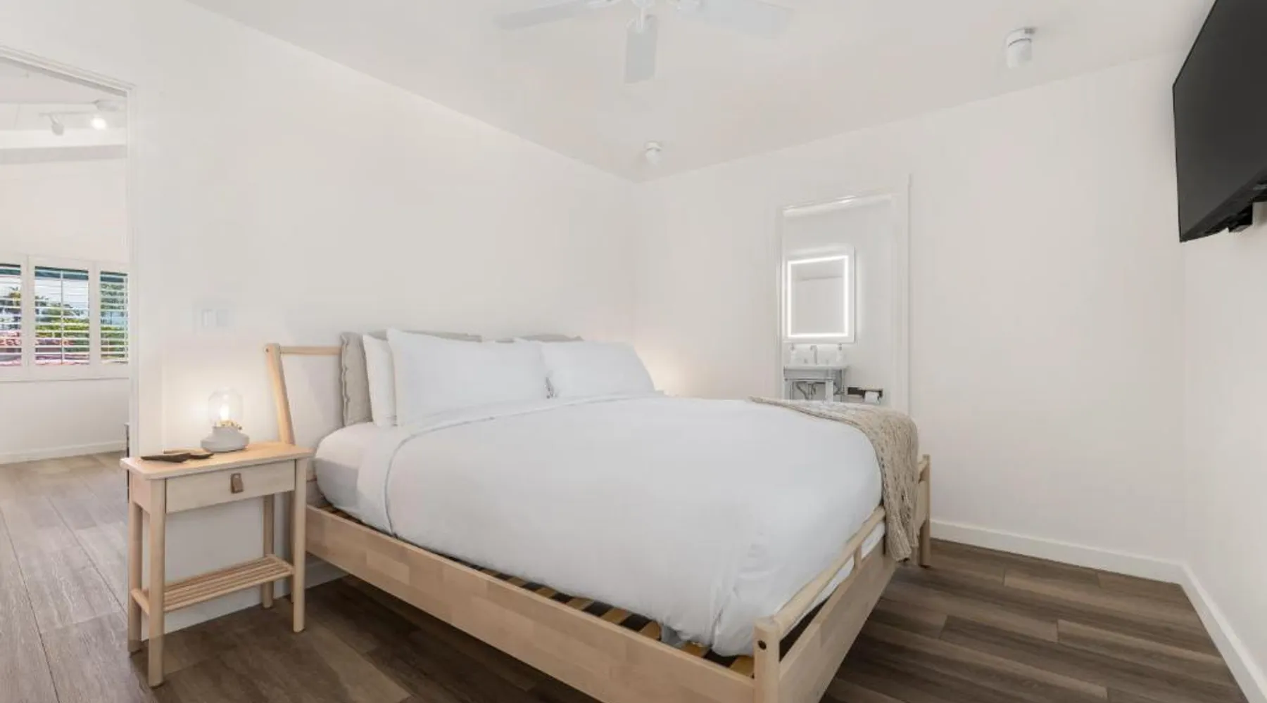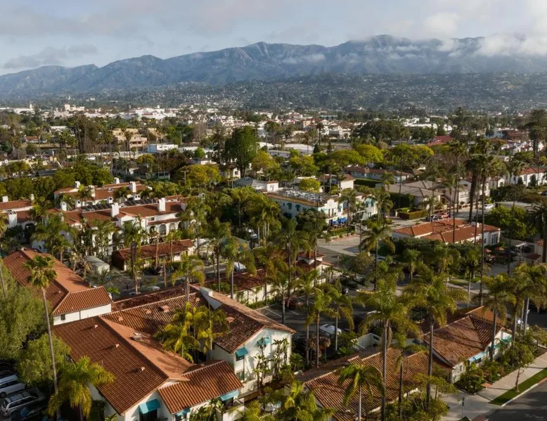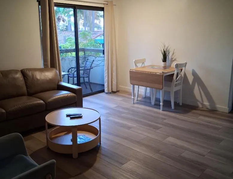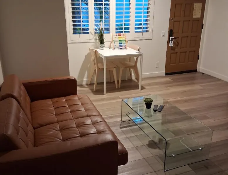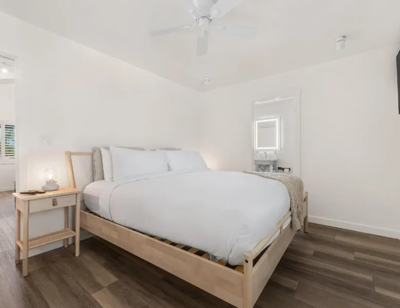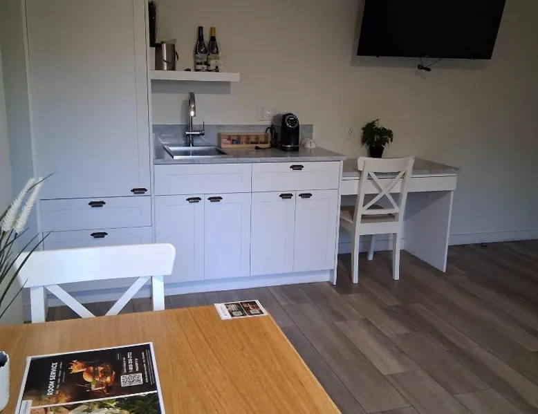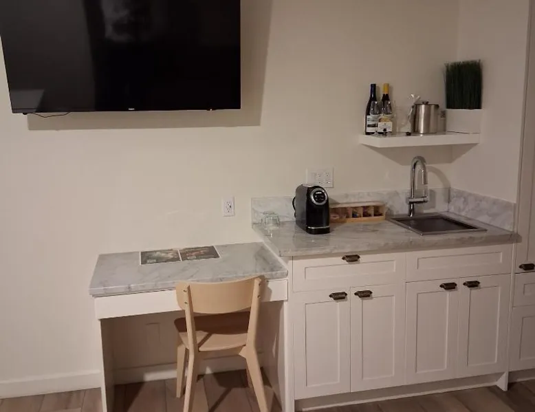 An outdoor pool with a hot tub is featured at Franciscan Inn Santa Barbara. Modern amenities like a flat-screen TV and free WiFi are provided in all rooms. Styled in subtle colored floral or off-white bedding, all rooms feature a contemporary feel and an iPod docking station at Franciscan Inn. Concierge and dry cleaning services are offered. A daily maid service is available to tend to each room daily. University of California, Santa Barbara is 12 minutes’ drive away. Los Angeles International Airport is 1.5 hours’ away Franciscan Inn. The property will be undergoing renovations on select guest rooms beginning November 3, 2022 until January 13, 2023. Located in the Edgewater wing, this popular room offers a 50" LED flat-screen TV. The relaxed yet sophisticated Santa Barbara style is reflected in the décor, which features beach-themed fabrics, serene colors and warm woods. Room includes a table for 2 guests and free WiFi.