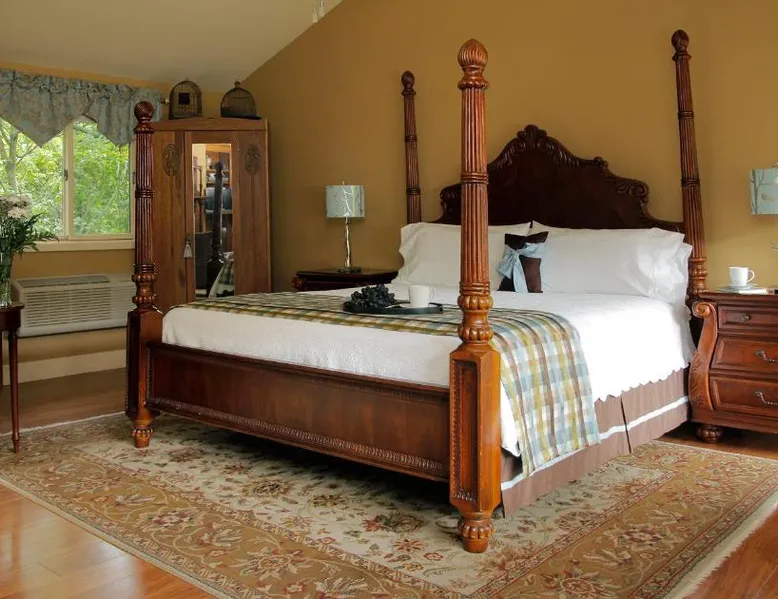 Comfortable Accommodations: Heartstone Inn in Eureka Springs offers adults-only rooms with private bathrooms, air-conditioning, and garden views. Each room includes a tea and coffee maker, hairdryer, and free toiletries. Exceptional Facilities: Guests can relax on the sun terrace or in the garden, enjoy free WiFi, and take advantage of the outdoor seating area. Private check-in and check-out services, a concierge, and free on-site parking enhance the stay. Delicious Breakfast: A hearty American breakfast is served daily, featuring champagne, local specialties, warm dishes, juice, pancakes, and fruits. Prime Location: Located 40 mi from Boone County Airport, the inn is a 13-minute walk from Eureka Springs Historic District. Nearby attractions include The Great Passion Play (3.7 mi) and Onyx Cave Park (7.5 mi). Highly rated by guests. The fireplace is a top feature of this bungalow. Boasting a private entrance, this air-conditioned bungalow comes with a kitchenette, 1 bedroom and 1 bathroom with a walk-in shower and a bath. Guests will find a refrigerator, kitchenware, a microwave and a tea and coffee maker in the fully equipped kitchenette. The bungalow also includes a barbecue. This bungalow has soundproof walls, flat-screen TV with cable channels, garden views, as well as wine/champagne for guests. The unit has 1 bed.